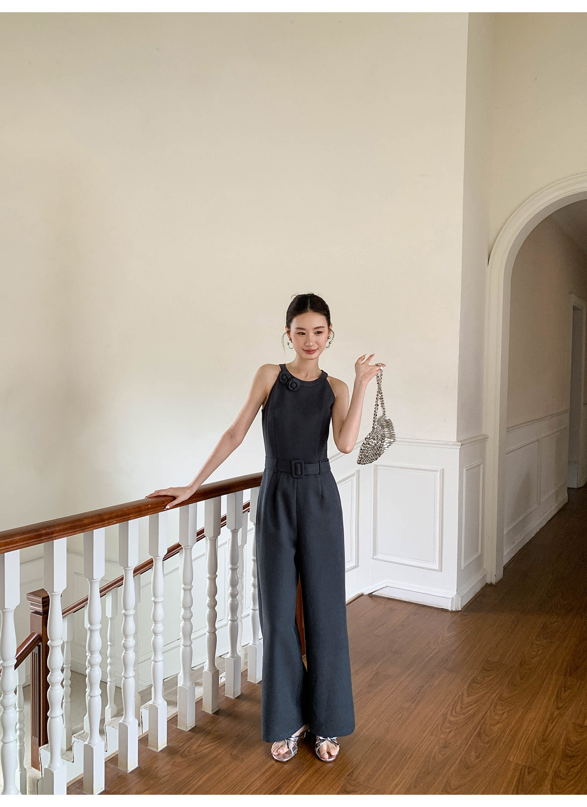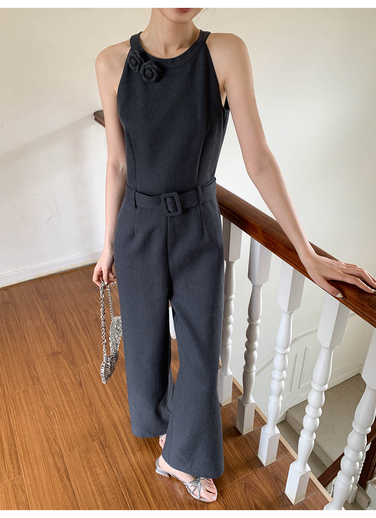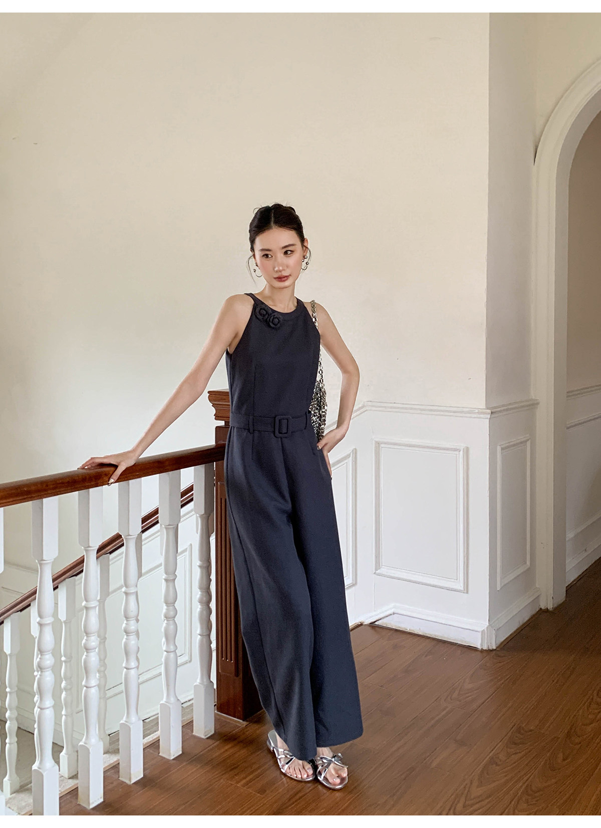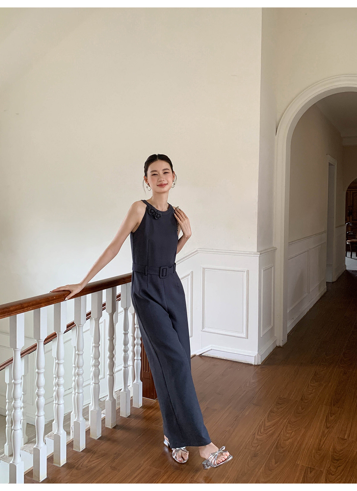 Xxning French-Style Halter Neck Waist-Cinching Jumpsuit for Women, New Autumn Three-Dimensional Cut Wide-Leg Casual Pants