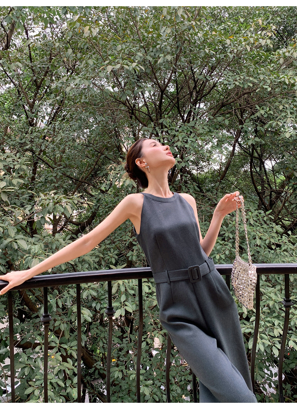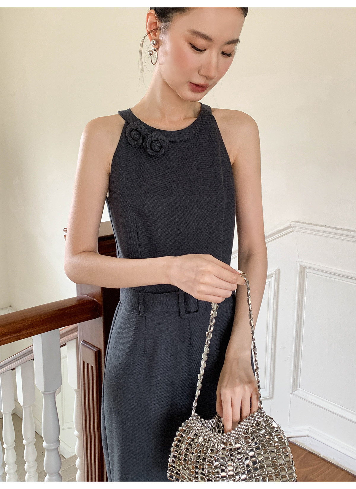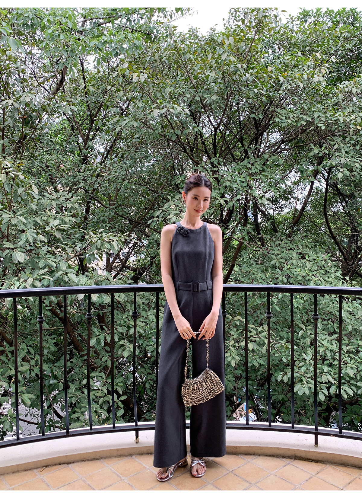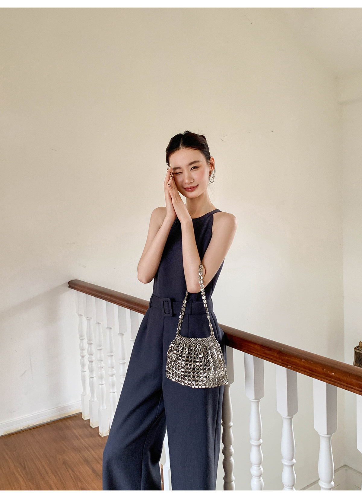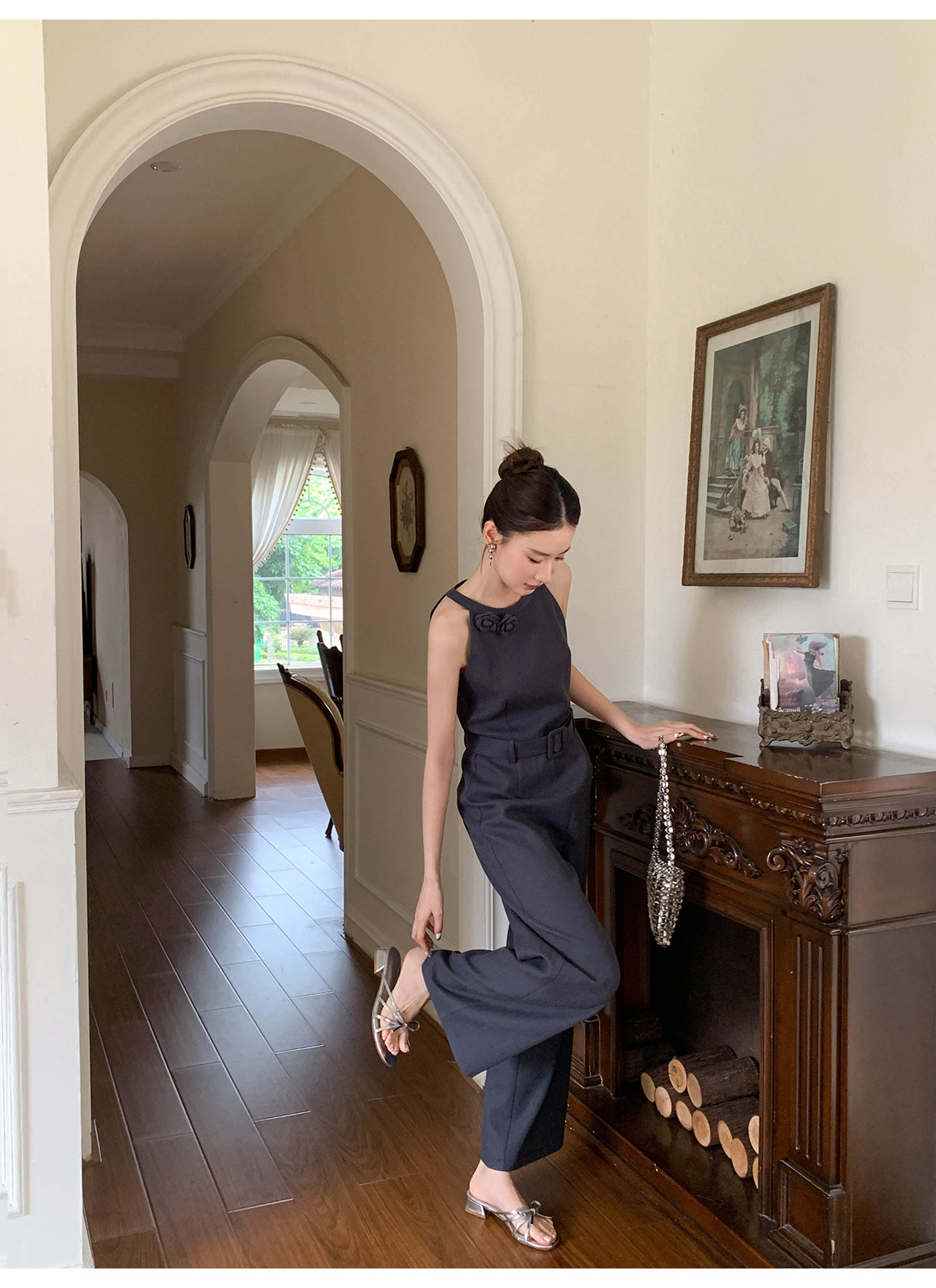 Xxning French-Style Halter Neck Waist-Cinching Jumpsuit for Women, New Autumn Three-Dimensional Cut Wide-Leg Casual Pants