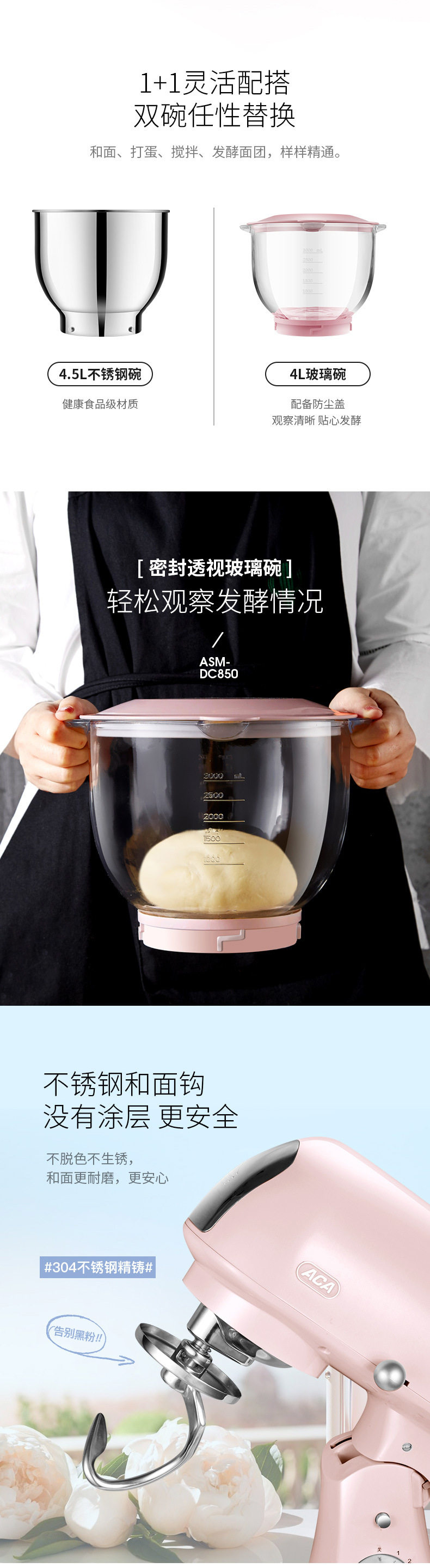 Aca/North American Electric Dough Mixer for Home and Commercial Use, Small Chef Machine, Automatic Kneading and Mixing Machine