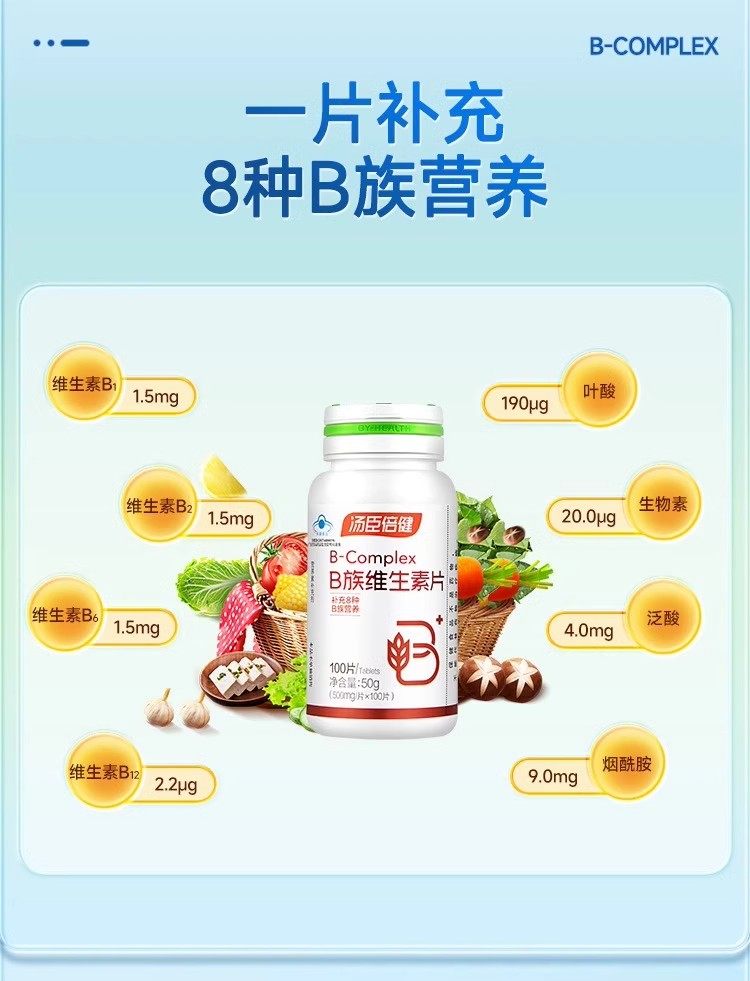 Tomson By-Health Vitamin B Complex Tablets for Adults, Folic Acid, B6, B12, Niacinamide, Official Genuine Product