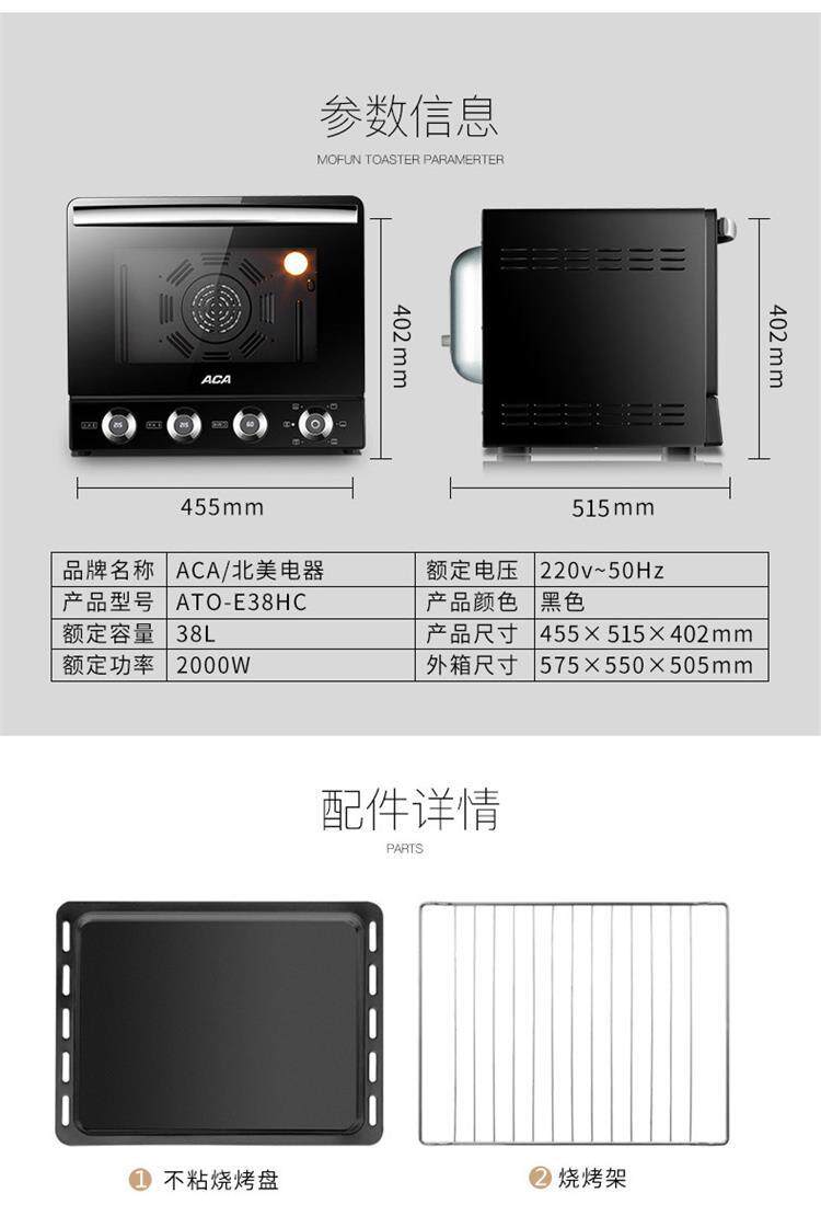 Aca/North American Electrical Appliances Ato-E38Hc Electric Oven Wind Stove Household Small Multi-Function Fully Automatic Large Capacity