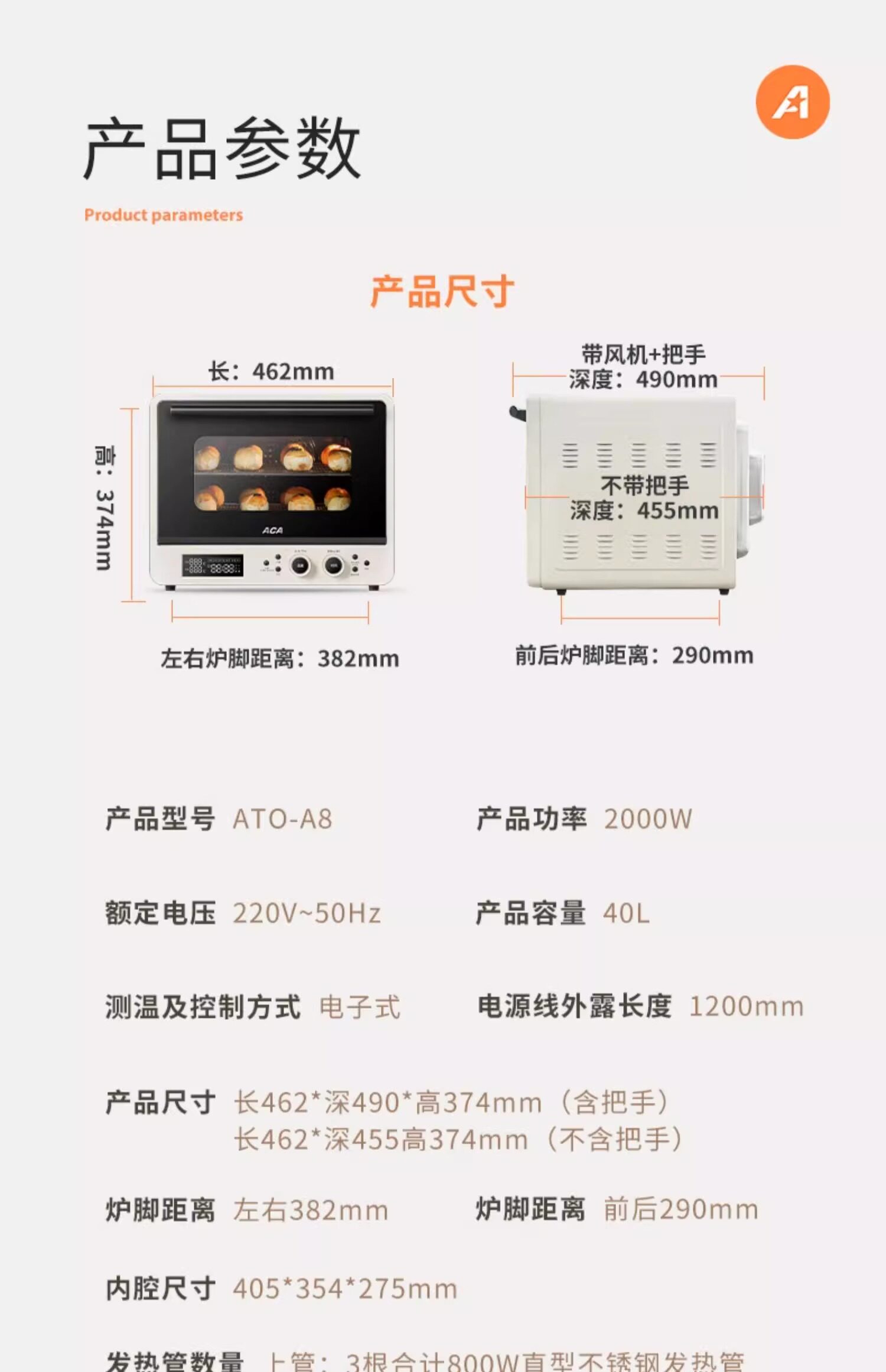 Aca/North American Appliances Ato-A8 Convection Oven for Home Use, Cake and Cookie Baking, Commercial Use, Multifunctional, Large Capacity