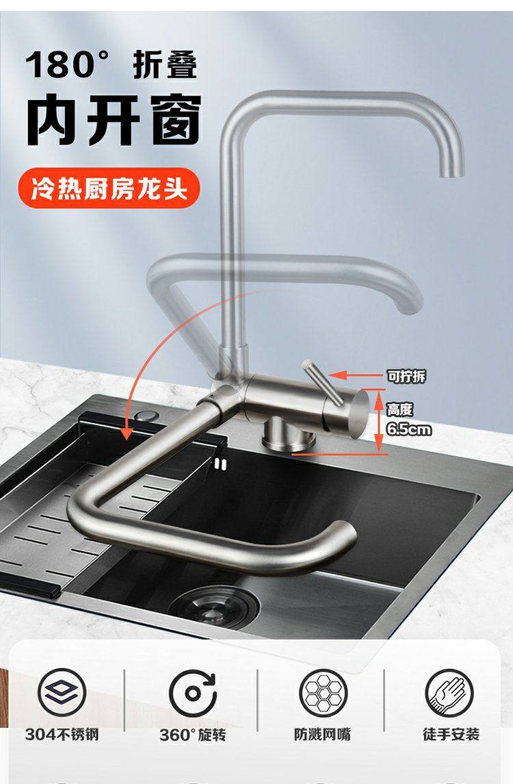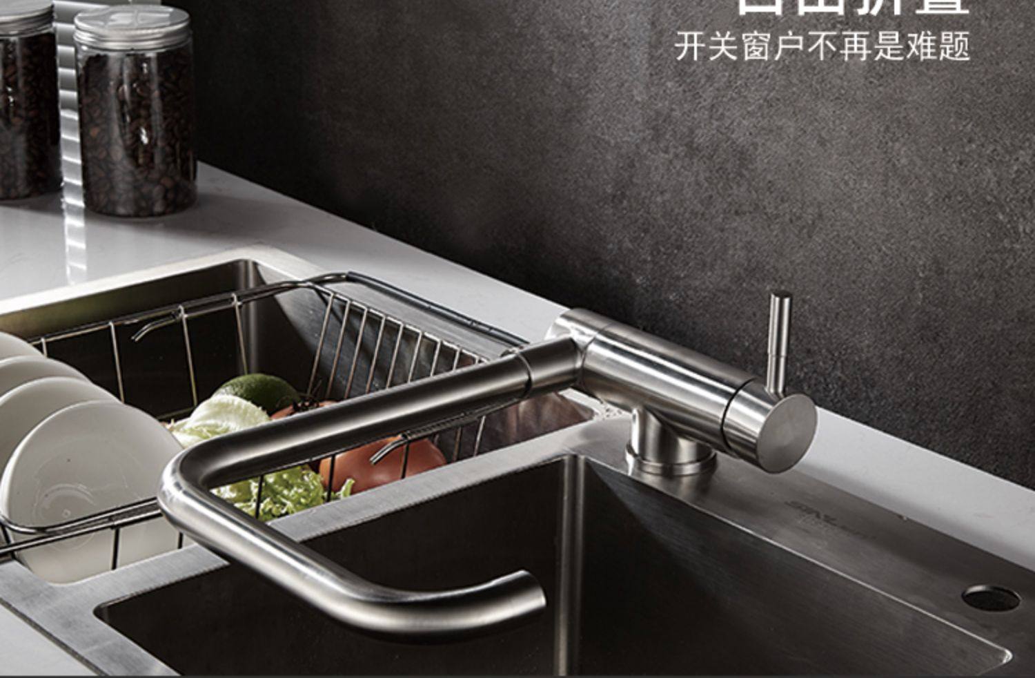 304 Stainless Steel Foldable Hot and Cold Water Faucet Kitchen Extender for Sink, Rotating Household Splash-Proof