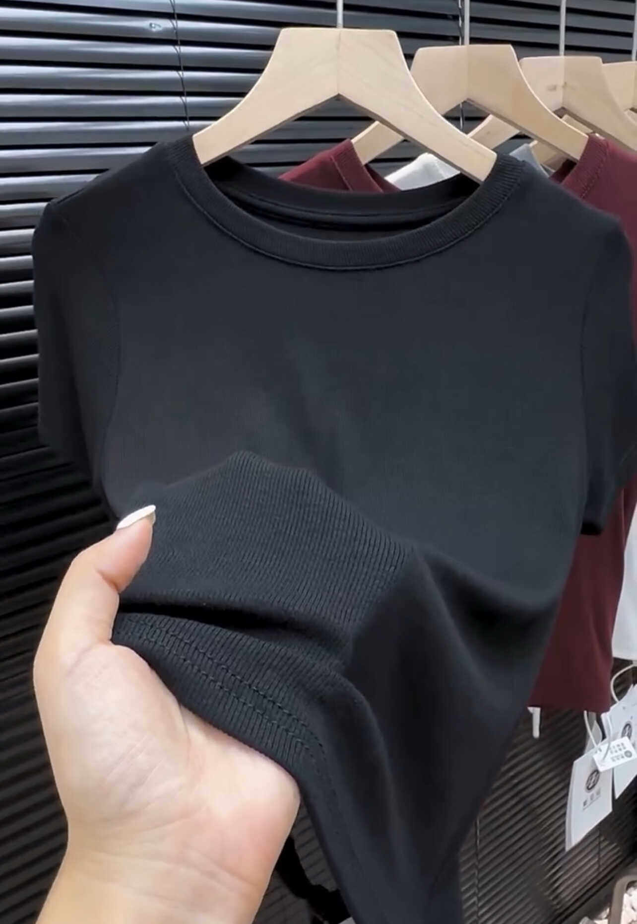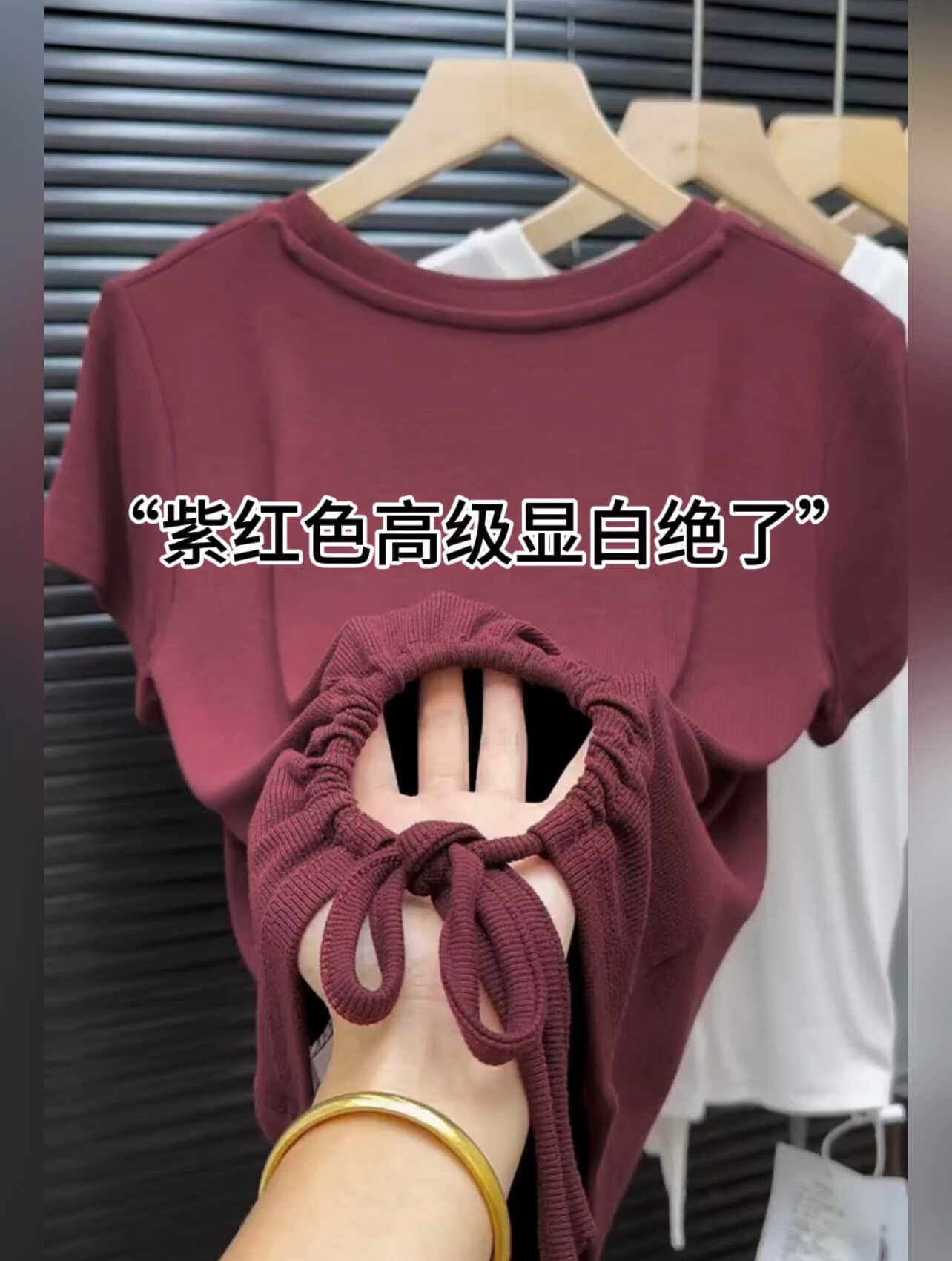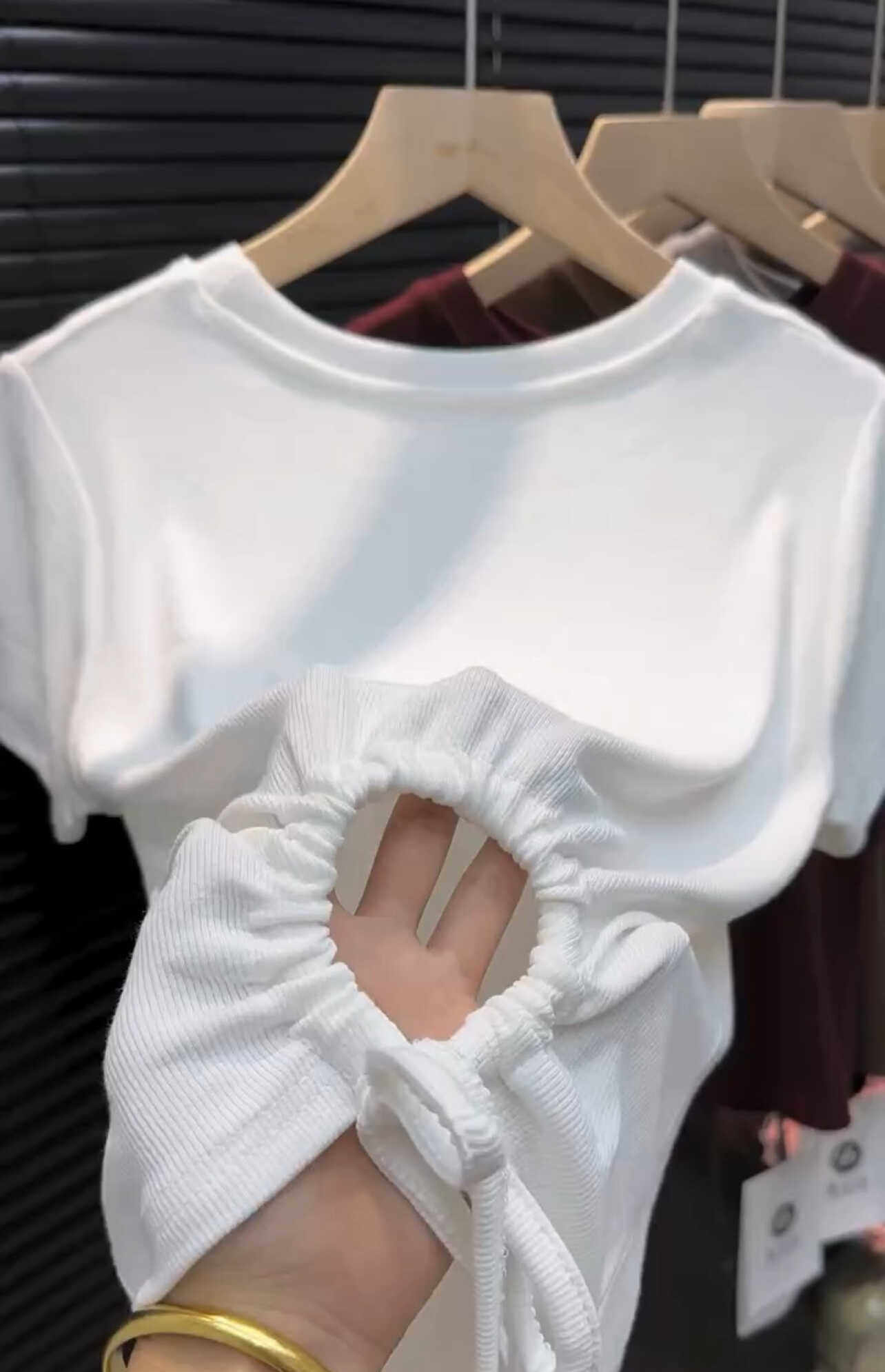 Hollow back waist hot girl style short-sleeved T-shirt for women summer 2025 new fashion temperament slim round neck top