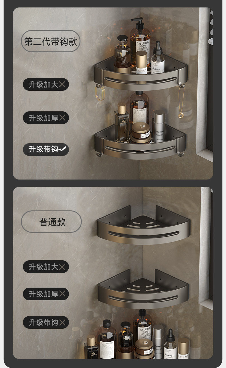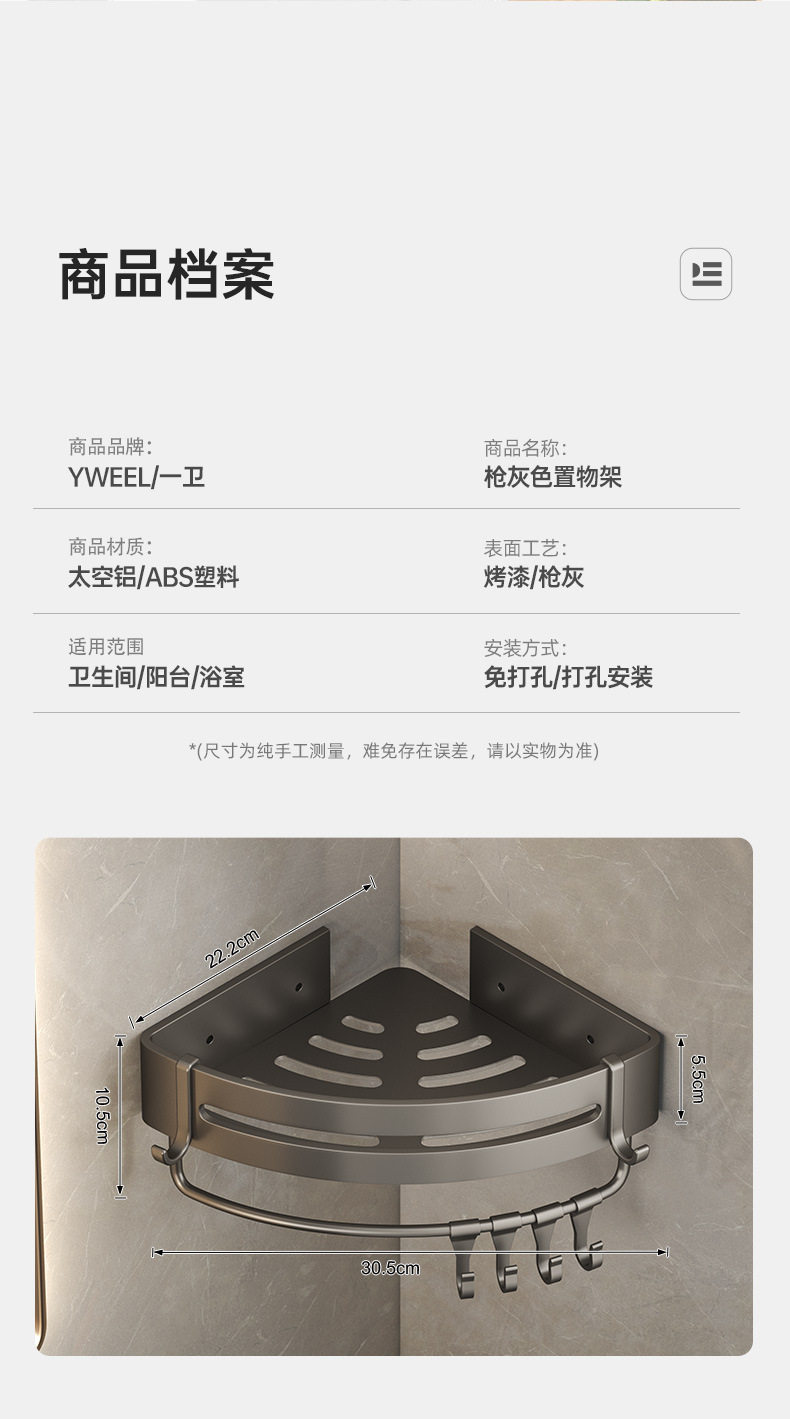 Color Classification Gunmetal Gray, Tall, Single-Tier Corner Shelf (6").8cm,Gunmetal Gray, Tall, Double-Layer Corner Shelf (6").8cm,Gunmetal Gray, Tall, Three-Tier Corner Shelf.8cm,[Increase Height 6.8cm with Pole]Gun Gray Single Layer Corner Basket-997262,[Increase Height 6.8cm with Pole]Gun Gray Double Layer Corner Basket-997261,[Increase Height 6.8cm with Pole]Gun Gray Three-Layer Corner Basket-997260,Black, Tall, Single-Tier Corner Shelf - Style 6.8cm,Black, Tall, Double-Layer Corner Shelf with 6 Compartments.8cm,Black, Tall, Three-Tier Corner Shelf.8cm,[Increase Height 6.8cm with Pole]Yahei Single Layer Corner Basket-997270,[Increase Height 6.8cm with Pole]Yahei Double Layer Corner Basket-997269,[Increase Height 6.8cm with Pole]Yahei Three-Layer Corner Basket-997268