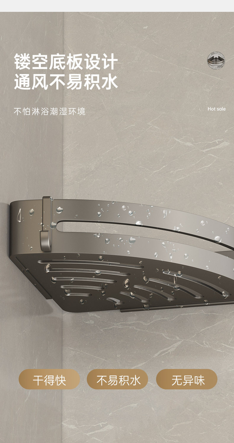 German Precision Bathroom Triangular Shelf, No-Drill Space Aluminum Shower Room Wall-Mounted Corner Shelf Storage Rack