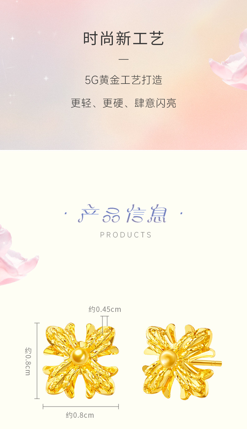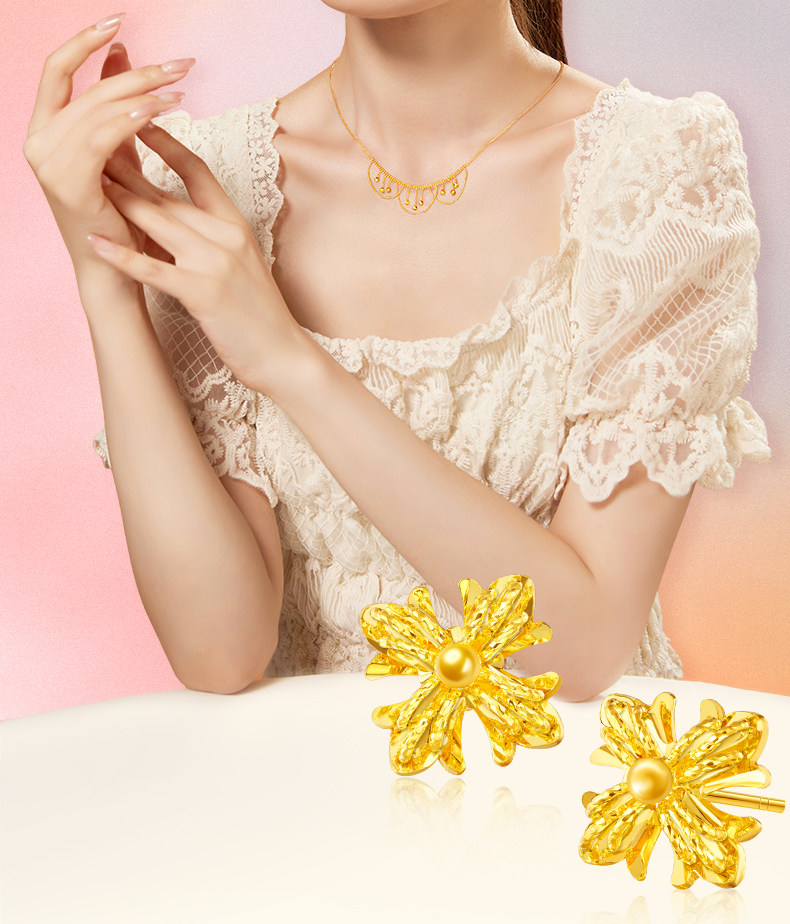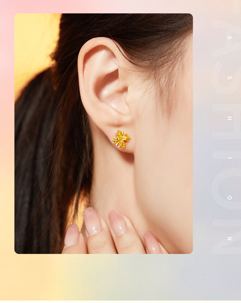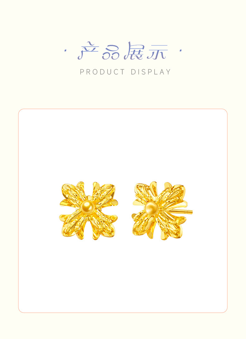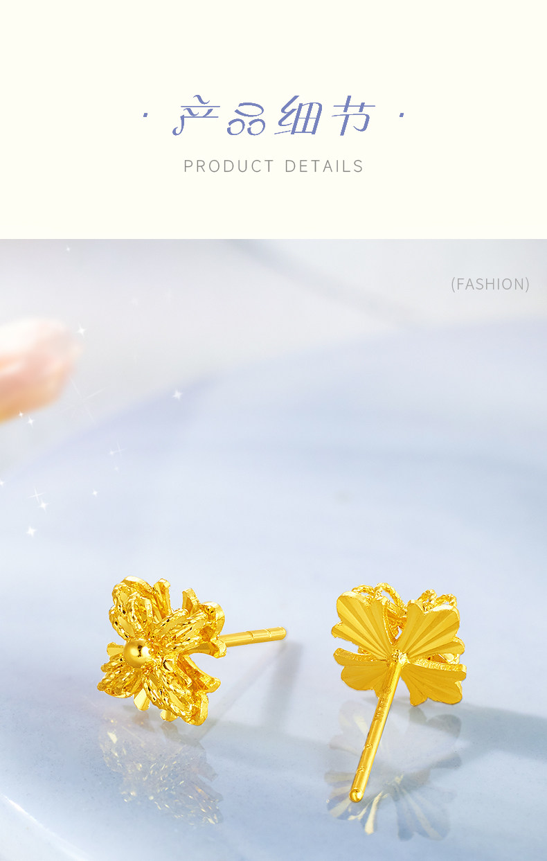 Cai Bai Jewelry Pure Gold Earrings Gold Filigree Wrapped Personalized Cross Stud Earrings for Women Gift