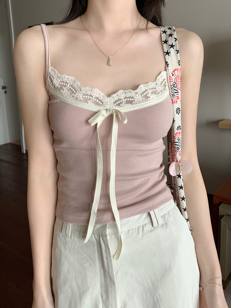 Sweet and Spicy Lace-Trimmed Camisole for Women, Summer 2026 New Korean Style Slim-Fit Backless Sleeveless Top