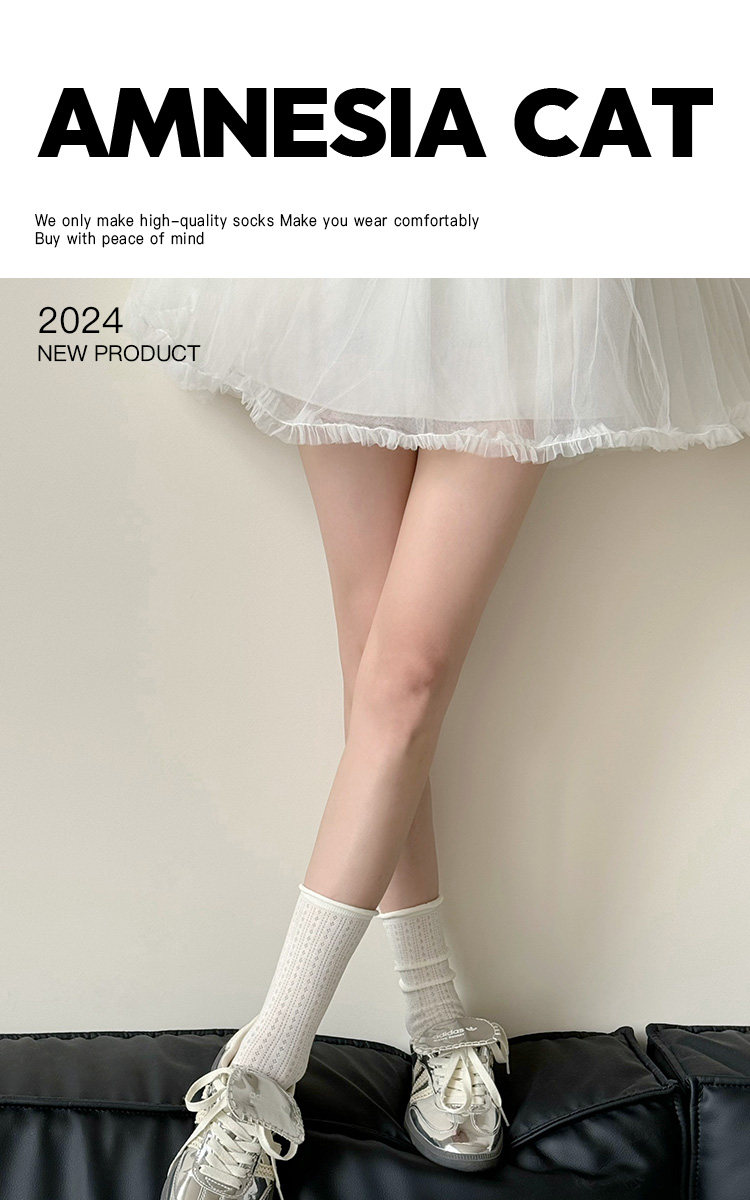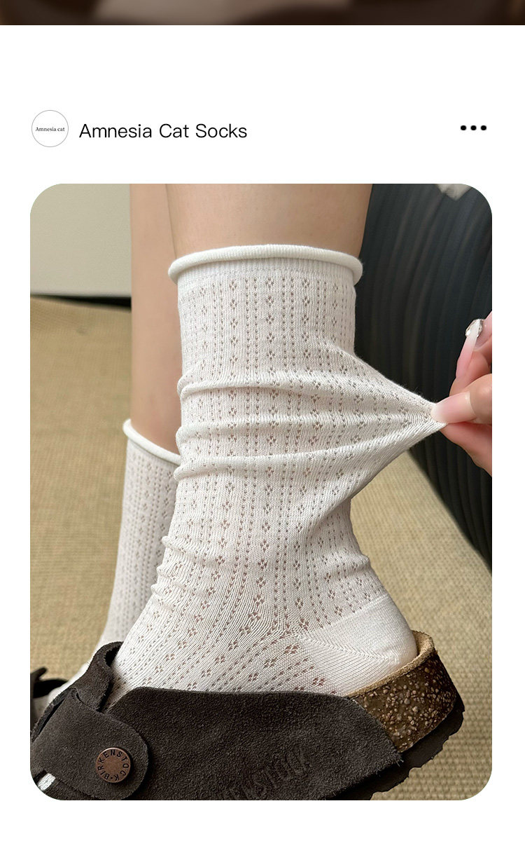 Miu Ballet-Style Cool Mesh Slouch Socks for Women, Pure Cotton Mid-Calf Socks, Thin Spring/Summer Socks ins Long Socks