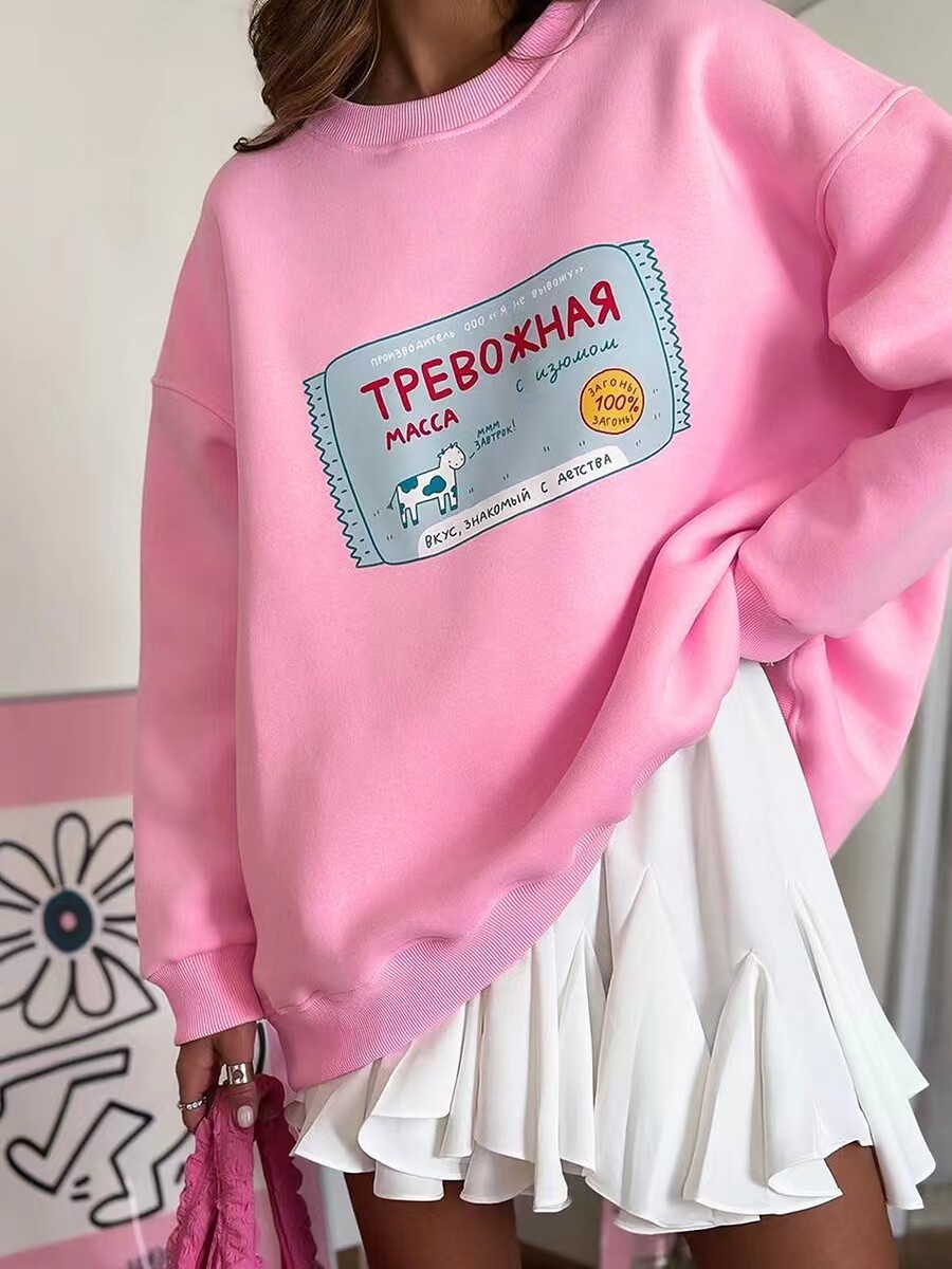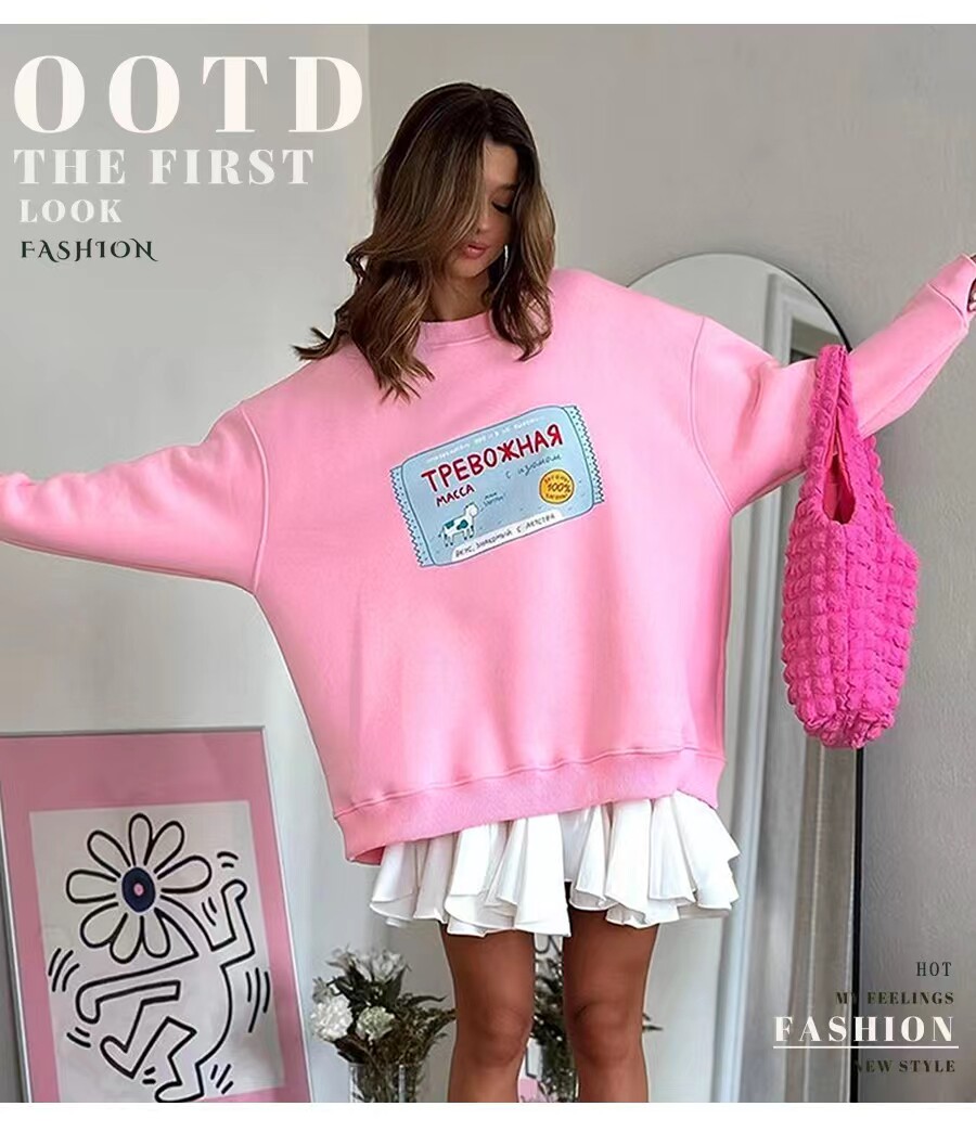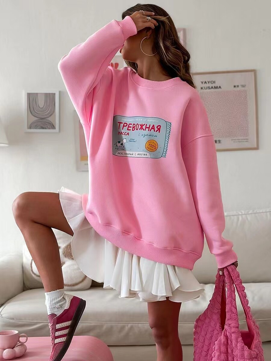 European and American New Style Letter Print Versatile Round Neck Loose Sweatshirt