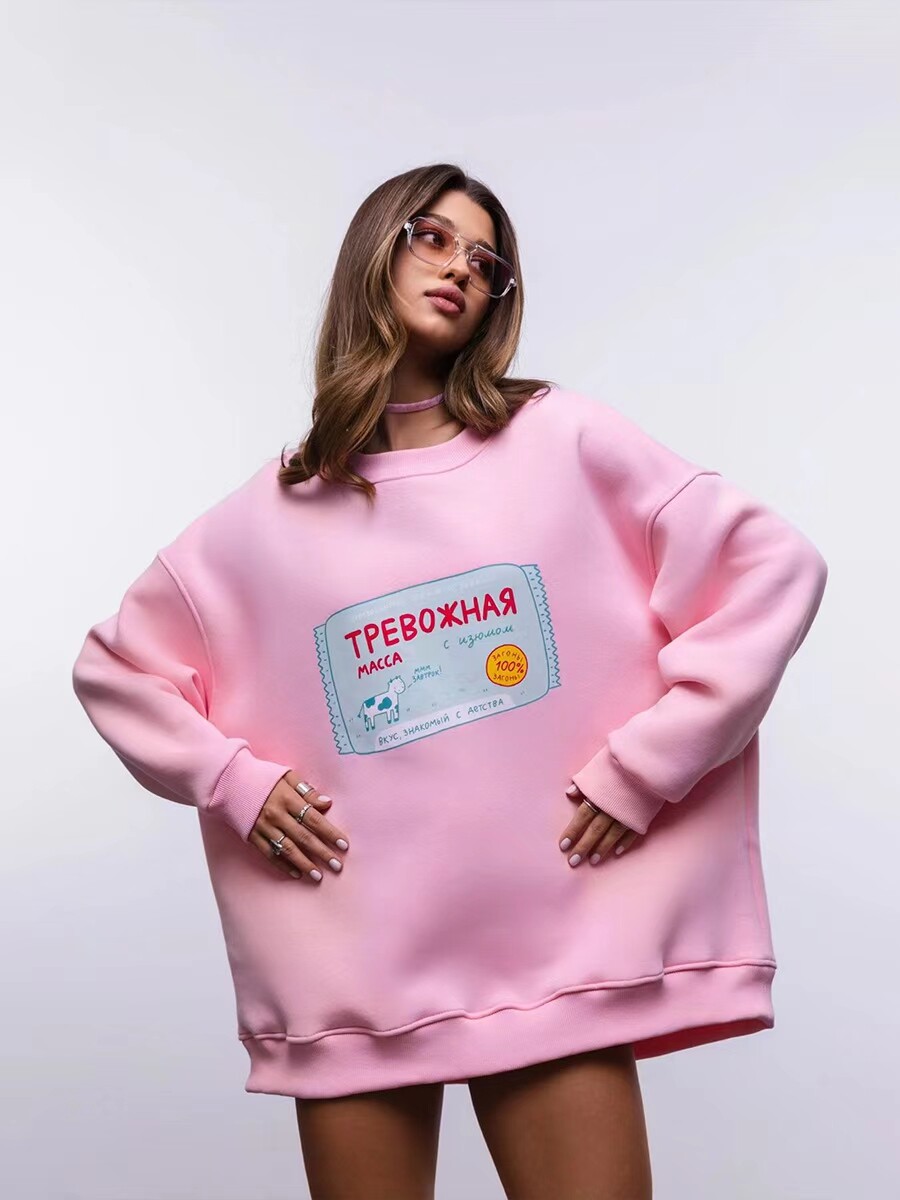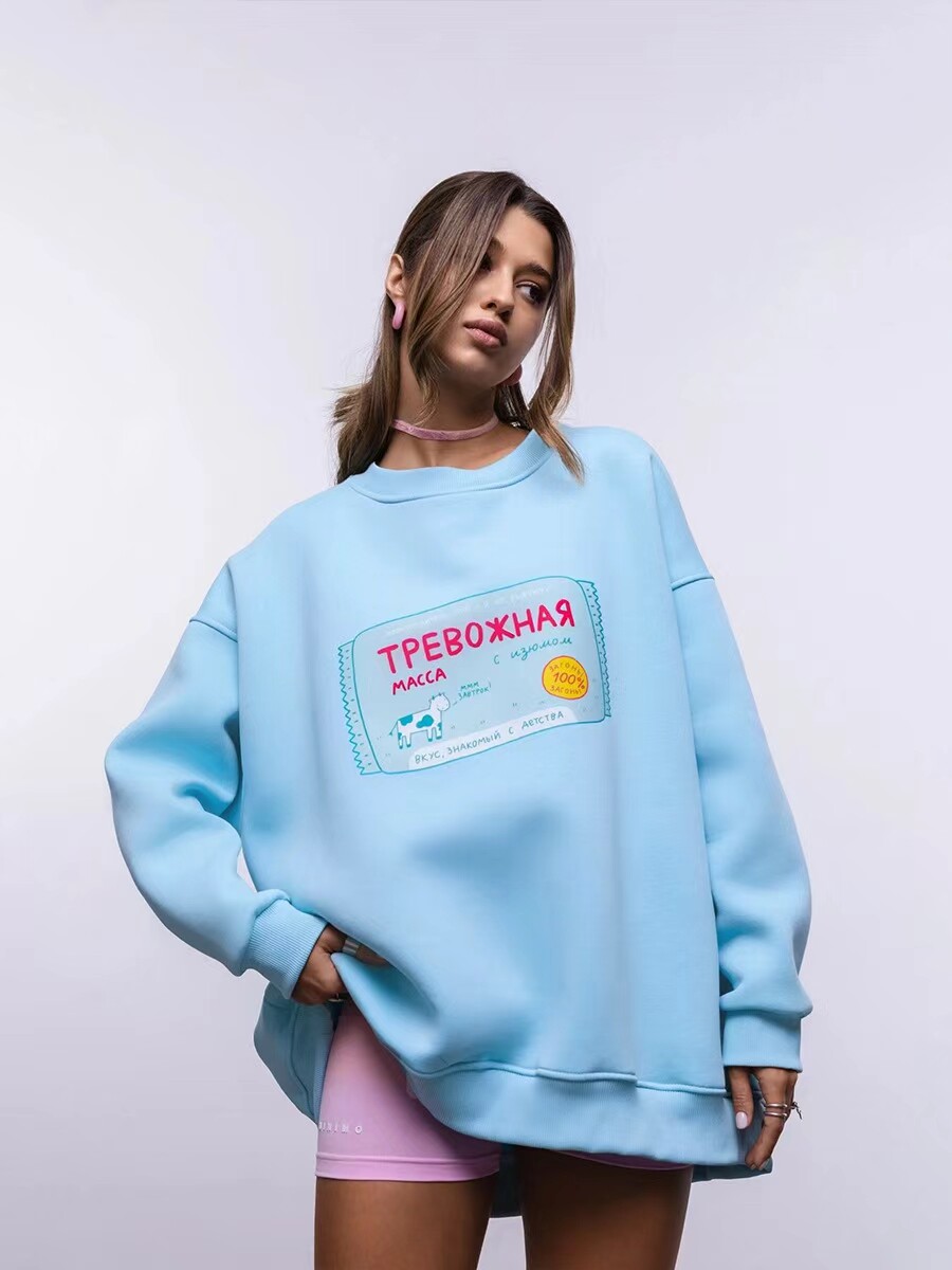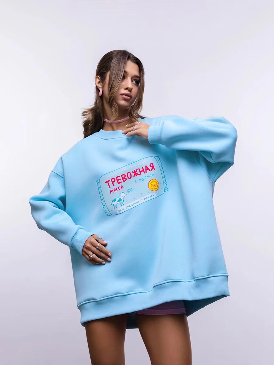 European and American New Style Letter Print Versatile Round Neck Loose Sweatshirt