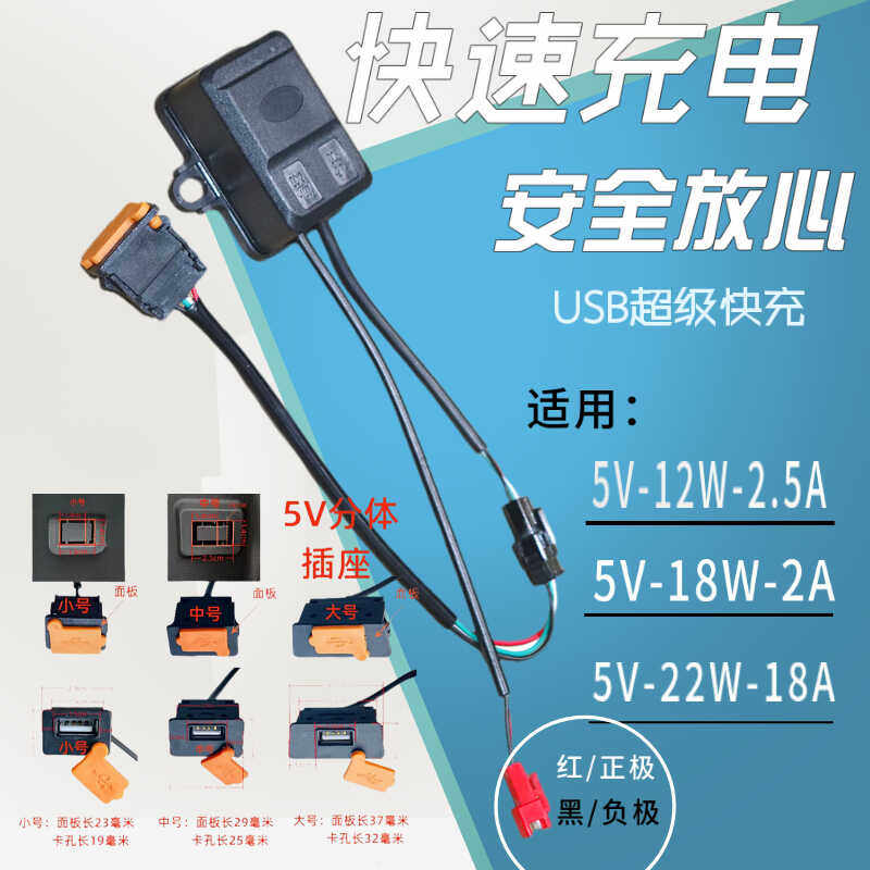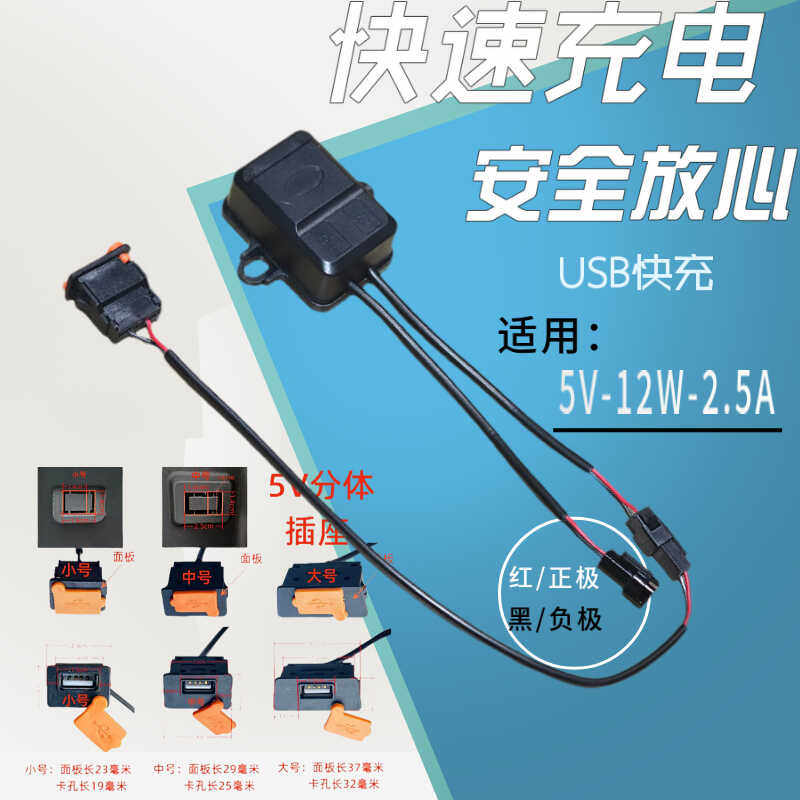 Electric Vehicle USB Fast Charging Adapter for Mobile Phones, Modified Two-Wheel Vehicle USB Fast Charger