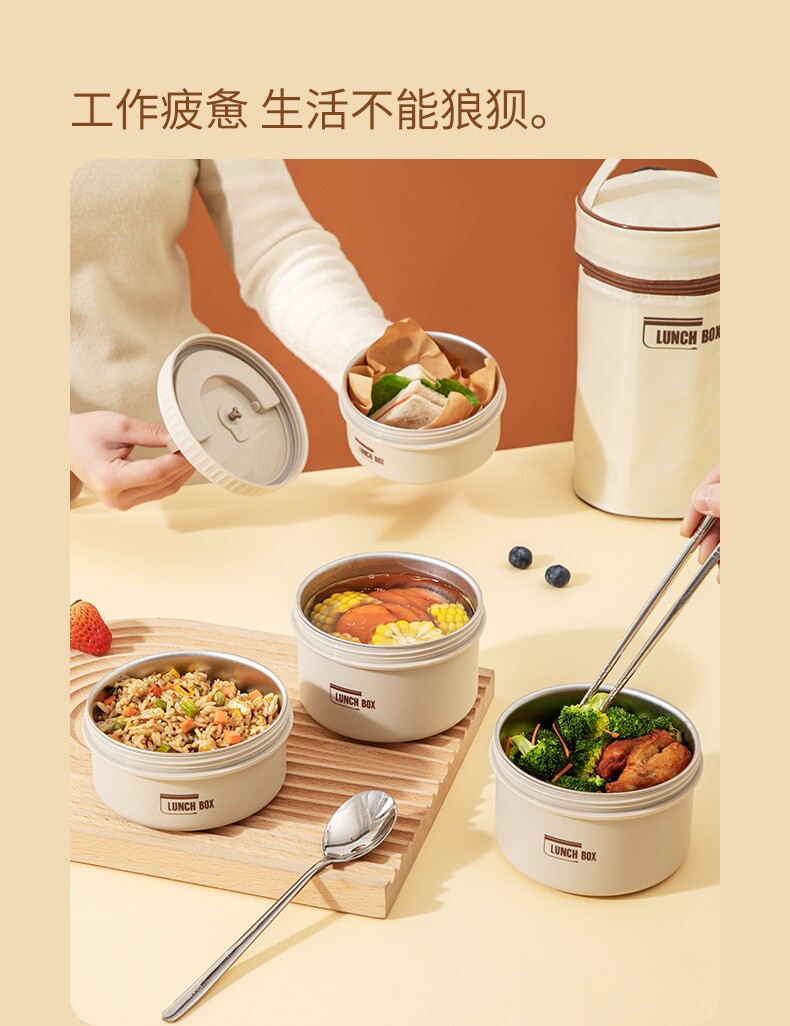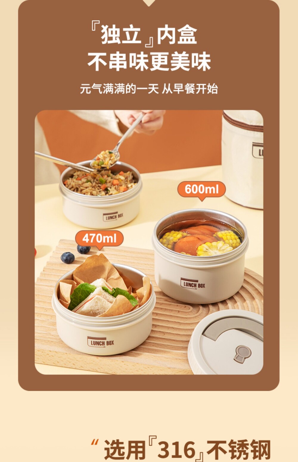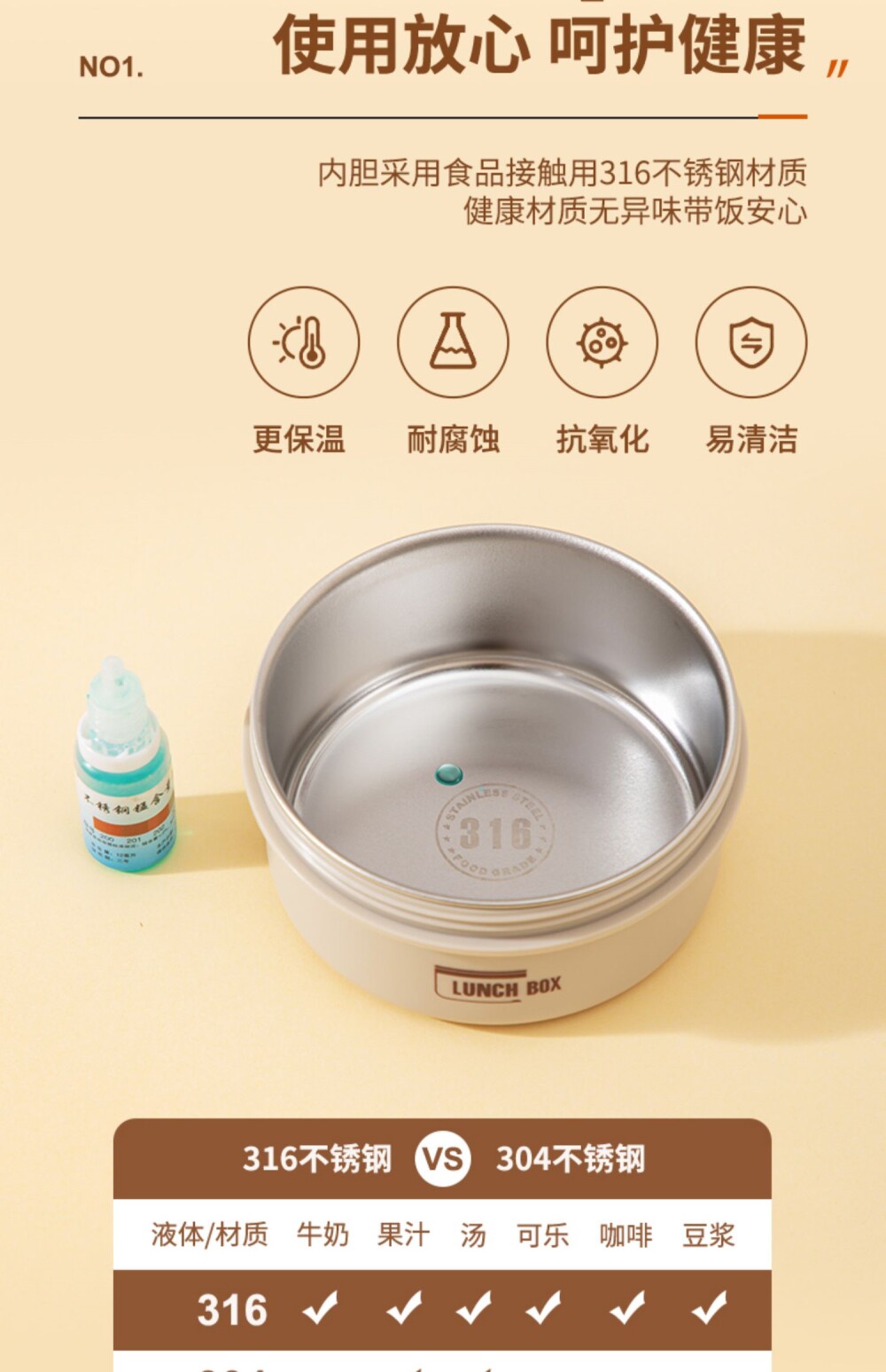 German Imported 316L Insulated Lunch Box for Office Workers, Portable Breakfast Bowl with Lid, Mini Meal Artifact, Microwaveable