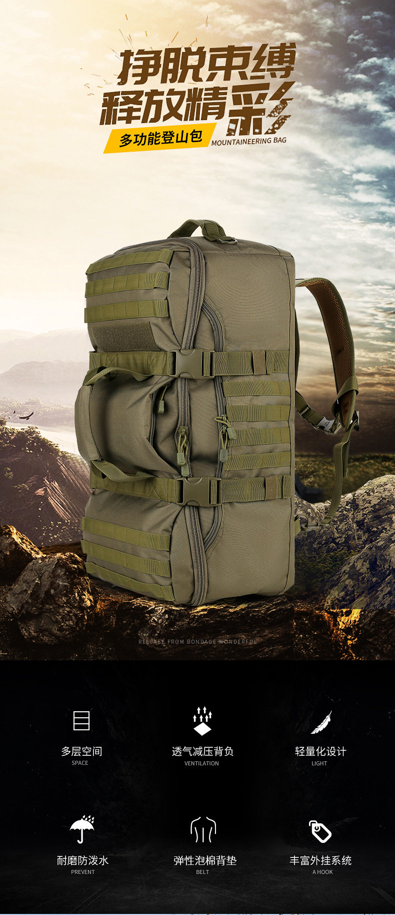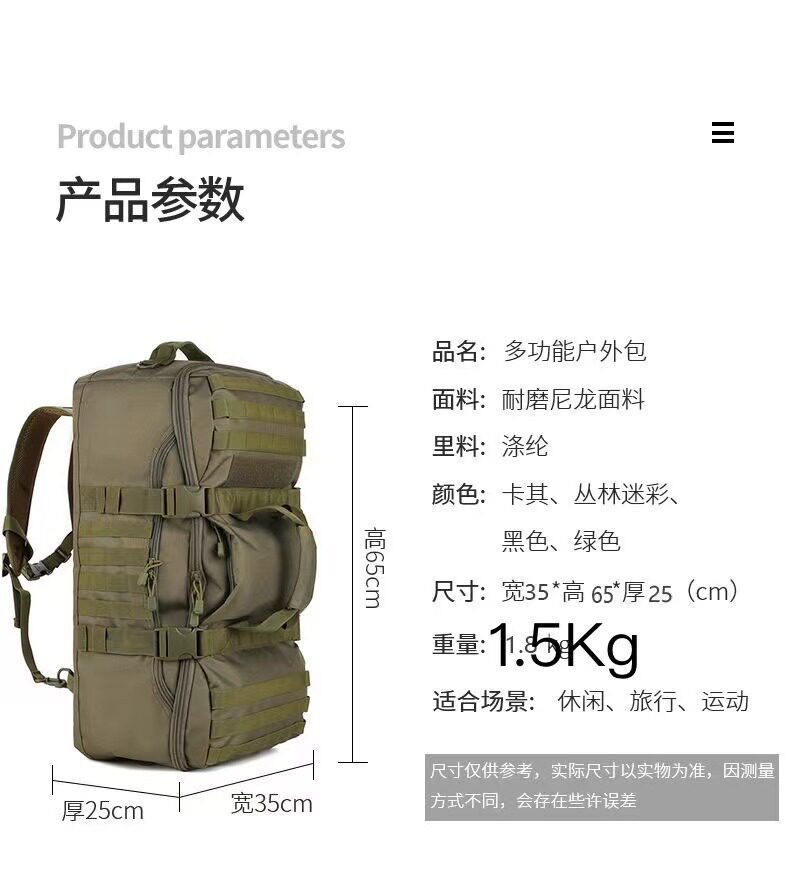 Mountaineering Bag, Large-Capacity Portable Luggage Bag, Multi-Purpose Backpack, Tactical Backpack, Portable Travel Bag, Dual-Purpose Luggage Bag