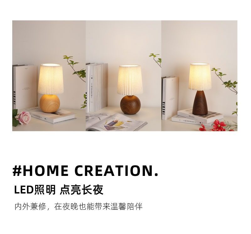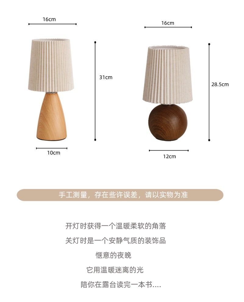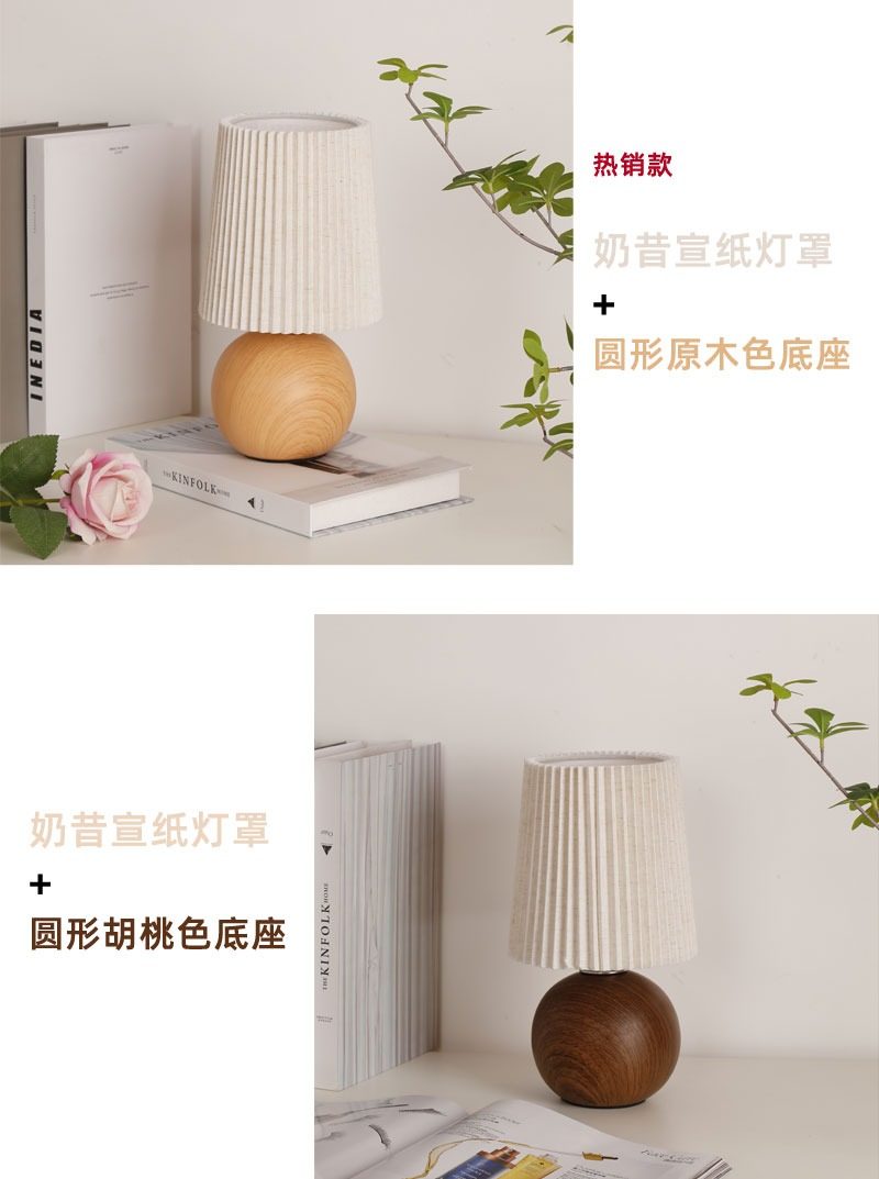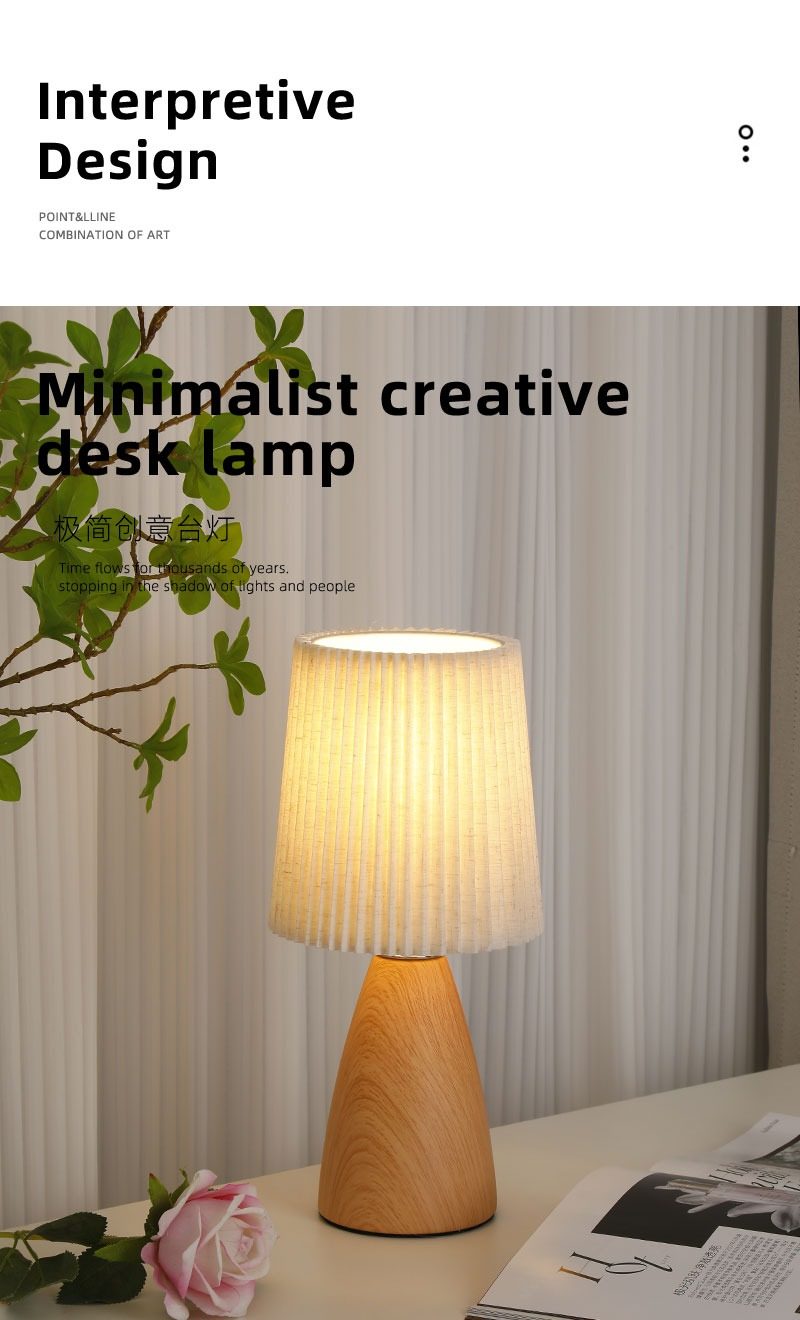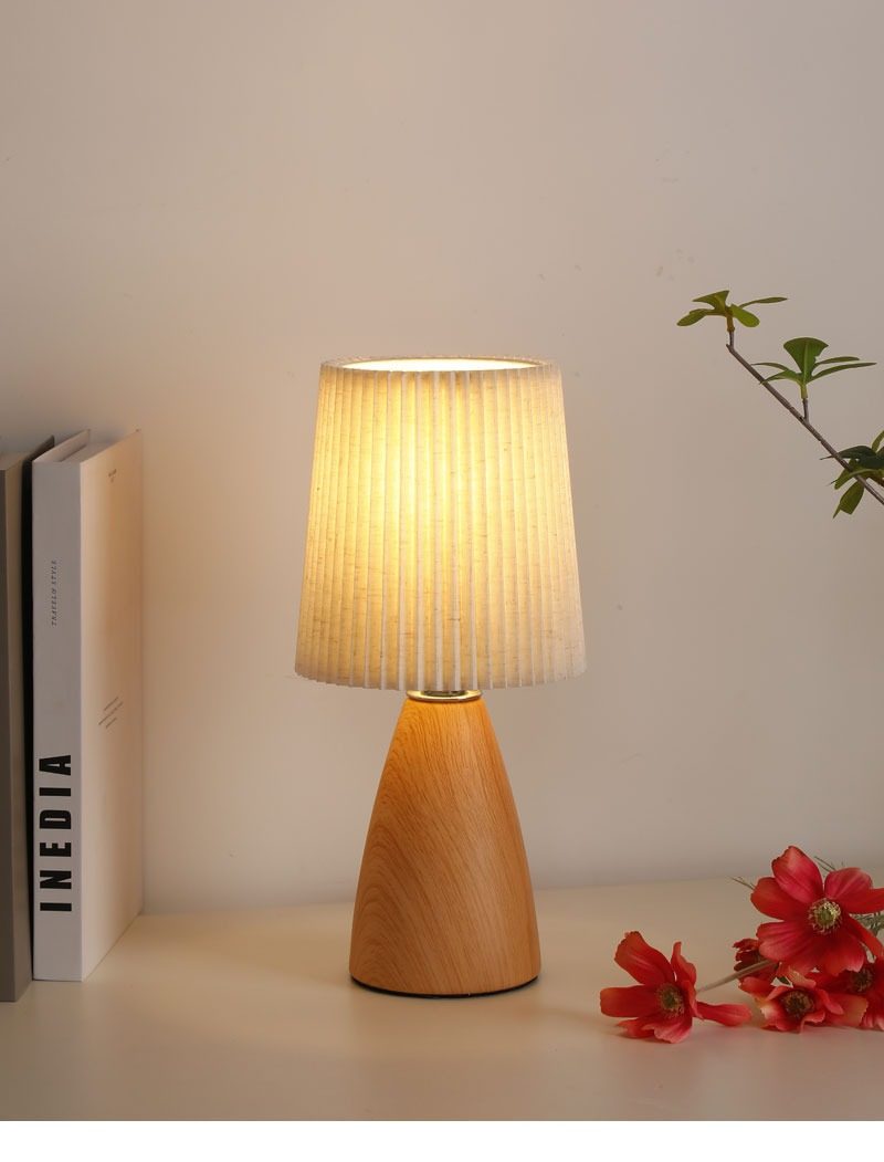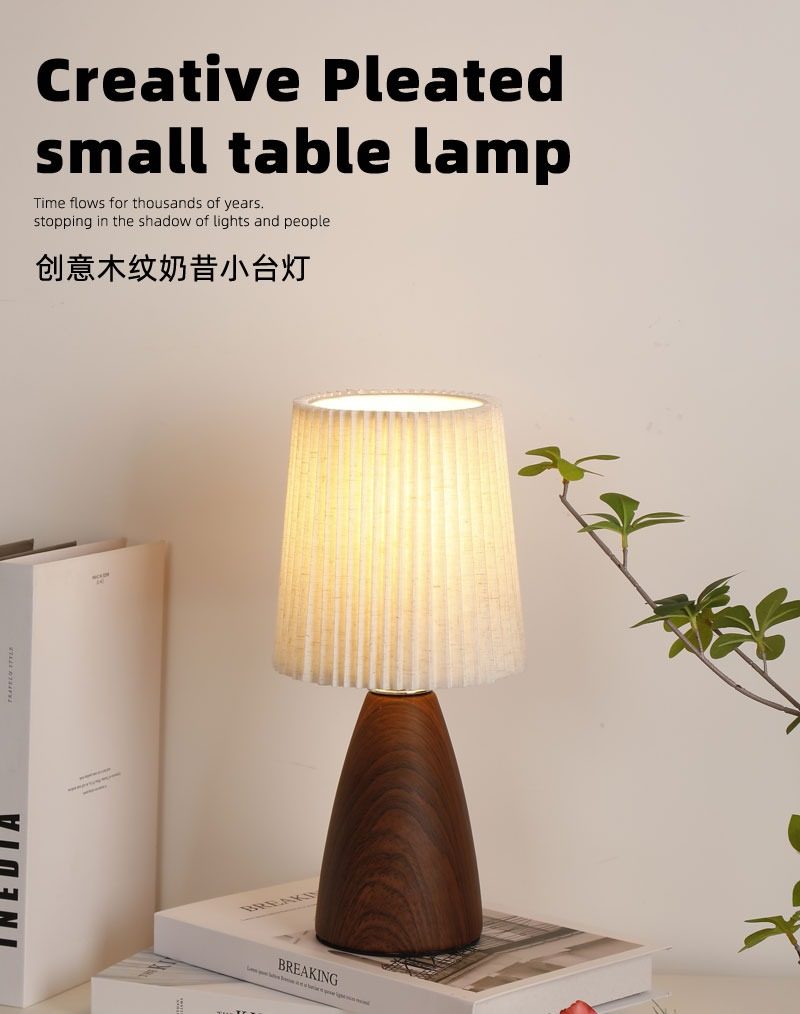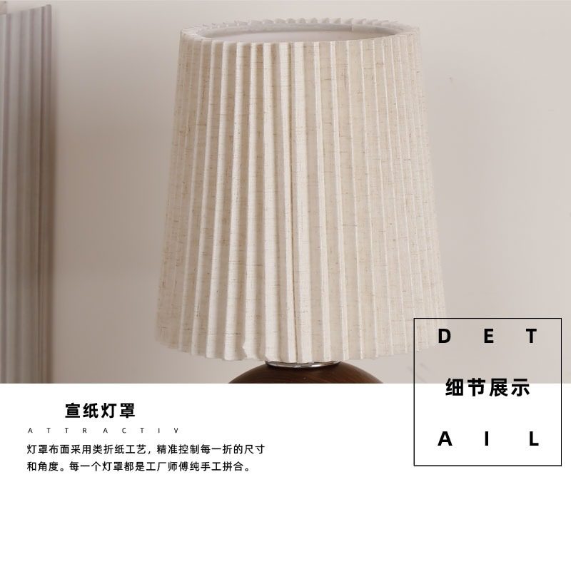 Wabi-Sabi Pleated Table Lamp Bedroom Ceramic Wood Grain High-End Night Light Warm and Romantic Home Decoration Atmosphere Bedside Lamp