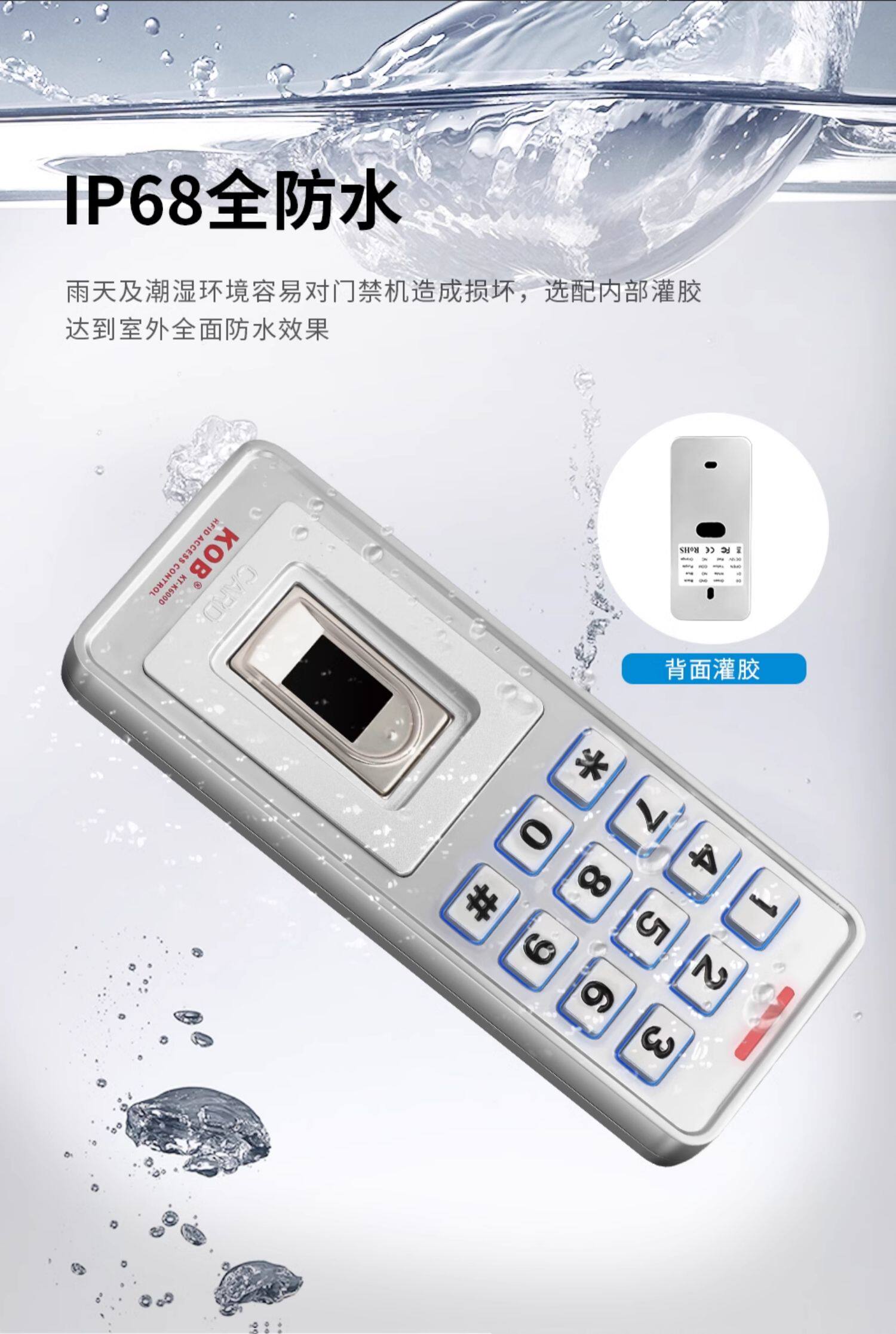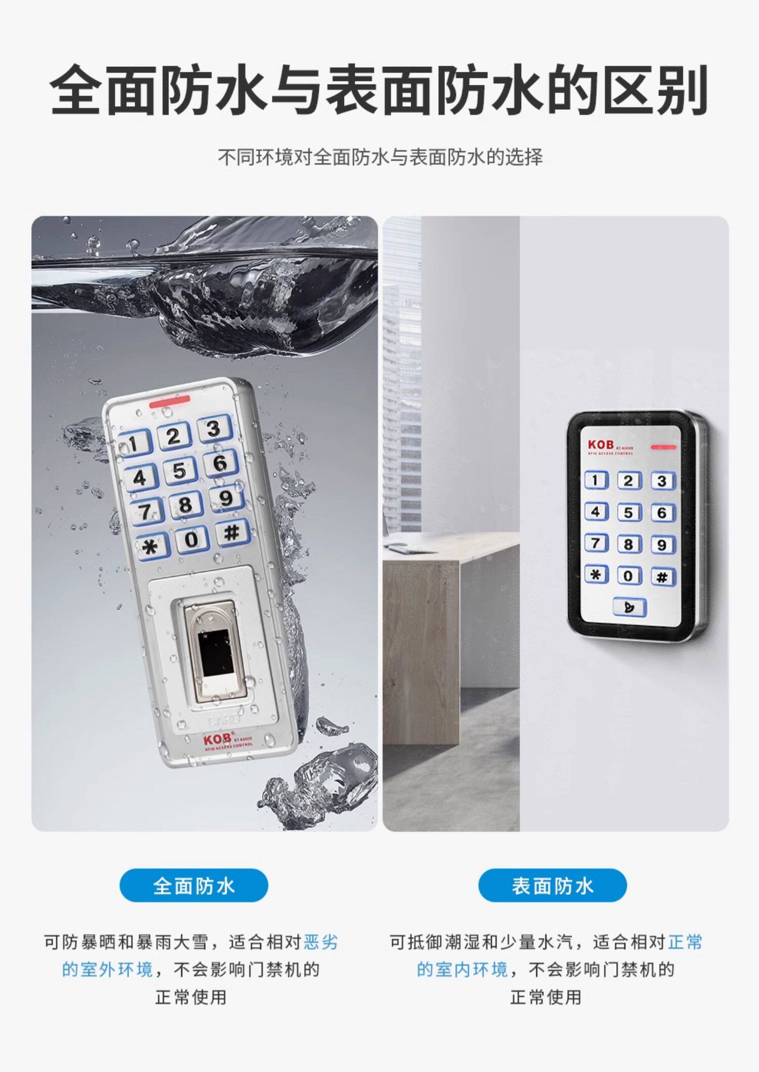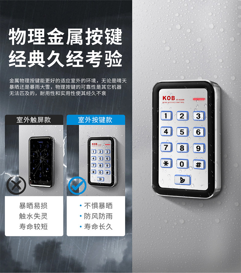 Kob Fingerprint Access Control Idic Card Swipe Password Outdoor Waterproof Rainproof Access Control All-In-One Machine Metal Reader Waterproof