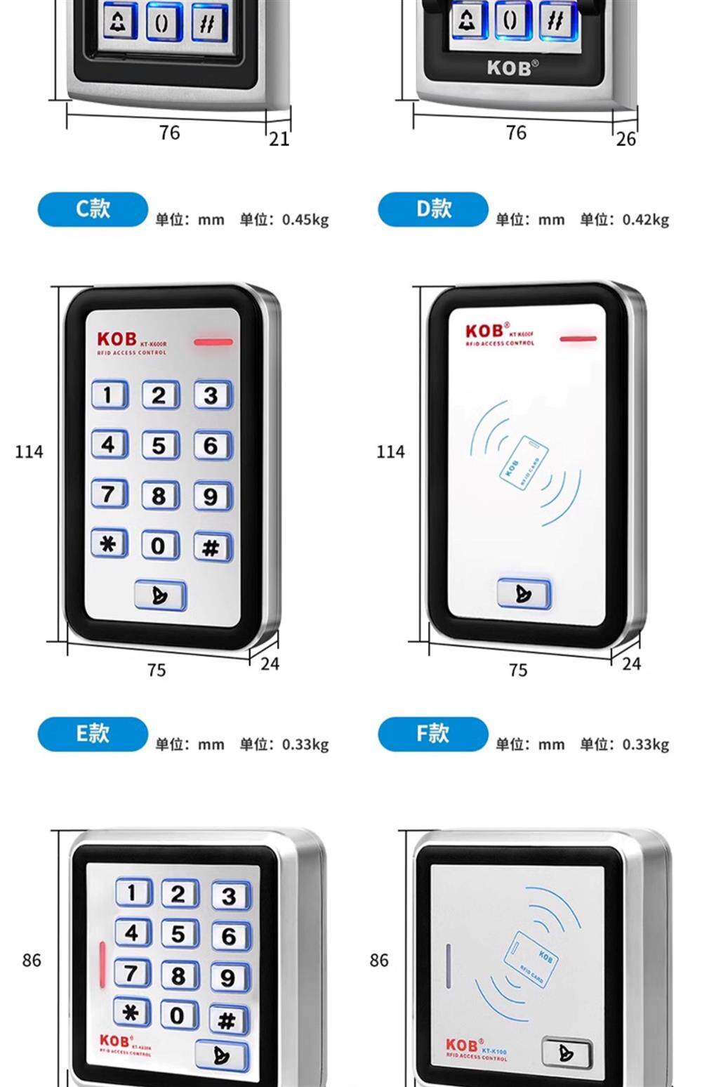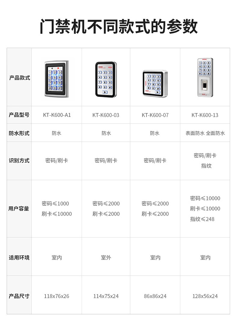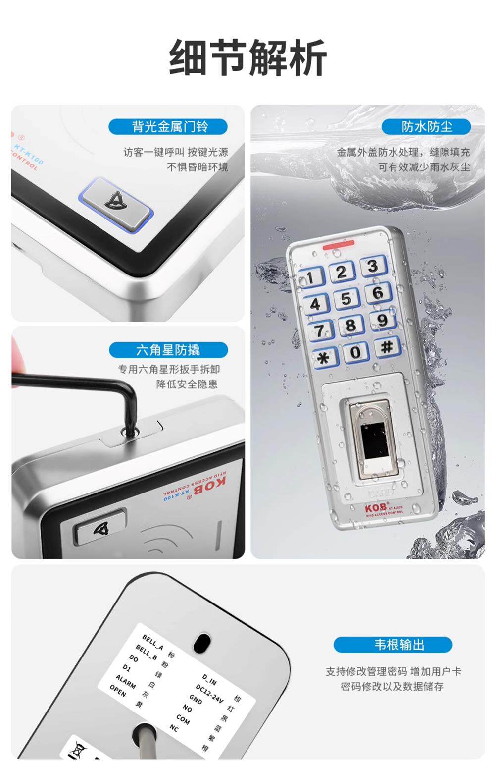 Kob Fingerprint Access Control Idic Card Swipe Password Outdoor Waterproof Rainproof Access Control All-In-One Machine Metal Reader Waterproof