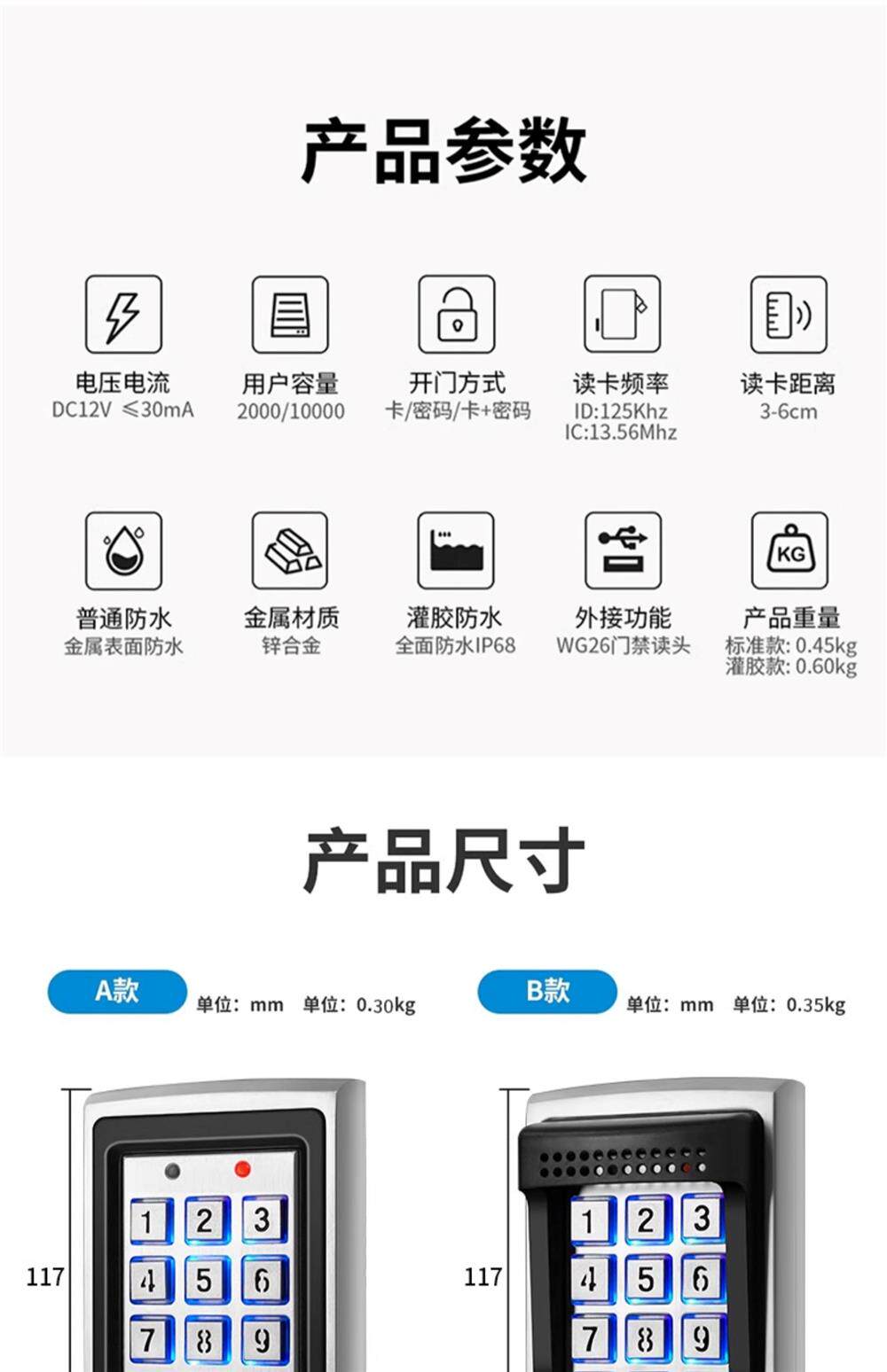 Color Classification Nationwide Door-To-Door Installation [Contact Customer Service],Type a [with Password + Id Card Swipe] Waterproof,Model B [with Password + Id Card Swipe + Black Hat] Waterproof,Model B [with Password + Id Card Swipe + Silver Cap] Waterproof,Model C [with Password + Id Card Swipe] Waterproof,Model C [with Password + Ic Card Swipe] Waterproof,Model D [No Password + Id Card Swipe] Waterproof,Model D [No Password + Ic Card Swipe] Waterproof,E Type [with Password + Id Card Swipe] Waterproof,E Type [with Password + Ic Card Swipe] Waterproof,Model F [No Password + Id Card Swipe] Waterproof,Model F [No Password + Ic Card Swipe] Waterproof,G Model [with Password + Id Card Swipe] Waterproof,G Model [with Password + Ic Card Swipe] Waterproof,H Model [Fingerprint + Password + Id Card Swipe] Waterproof,H Model [Fingerprint + Password + Ic Card Swipe] Waterproof,H Model [Fingerprint + Password + Id Card Swipe] Fully Waterproof,H Model [Fingerprint + Password + Ic Card Swipe] Fully Waterproof,Narrow Id Card Swiping,Narrow Id Card Swipe + Fingerprint,Wide Format Id Card Swipe,Wide Id Card Swipe + Fingerprint,Wide Id Card Swipe + Password,Narrow Surface Mounted Bottom Box,Wide Version Surface Mounted Bottom Box,J Type [with Password + Id Card Swipe] Waterproof,K Type [with Password + Ic Card Swipe] Waterproof,Friendly Reminder: [if You Need a Complete Setup, First Select the "Single Unit" Above ↑, Then Select the "Accessory Kit" Below ↓.],Id Set [No. 1 Glass Door] Single Door + Electric Mortise Lock + Aluminum Clip,Id Set [No. 2 Glass Door] Double Door + Electric Mortise Lock + Aluminum Clip,Id Set [No. 3 Upper and Lower Frameless Door] Single Door + Electric Mortise Lock,Id Set [No. 4 Upper and Lower Frameless Door] Double Door + Electric Mortise Lock,Id Set [No. 5 Framed Door] Single Door + Magnetic Lock,Id Set [No. 6 Glass Door] Single Door + Magnetic Lock + U-Shaped Clip,Id Set [No. 7 Framed Door] Double Door + Magnetic Lock,Id Set [No. 8 Glass Door] Double Door + Magnetic Lock + U-Shaped Clip,Id Set [No. 9 Framed Door] Single Door + Magnetic Lock + L Bracket,Id Set [No. 10 Framed Door] Double Door + Magnetic Lock + L Bracket,Id Set [No. 11 Framed Door] Single Door + Magnetic Lock + Lz Bracket,Id Set [No. 12 Framed Door] Double Door + Magnetic Lock + Lz Bracket,Id Set [No. 13 Framed Door] Single Door + Electric Mortise Lock,Id Set [No. 14 Framed Door] Double Door + Electric Mortise Lock,Ic Kit [Glass Door No. 1] Single Door + Electric Strike Lock + Aluminum Clamp,Ic Kit [No. 2 Glass Door] Double Door + Electric Strike Lock + Aluminum Clamp,Ic Set [No. 3 Upper and Lower Frameless Door] Single Door + Electric Mortise Lock,Ic Set [No. 4 Upper and Lower Frameless Door] Double Door + Electric Mortise Lock,Ic Set [No. 5 Framed Door] Single Door + Magnetic Lock,Ic Kit [No. 6 Glass Door] Single Door + Magnetic Lock + U-Clip,Ic Set [No. 7 Framed Door] Double Door + Magnetic Lock,Ic Kit [No. 8 Glass Door] Double Door + Magnetic Lock + U-Clip,Ic Kit [No. 9 Framed Door] Single Door + Magnetic Lock + L Bracket,Ic Kit [No. 10 Framed Door] Double Door + Magnetic Lock + L Bracket,Ic Kit [No. 11 Framed Door] Single Door + Magnetic Lock + Lz Bracket,Ic Kit [No. 12 Framed Door] Double Door + Magnetic Lock + Lz Bracket,Ic Set [No. 13 Framed Door] Single Door + Electric Mortise Lock,Ic Set [No. 14 Framed Door] Double Door + Electric Mortise Lock