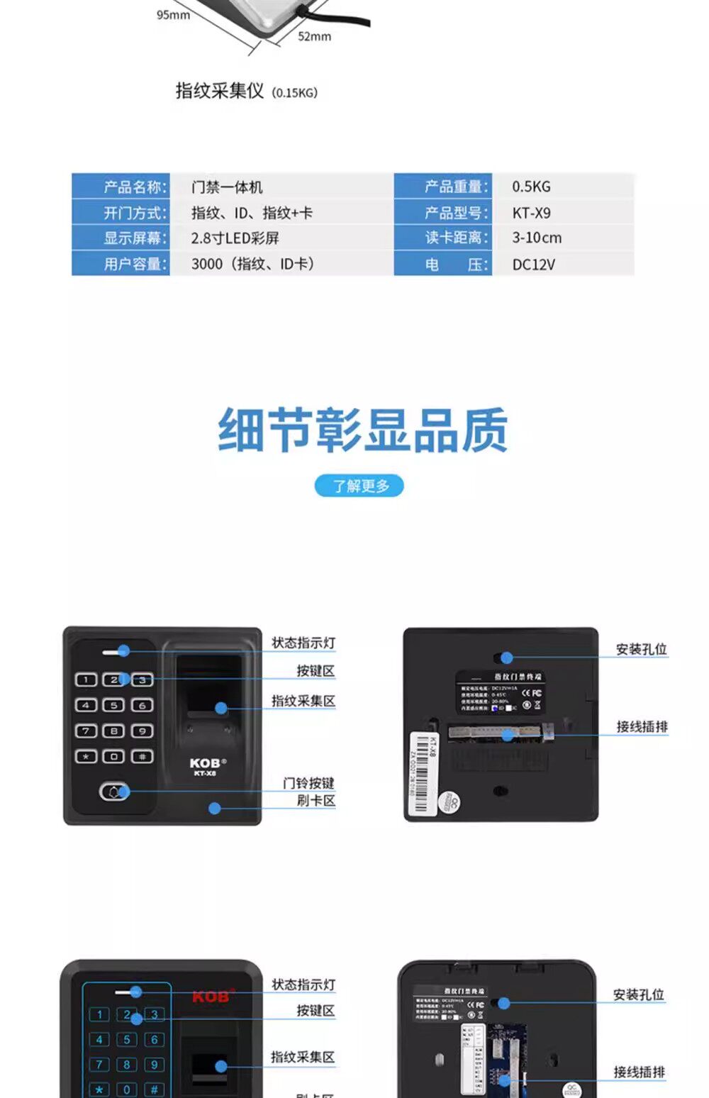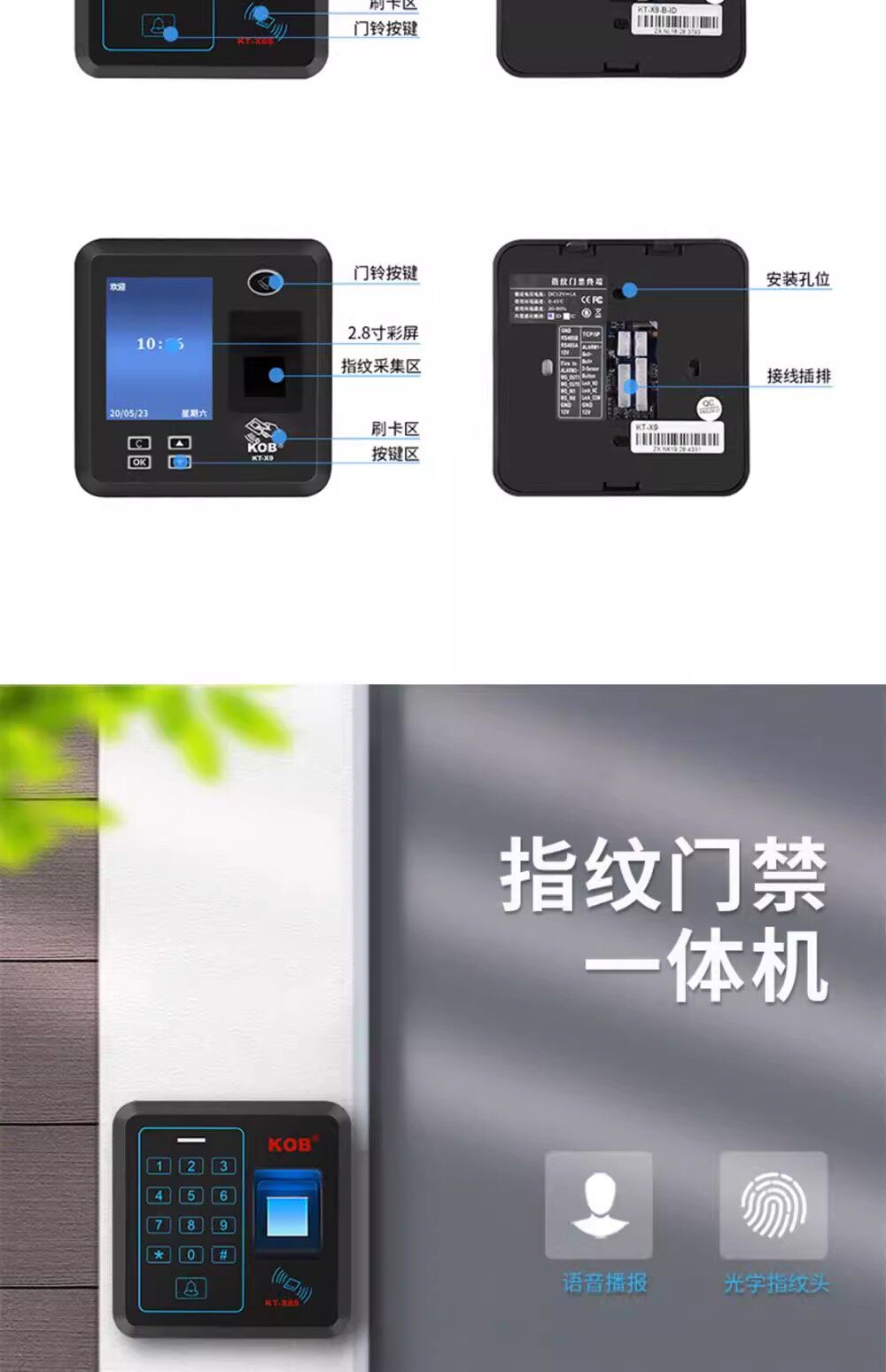 Kob Fingerprint Access Control Machine Password Card Swipe Unlock Office Attendance Access Control System All-In-One Fingerprint Collector