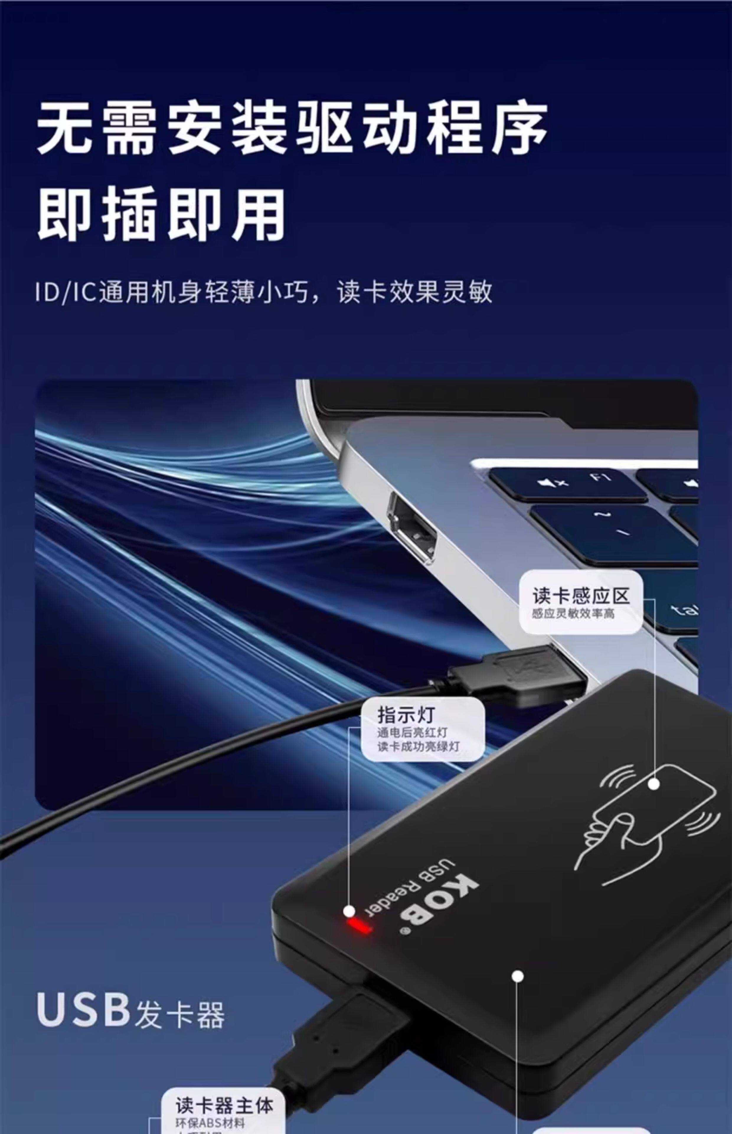 Kob Access Control Card Issuing Machine Ic Card Reader USB Interface Card Reader Driver-Free Id Card Reader Access Control Card Reader and Writer