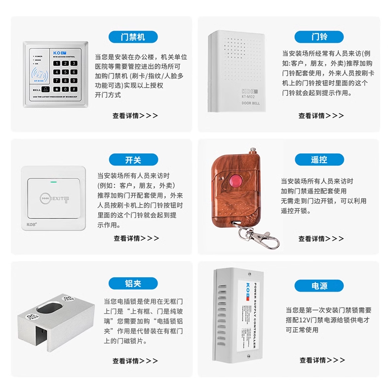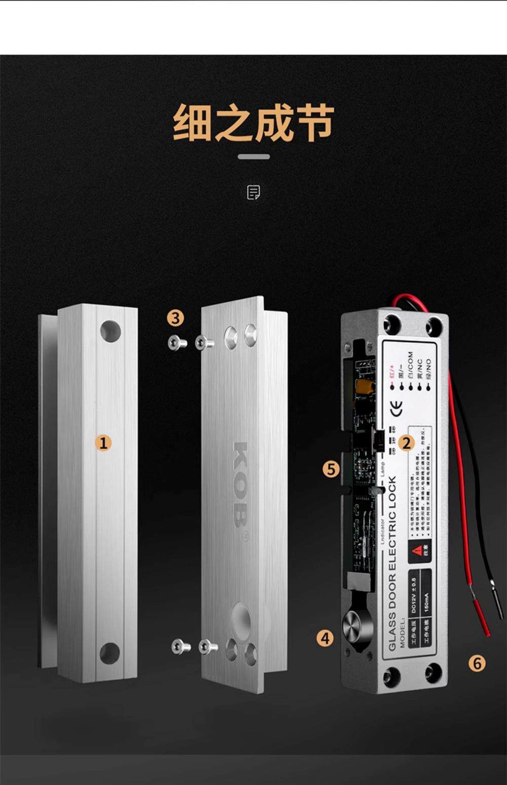 Kob Frameless Lock, Surface-Mounted Electric Bolt Lock, Framed Glass Door, Wooden Door, Iron Door, Electronic Lock, Access Control Lock