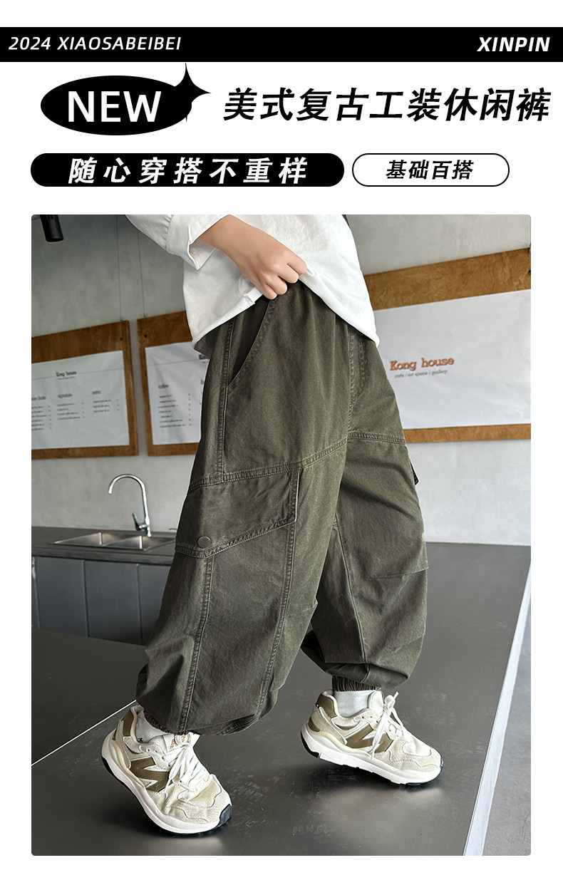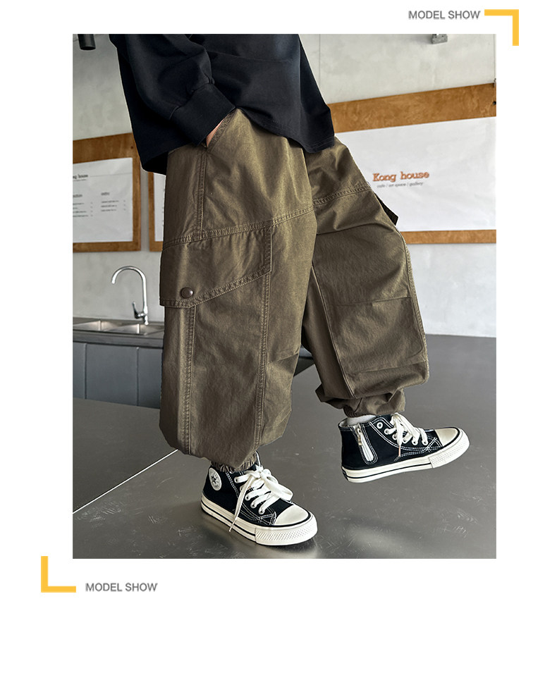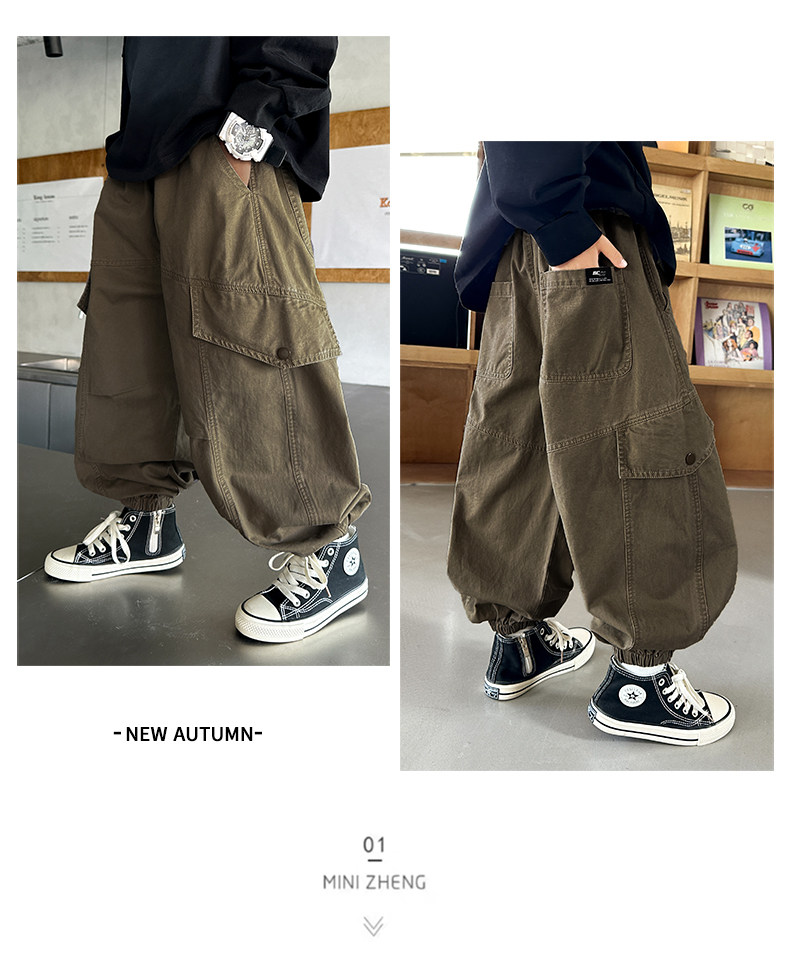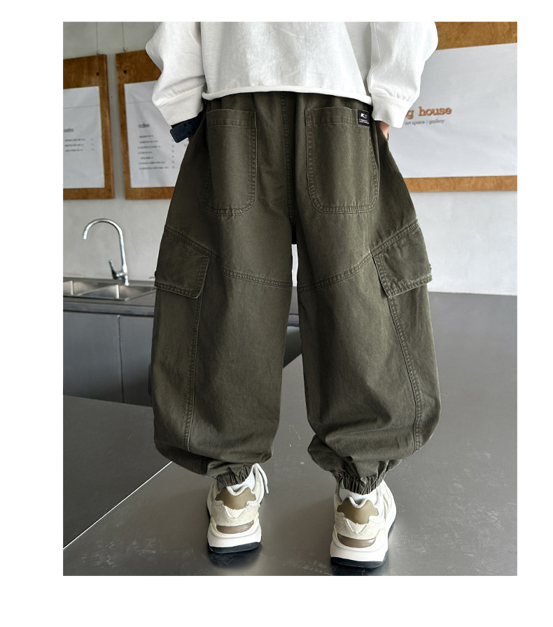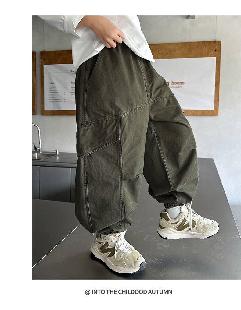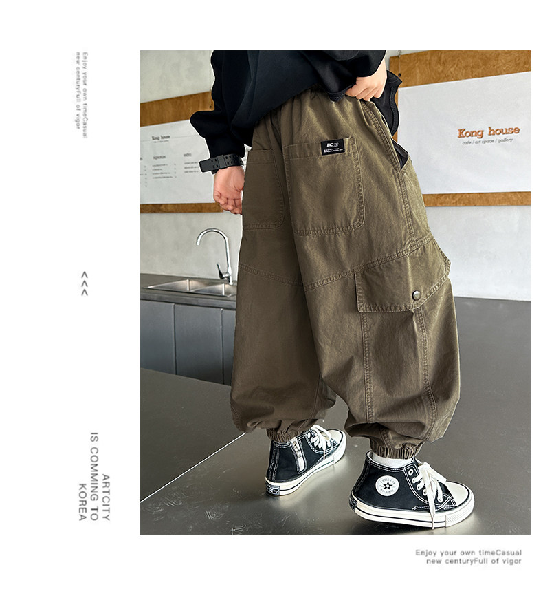 Boys' Casual Pants Spring and Autumn Children's Fleece Cargo Pants 2026 New Style Cool Little Boy Jogger Pants Spring Wear