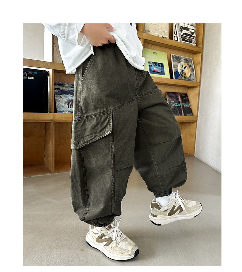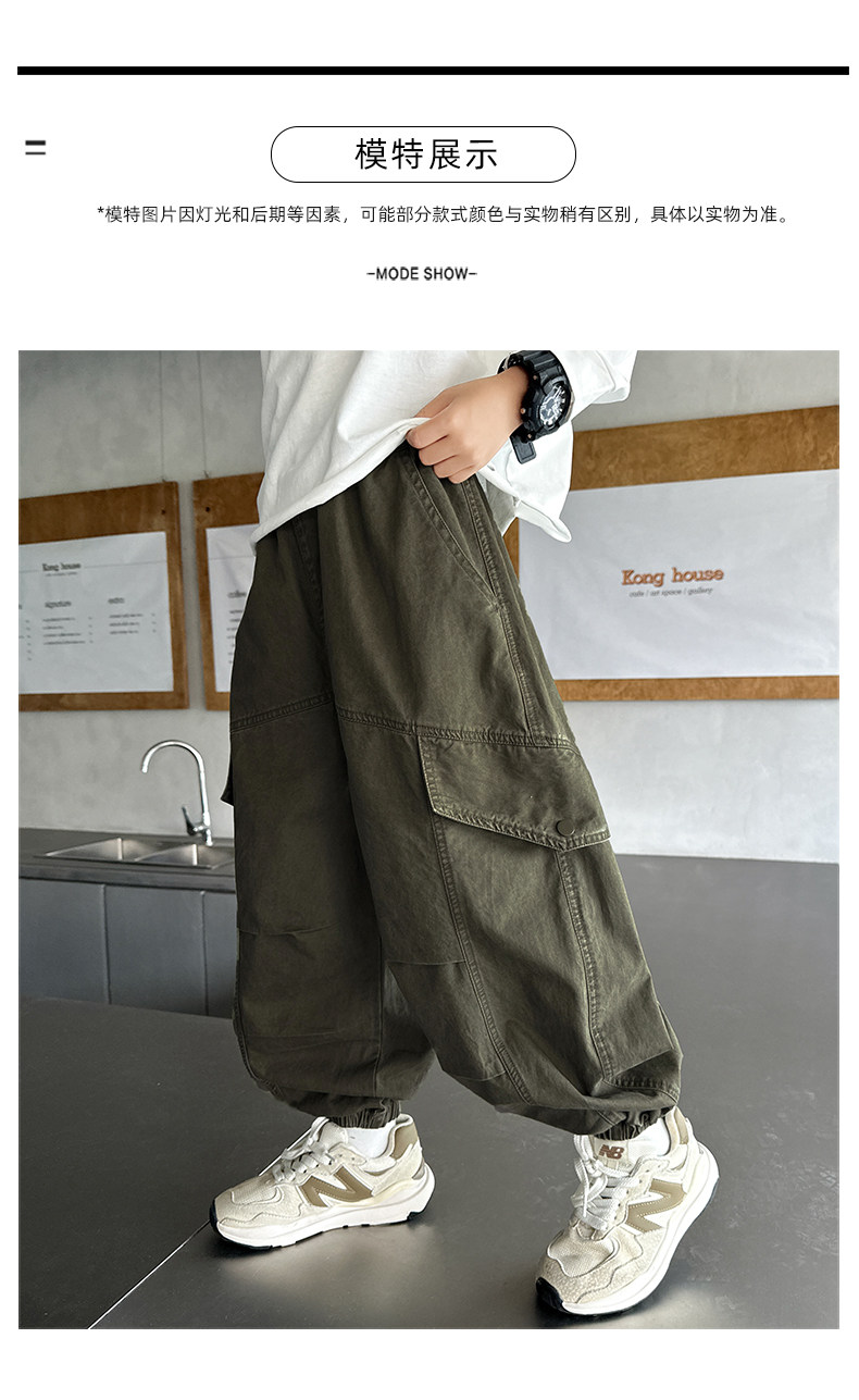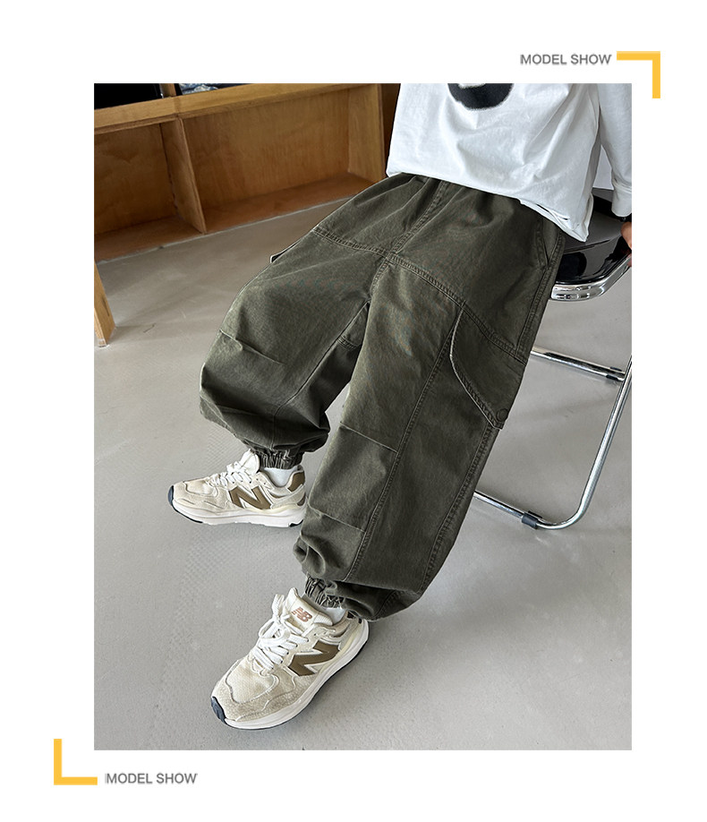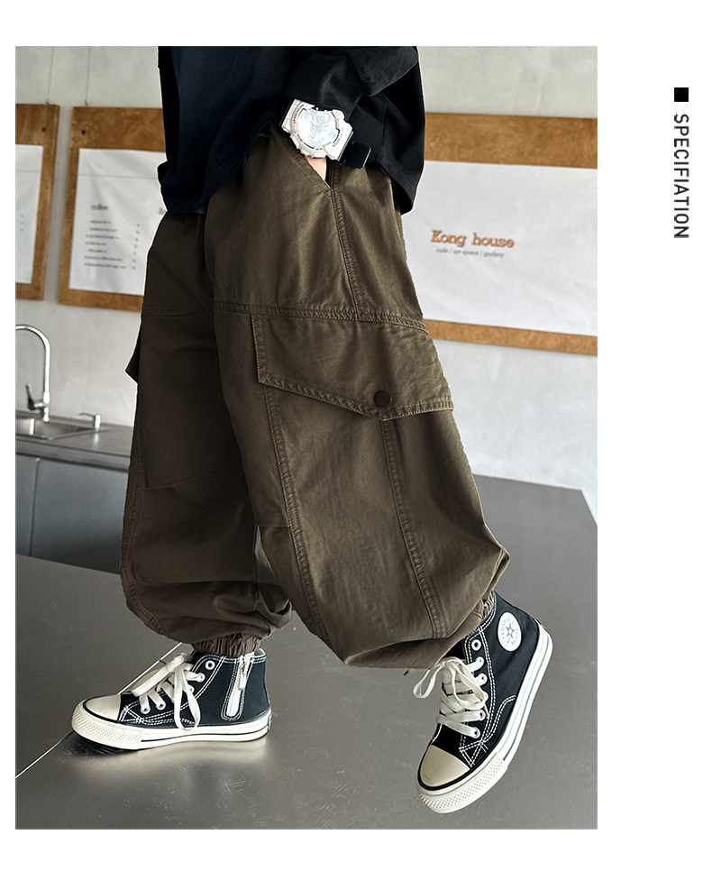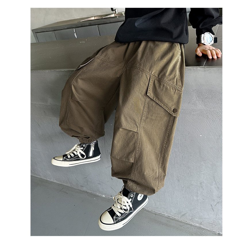 Boys' Casual Pants Spring and Autumn Children's Fleece Cargo Pants 2026 New Style Cool Little Boy Jogger Pants Spring Wear