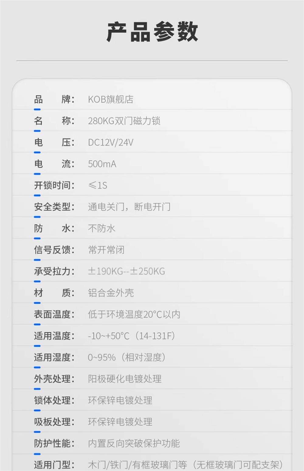 Kob Access Control Magnetic Lock 280kg Electromagnetic Lock Double Door Delay Feedback Electric Lock Waterproof Electric Control Lock Single Door Lock