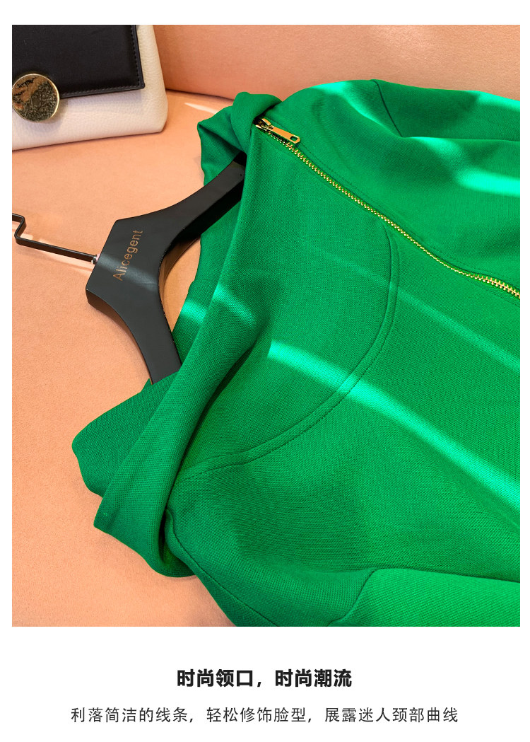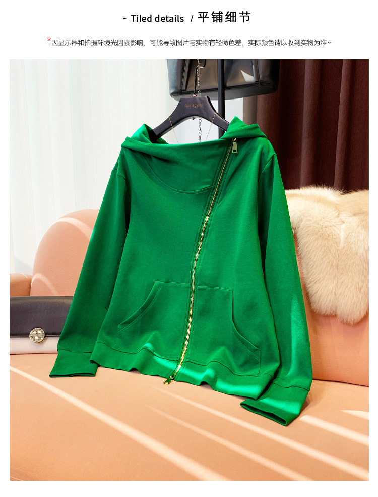 High-End Style Diagonal Zipper Loose Hooded Sweatshirt for Women 2024 Spring and Autumn New Style Super Nice-Looking Hot-Selling Casual Short Jacket