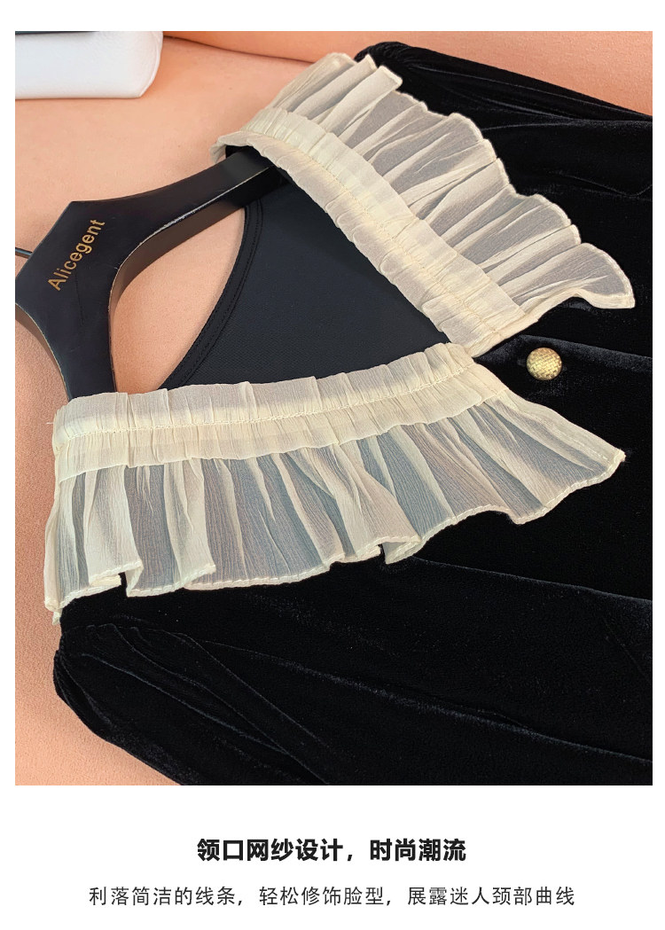 French-Style Chanel-Inspired Velvet Long-Sleeve Shirt with Doll Collar for Women, 2024 Spring and Autumn New Fashion Design, Lightweight Top