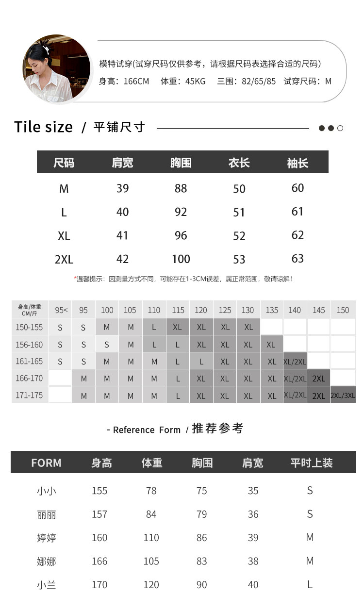 China (cm) 160-165/84-86 165-170 / 88-90 167-172 / 92-96 168-173 / 98-102 170-176 / 106-110