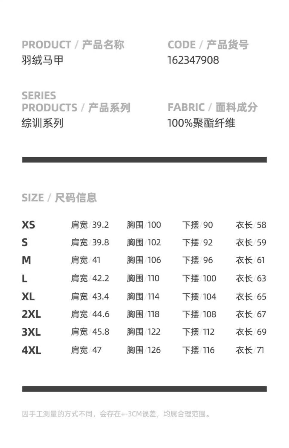 Size S/160,M/165,L/170,XL/175