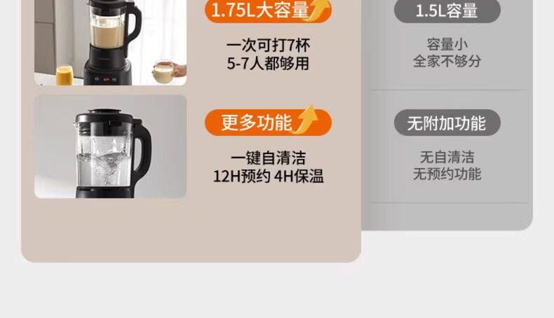 Joyoung Blender for Home Use, New Model, Multifunctional 1.75L Large Capacity Soy Milk Maker, Fully Automatic Smart Food Processor