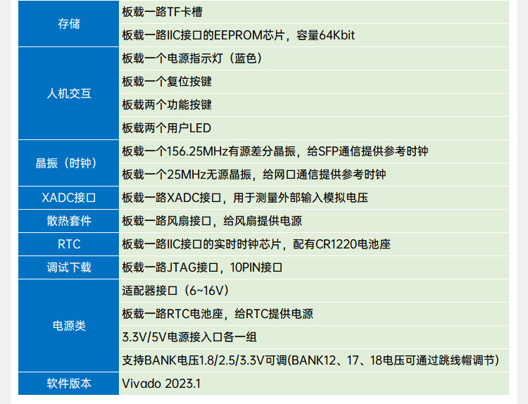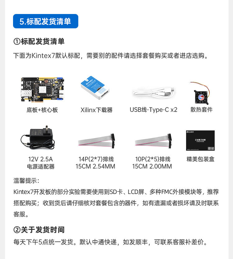 Color Classification 7K325T Version (Bottom Board + Xc7K325T Core Board),7K410T Version (Bottom Board + Xc7K410T Core Board),7K325T Version + 7inch Rgb Screen 800*480,7K410T Version + 7inch Rgb Screen 800*480,7K325T Version + 7inch Rgb Screen 800+ High-Speed Ad/Da,7K410T Version + 7inch Rgb Screen 800+ High-Speed Ad/Da,7K325T Version + 7inch Rgb Screen 800+Ov5640 Camera,7K410T Version + 7inch Rgb Screen 800+Ov5640 Camera,7K325T Version + 7inch Rgb Screen 800+ Binocular Ov5640 Camera,7K410T Version + 7inch Rgb Screen 800+ Binocular Ov5640 Camera,7K325T Version + 7inch Rgb Screen 800 + Binocular Ov5640 Camera + Fmc Four Network Port Module,7K410T Version + 7inch Rgb Screen 800 + Binocular Ov5640 Camera + Fmc Four Network Port Module,7K325T Version + 7inch Rgb Screen 800 + Binocular Ov5640 Camera + Fmc_Usb3.0 Module,7K410T Version + 7inch Rgb Screen 800 + Binocular Ov5640 Camera + Fmc_Usb3.0 Module,7K325T Version + 7inch Rgb Screen 800*480 + Monocular Ov5640 Camera + Fmc Usb3.0 + Fmc Four-Way Network Port + Sfp High-Speed Cable,7K410T Version + 7inch Rgb Screen 800*480 + Monocular Ov5640 Camera + Fmc Usb3.0 + Fmc Four-Way Network Port + Sfp High-Speed Cable,7K325T Version + 7inch Rgb Screen 800+Ov5640 Camera + 25g High-Speed Cable + Fmc Extiob + Fmc Usb3.0 + Fmc Four-Way Network Port + Fmc Cameralink + Fmc 3g Sdi Video Communication Card + Fmc Four Optical Port Module,7K410T Version + 7inch Rgb Screen 800+Ov5640 Camera + 25g High-Speed Cable + Fmc Extiob + Fmc Usb3.0 + Fmc Four-Way Network Port + Fmc Cameralink + Fmc 3g Sdi Video Communication Card + Fmc Four Optical Port Module,(Tip) Please Contact Customer Service for Other Accessories