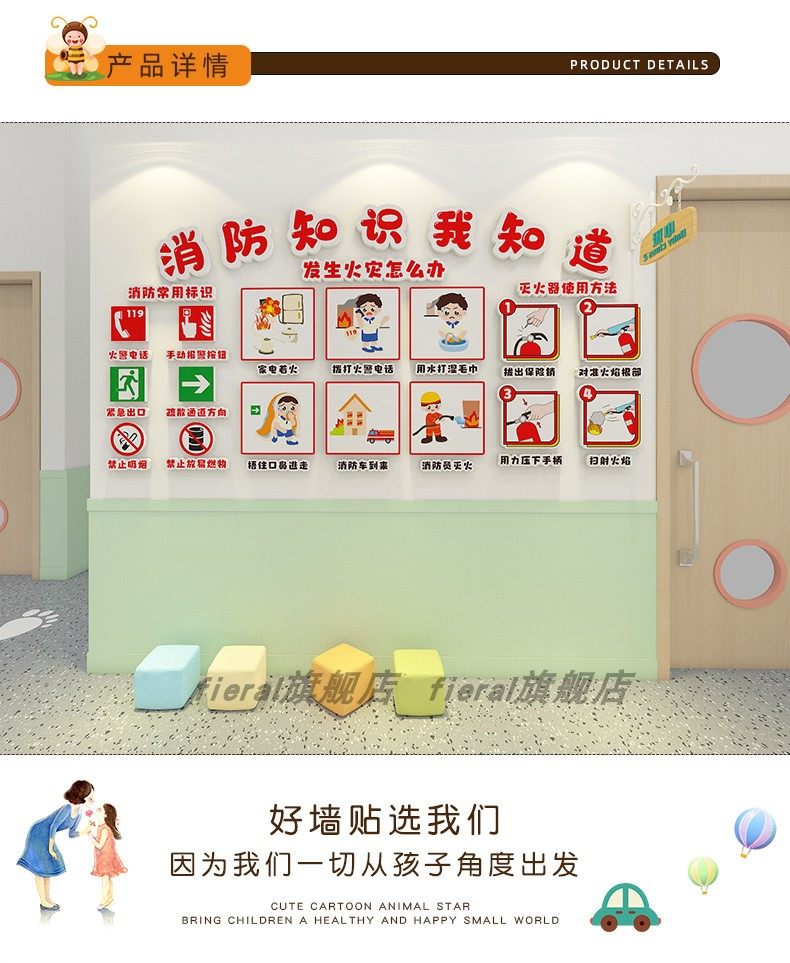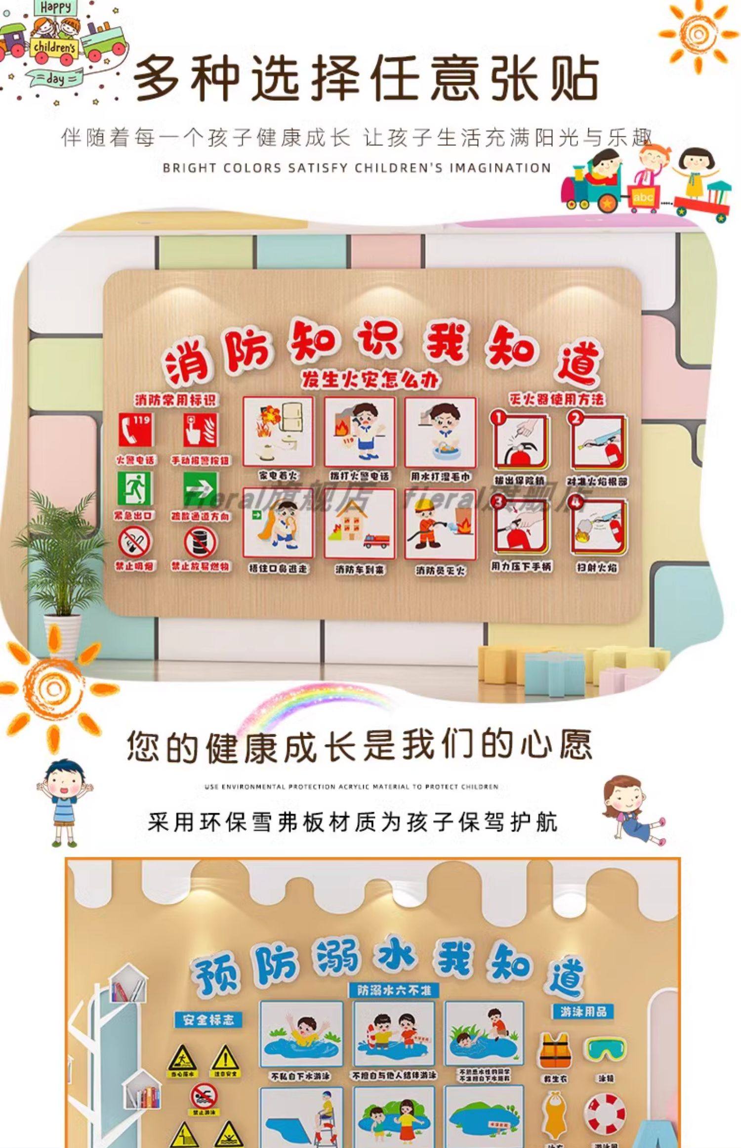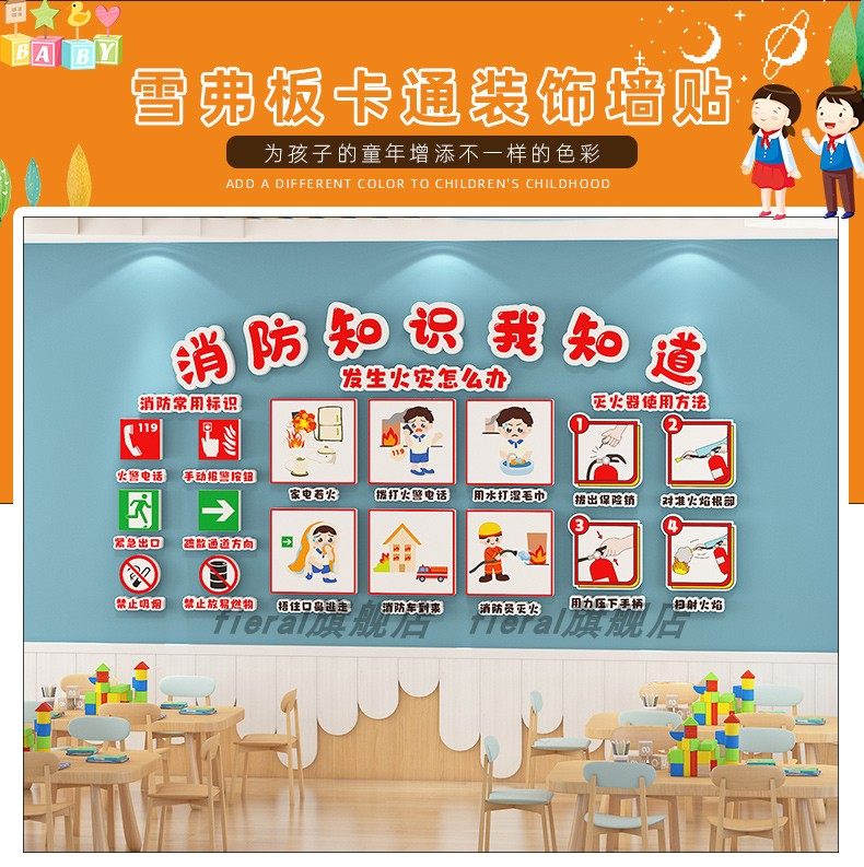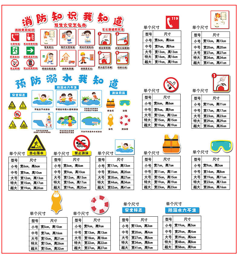 Kindergarten Anti-Drowning Safety Education Promotional Theme Cultural Wall Stickers Finished Product Corridor Environment Creation Hallway Wall Decoration