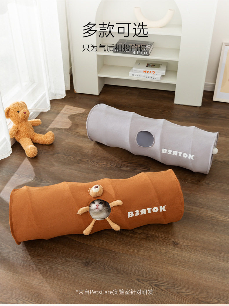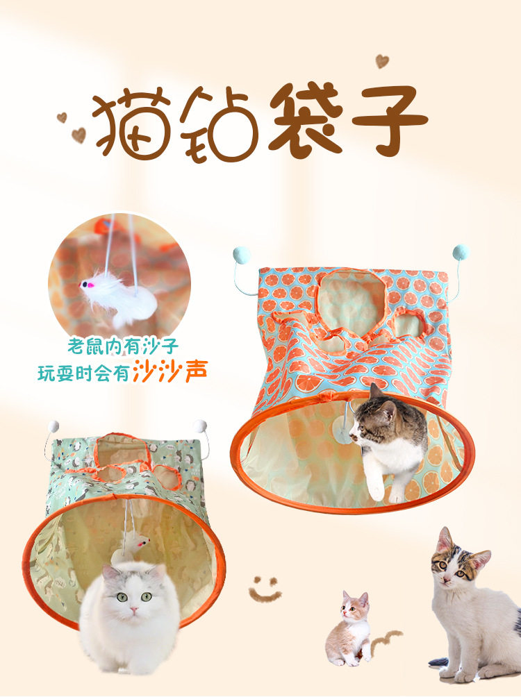 Cat Tunnel Self-Entertainment Boredom-Relief Passage, Foldable and Storable, Cat Teaser Wand Toy, Kitten and Young Cat Durable Scratch-Resistant Hideaway House