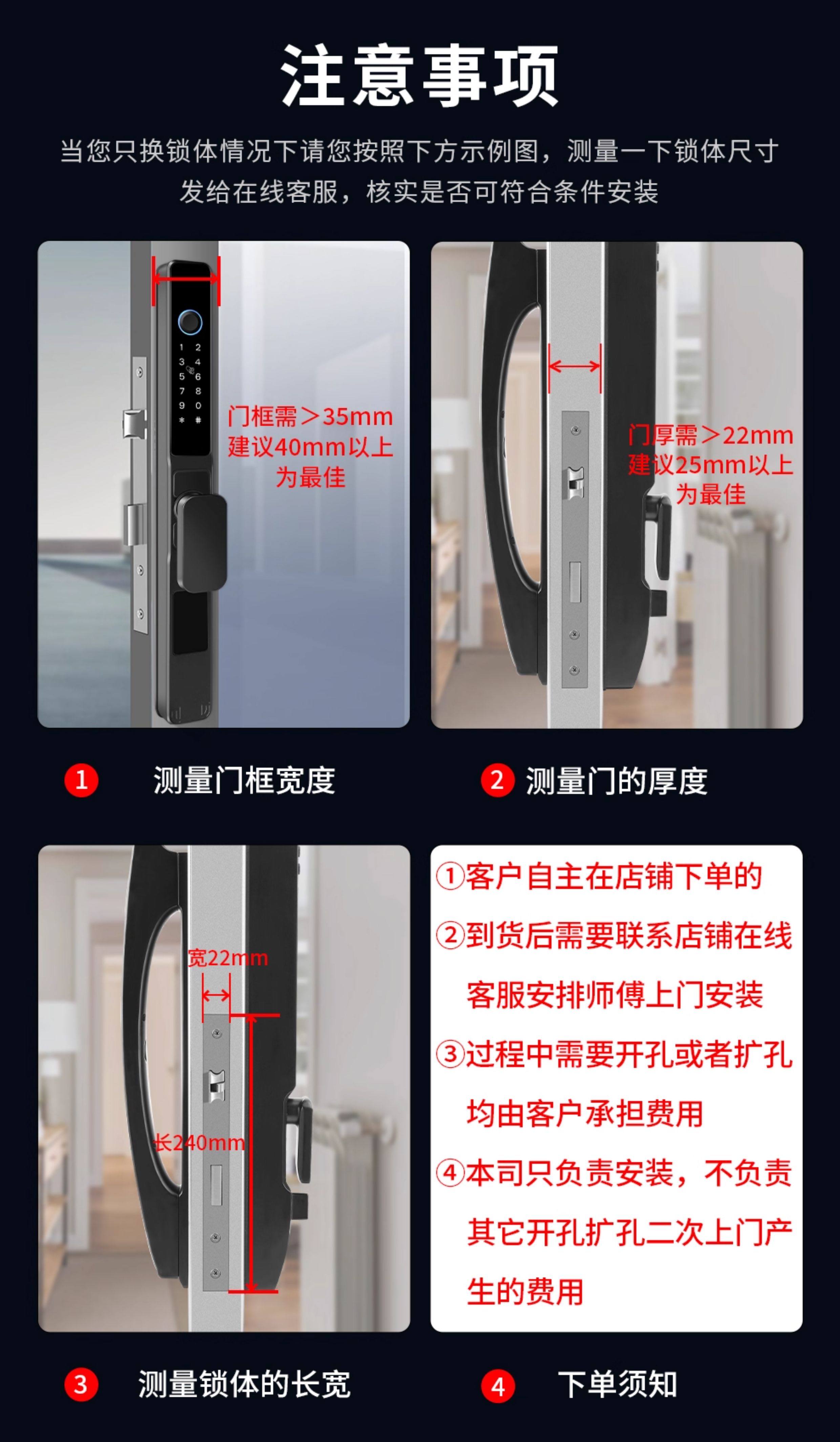 Color Classification A90 [Semi-Automatic Fingerprint Lock] Short Handle + Card Swipe + Password + Mini Program + Waterproof + 25mm Mortise Lock Body + Installation Guide,A90 [Semi-Automatic Fingerprint Lock] Short Handle + Card Swipe + Password + Applet + Waterproof + 25 Margin Lock Body + Door-To-Door Installation,A90 [Semi-Automatic Fingerprint Lock] Short Handle + Card Swipe + Password + Mini Program + Waterproof + 35mm Mortise Lock Body + Installation Guide,A90 [Semi-Automatic Fingerprint Lock] Short Handle + Card Swipe + Password + Applet + Waterproof + 35 Margin Lock Body + Door-To-Door Installation,A91 [Semi-Automatic Fingerprint Lock] Long Handle + Card Swipe + Password + Mini Program + Waterproof + 25mm Mortise Lock Body + Installation Guide,A91 [Semi-Automatic Fingerprint Lock] Long Handle + Card Swipe + Password + Mini Program + Waterproof + 25mm Mortise Lock Body + On-Site Installation,A91 [Semi-Automatic Fingerprint Lock] Long Handle + Card Swipe + Password + Mini Program + Waterproof + 35mm Mortise Lock Body + Installation Guide,A91 [Semi-Automatic Fingerprint Lock] Long Handle + Card Swipe + Password + Mini Program + Waterproof + 35mm Mortise Lock Body + On-Site Installation,A92 [Fully Automatic Fingerprint Lock] Inner Handle + Card Swipe + Password + Applet + Waterproof + 25 Margin Lock Body + Installation Guidance,A92 [Fully Automatic Fingerprint Lock] Inner Handle + Card Swipe + Password + Applet + Waterproof + 25 Margin Lock Body + Door-To-Door Installation,A92 [Fully Automatic Fingerprint Lock] Inner Handle + Card Swipe + Password + Applet + Waterproof + 35 Margin Lock Body + Installation Guidance,A92 [Fully Automatic Fingerprint Lock] Inner Handle + Card Swipe + Password + Applet + Waterproof + 35 Margin Lock Body + Door-To-Door Installation,A93 [Fully Automatic Facial Recognition Lock] Interior Handle + Card Swipe + Password + Mini Program + Waterproof + 25mm Mortise Lock Body + Installation Guide,A93 [Fully Automatic Facial Recognition Lock] Interior Handle + Card Swipe + Password + Mini Program + Waterproof + 25mm Mortise Lock Body + On-Site Installation,A93 [Fully Automatic Facial Recognition Lock] Interior Handle + Card Swipe + Password + Mini Program + Waterproof + 35mm Mortise Lock Body + Installation Guide,A93 [Fully Automatic Facial Recognition Lock] Interior Handle + Card Swipe + Password + Mini Program + Waterproof + 35mm Mortise Lock Body + On-Site Installation,A90 [Semi-Automatic Fingerprint Lock] Short Handle + Card Swipe + Password + Wechat Mini Program + Waterproof + Single Panel + Installation Guide,A91 [Semi-Automatic Fingerprint Lock] Long Handle + Card Swipe + Password + Wechat Mini Program + Waterproof + Single Panel + Installation Guide,A92 [Fully Automatic Fingerprint Lock] Inner Handle + Card Swipe + Password + Wechat Applet + Waterproof + Single Panel + Installation Guidance,A93 [Fully Automatic Facial Recognition Lock] Interior Handle + Card Swipe + Password + Wechat Mini Program + Waterproof + Single Panel + Installation Guide