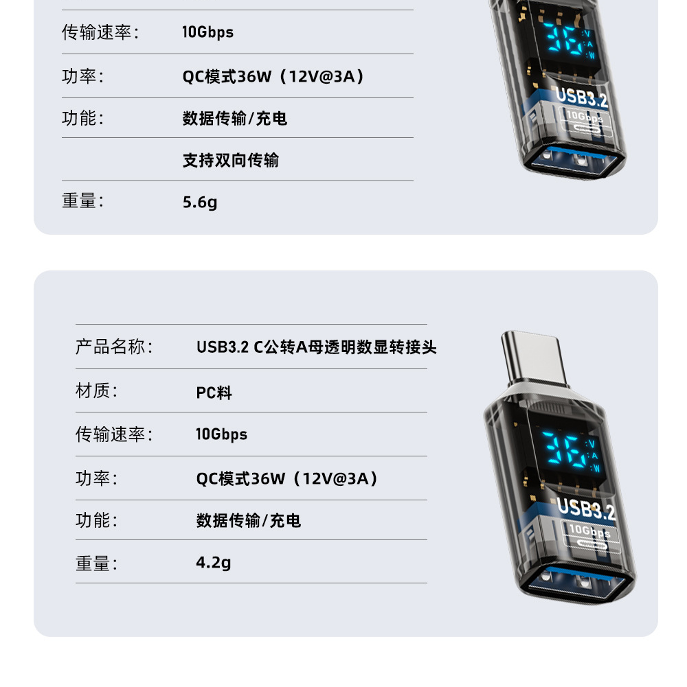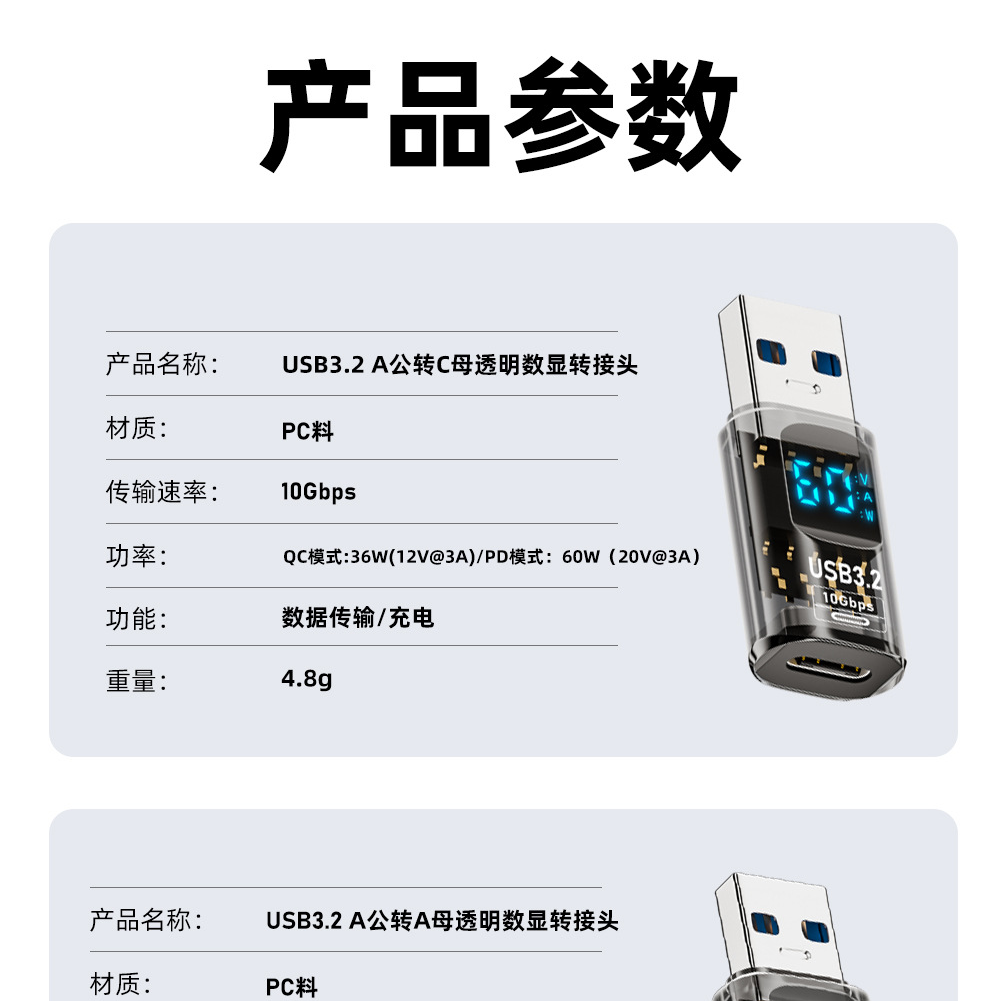 Color Classification USB3.2 a Male to a Female Digital Display Adapter ★ Black 10Gbps Transmission ● 36W Fast Charge,USB3.2 a Male to a Female Digital Display Adapter★Light Black 10Gbps Transmission●36W Fast Charge,USB3.2 a Male to C Female Digital Display Adapter★Black 10Gbps Transmission●60W Fast Charge,USB3.2 a Male to C Female Digital Display Adapter★Light Black 10Gbps Transmission●60W Fast Charge,USB3.2 C Male to a Female Digital Display Adapter★Black 10Gbps Transmission●36W Fast Charge,USB3.2 C Male to a Female Digital Display Adapter★Light Black 10Gbps Transmission●36W Fast Charge