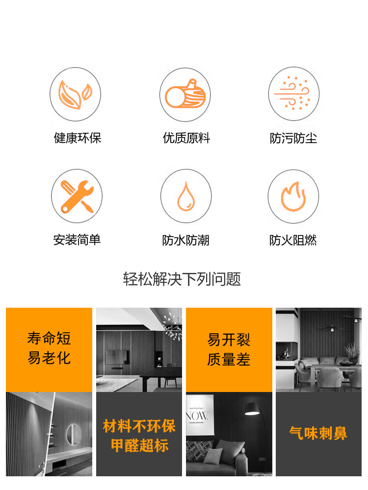 Bamboo Fiber Wood Veneer Small Grille Board Tv Background Wall Great Wall Ultra-Thin 8 Concave and Convex Pvc Wood Grain Wall Panel