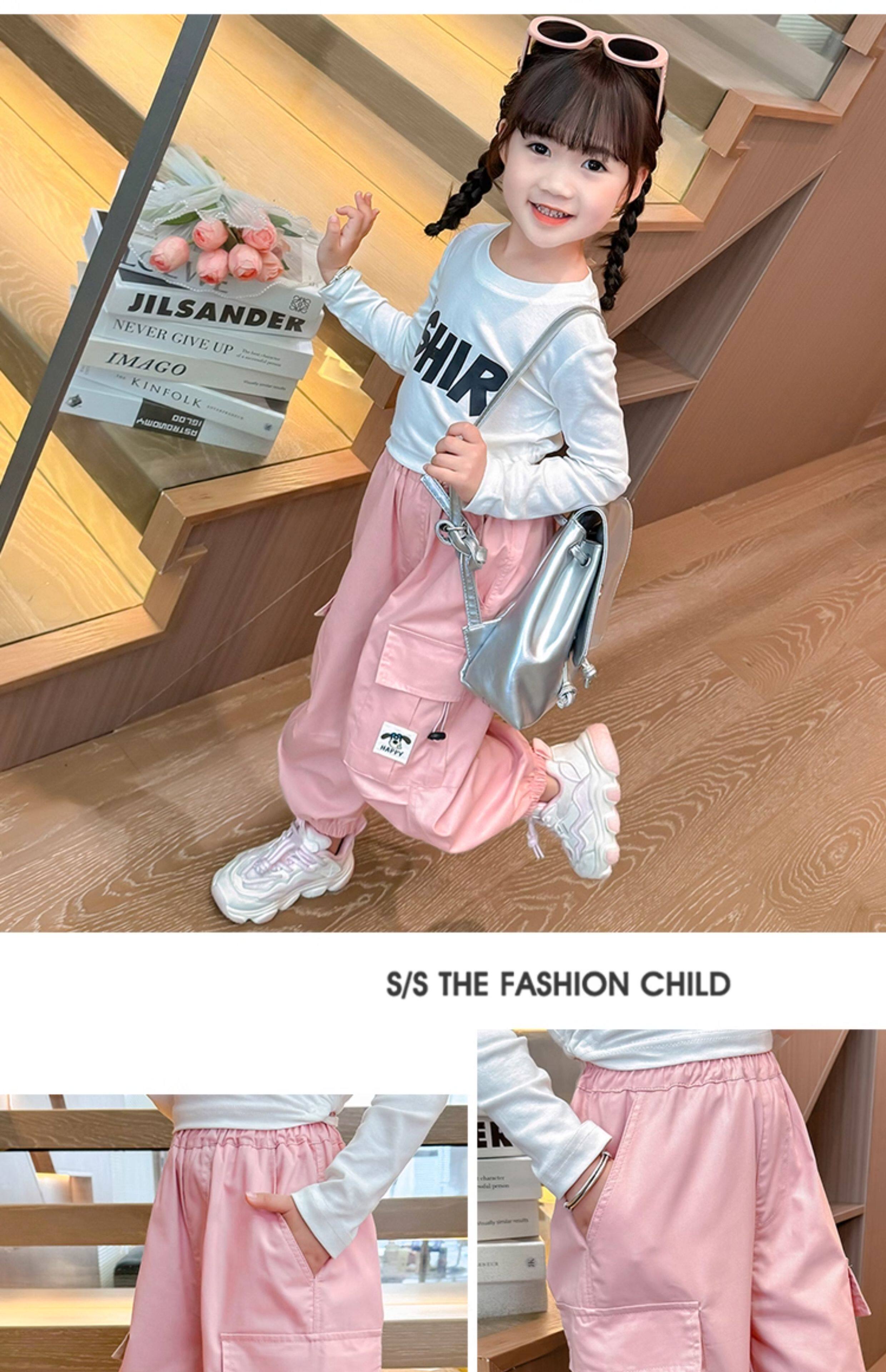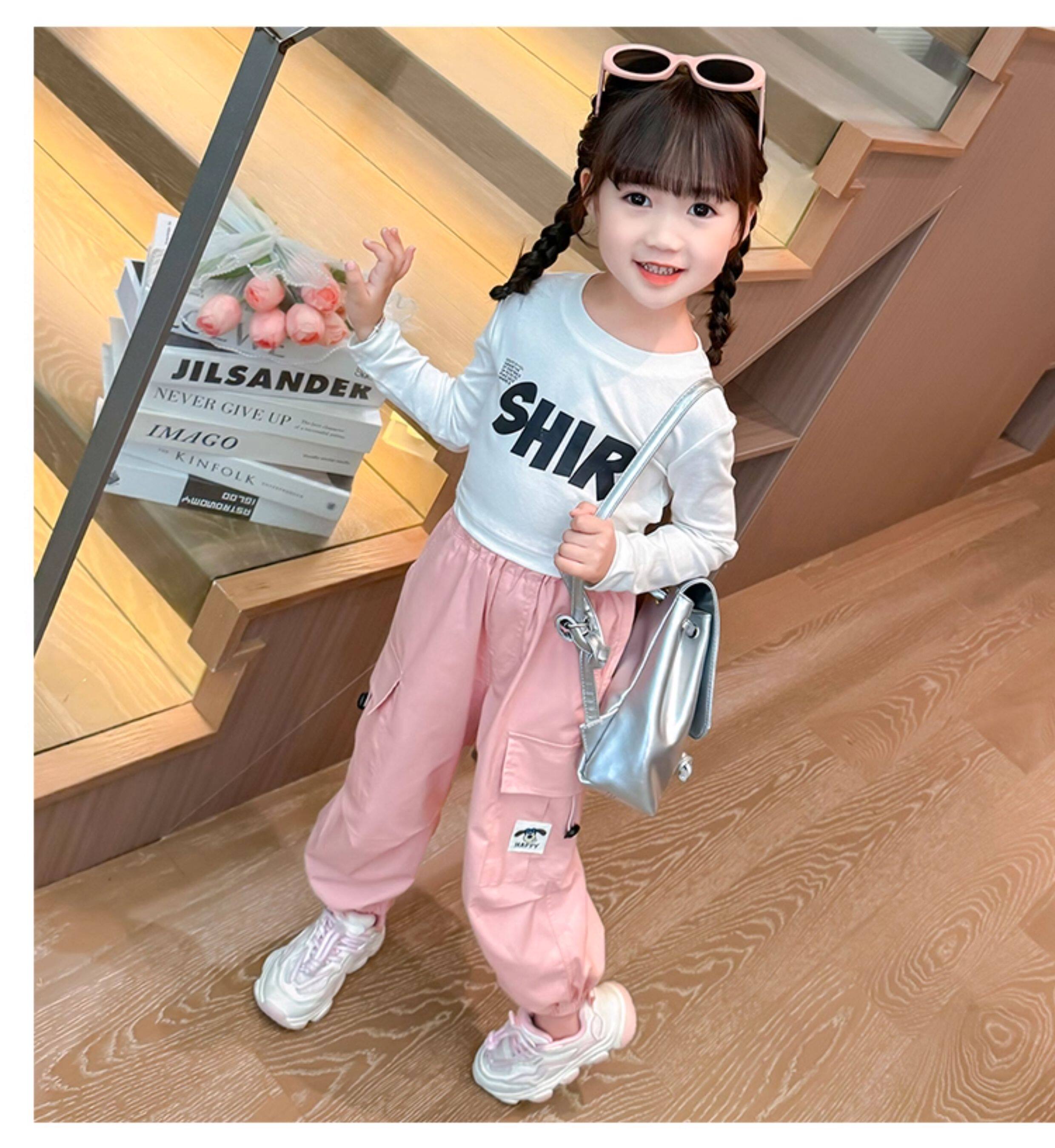 Girls' Spring and Autumn Cargo Pants 2026 New Fashion Children's Autumn Wear Stylish Girls' Long Pants Trendy Street-Style Sports Pants