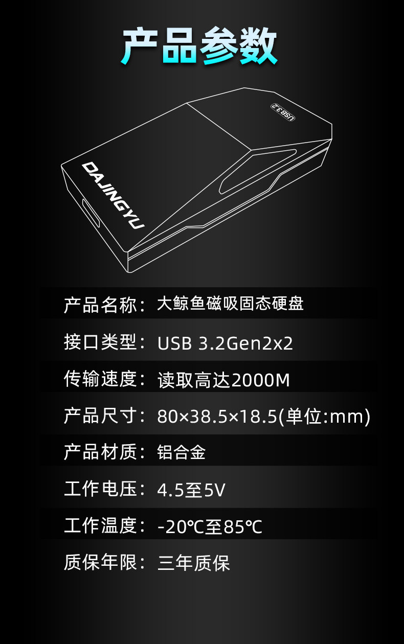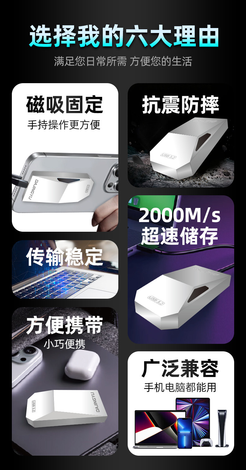 Dajingyu High-Speed Usb3.2Gen2 Portable Mobile Solid-State Drive Pssd Camera Mobile Phone Computer Storage Disk