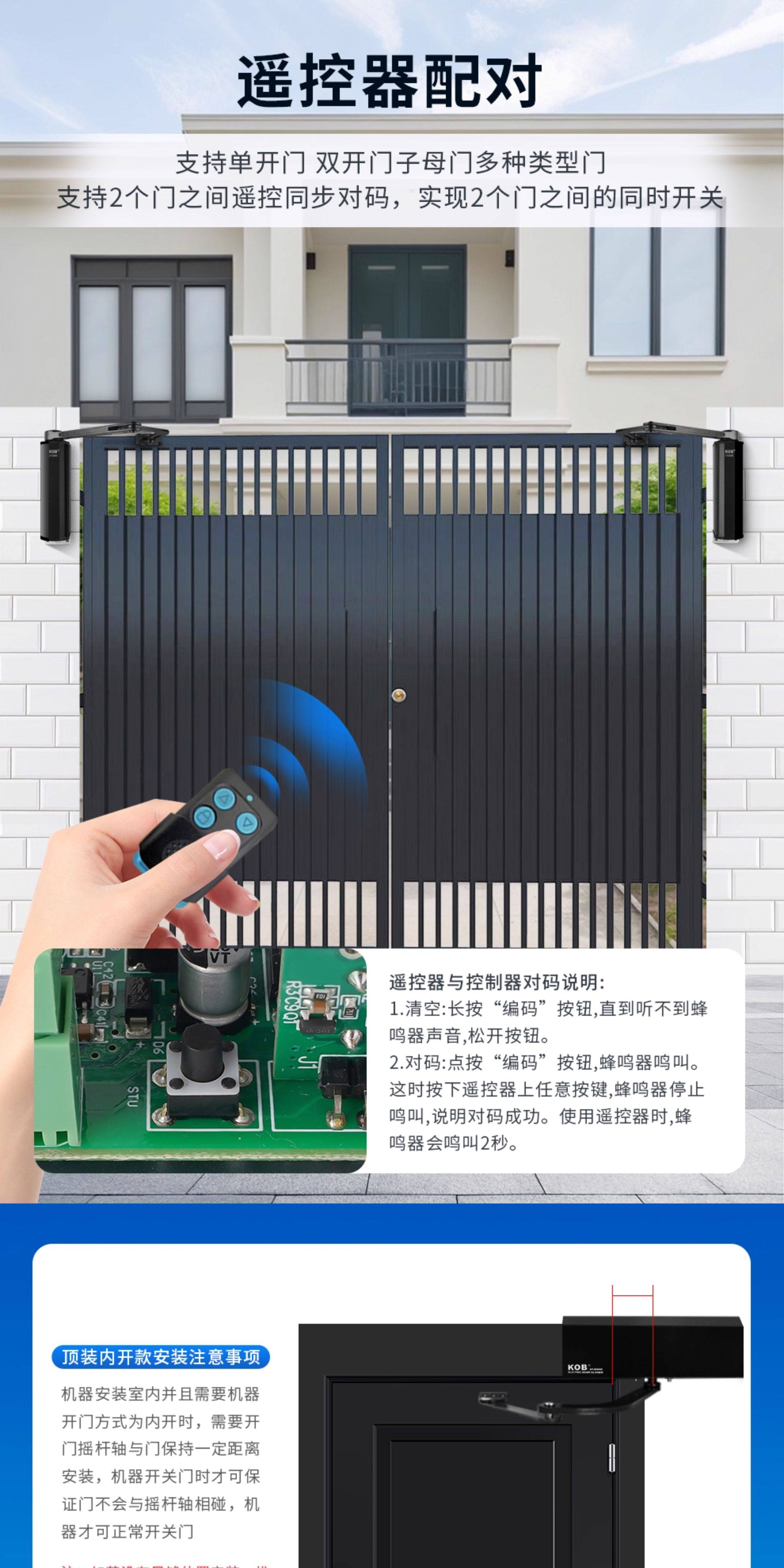 Kob Side-Mounted Electric Door Closer Iron Fence Automatic Swing Door Home Community Door Opener Sensor Door Unit