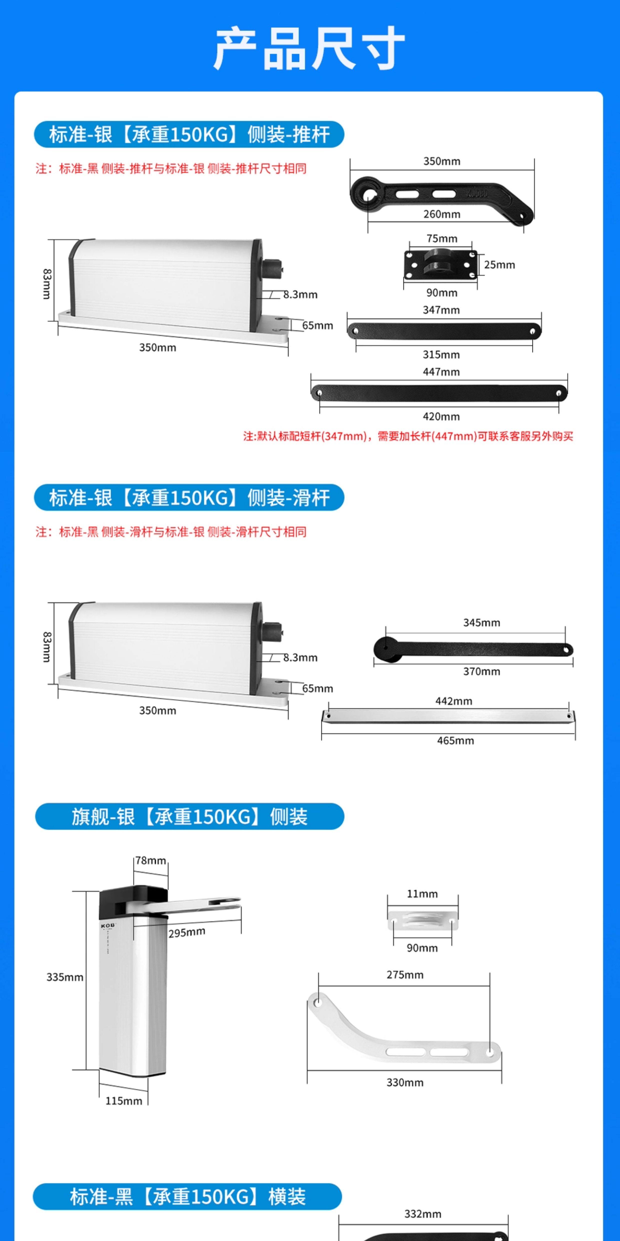 Color Classification Standard - Silver [Weight Capacity 120kg] Side-Mounted - Push Rod,Standard - Black [Weight Capacity 120kg] Side-Mounted - Push Rod,Flagship-Silver [Load Bearing 150kg] Side Mount-Push Rod,Flagship - Black [Weight Capacity 150kg] Side-Mounted - Push Rod,Flagship-Silver [Load Bearing 150kg] Side Mount-Sliding Bar,Flagship - Black [Weight Capacity 150kg] Side-Mounted - Sliding Bar,Flagship-Black [Bearing 150kg] Horizontal Mounting,Flagship-Silver [Bearing 150kg] Side Mount,Flagship-Black [Load Bearing 200kg] Side Mount/Floor Mount