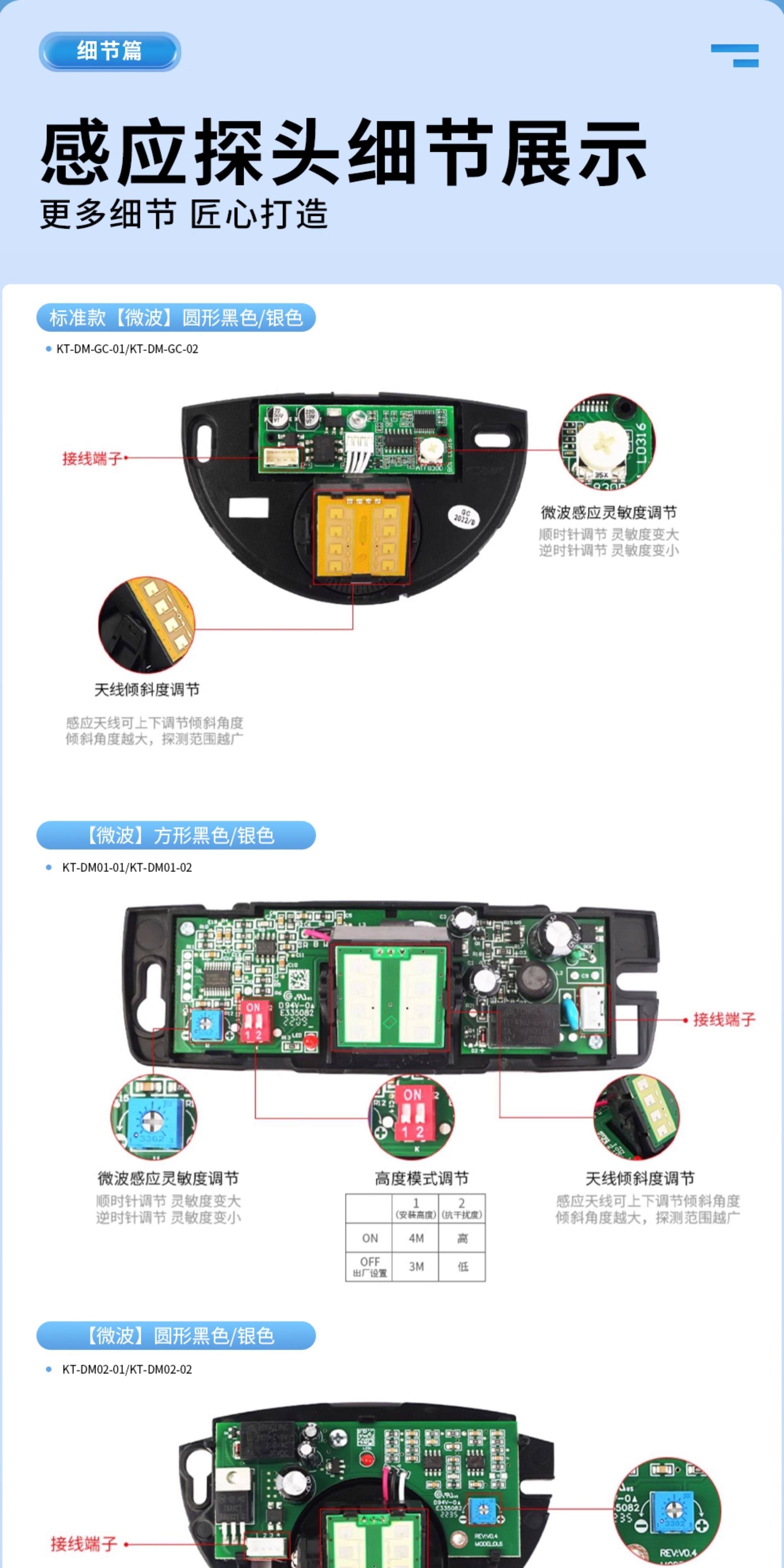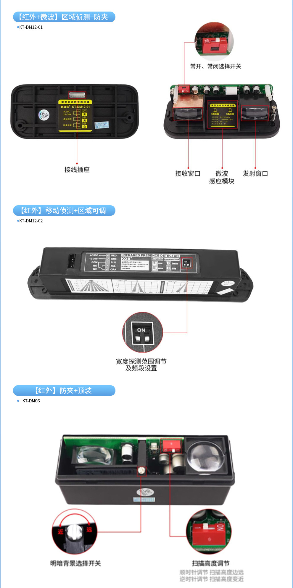 Color Classification Engineering Model [Microwave] Round + Black,Engineering Model [Microwave] Round + Silver,Dm02 [Microwave] Round + Black,Dm02 [Microwave] Round + Silver,Dm01 [Microwave] Square + Black,Dm01 [Microwave] Square + Silver,Dm05 [Infrared] Area Detection,Dm03 [Infrared] Motion Detection,Dm06 [Infrared] Anti-Pinch + Top-Mounted,Dm07 [Infrared] Anti-Pinch + Side Mounting,Dm08 [Microwave] Ceiling,Dm12 [Infrared + Microwave] Area Detection + Anti-Pinch,Dm12 [Infrared] Motion Detection + Adjustable Area,Dm09 [Image] Humanoid Detection,Dm09 [Image] Humanoid Detection + Waterproof,Dm04 Microwave Start/Infrared Anti-Pinch Dual-Function,Dm09 [Image] Humanoid Detection + Gesture Door Opening