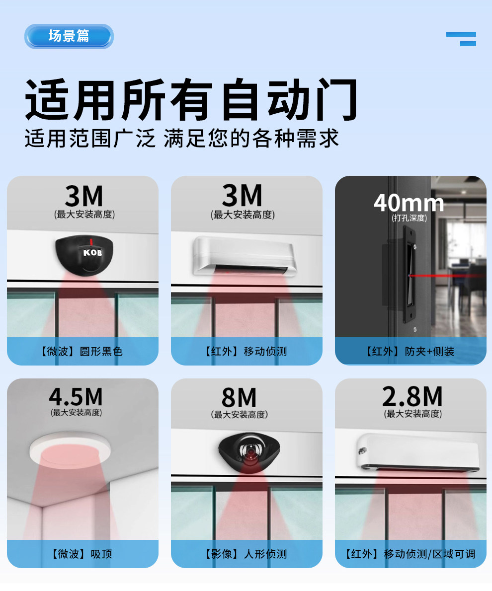 Kob Automatic Door Sensor Electric Door Sensor Probe Microwave Sensor Sliding Door Infrared Anti-Pinch Radar