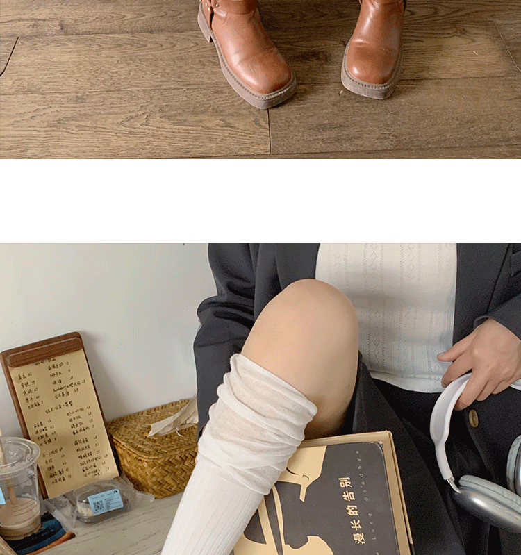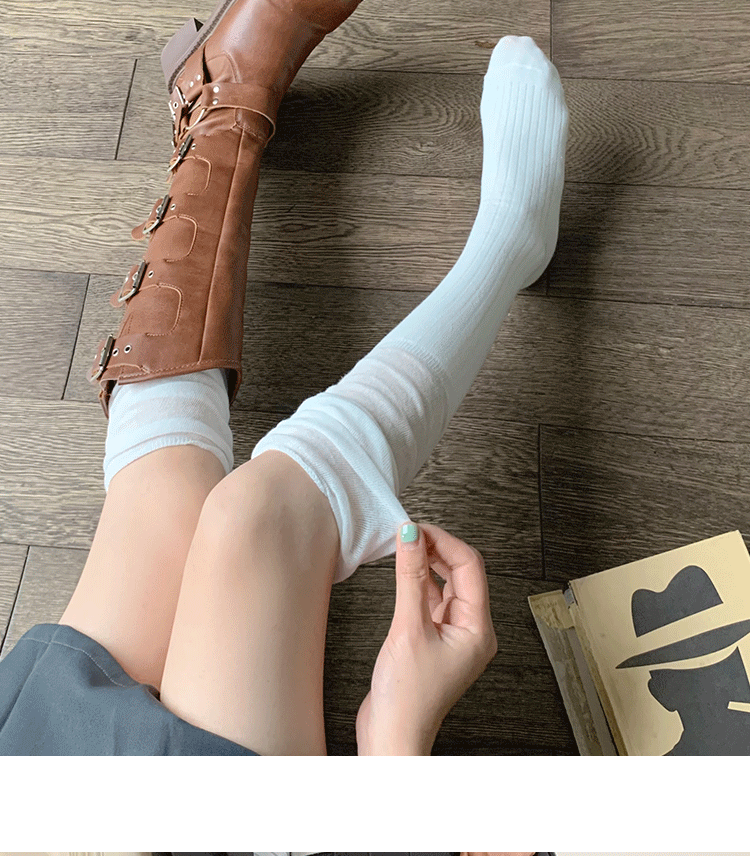 Over-The-Knee Socks for Women, Spring and Autumn Style, Melard Slouch Socks, Pure Cotton Thigh-High Socks, Summer Non-Slip White Long Socks
