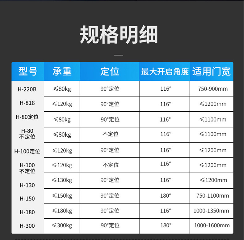 Color Classification Standard Model [Lightweight H-220B] Load-Bearing 90kg /Positioning,Standard Model [Lightweight H-220B] Load-Bearing 90kg / Positioning (Framed Door Accessories),Standard Model [Heavy Duty H-818] Load Bearing 120kg /Positioning,Standard Model [Heavy Duty H-818] Load Bearing 120kg / Positioning (Framed Door Accessories),Flagship Model [Lightweight H-80] Load-Bearing 90kg / Positioning,Flagship Model [Lightweight H-80] Load Capacity 90kg / Not Positioned,Flagship Model [Heavy Duty H-100] Load Capacity 120kg /Positioning,Flagship Model [Heavy-Duty H-100] Load-Bearing 120kg / Not Fixed,Flagship Model [Weighted H-130] Load-Bearing 140kg / Positioning,Flagship Model [Overweight H-180] Load-Bearing 200kg / Positioning,Flagship Model [Overweight H-300] Load-Bearing 300kg /Positioning/Narrow Model,Standard 220B Set [Floor Spring + Top Shaft + Lower Clamp + Upper Clamp] Load Bearing 90kg / Positioning,Standard 818B Set [Floor Spring + Top Shaft + Lower Clamp + Upper Clamp] Load Bearing 120kg / Positioning,Flagship Model [Weighted H-84] Load-Bearing 110kg / Positioning,Flagship Model [Weighted H-75] Load-Bearing 150kg / Positioning / Narrow Model,Flagship Model [Overweight H-2400] Load-Bearing 185kg / Positioning,Flagship Model [Overweight H-80] Load-Bearing 300kg /Positioning/Narrow Model,Sky Spring [Weighted H-120] Load-Bearing 110kg /Positioning,Flagship Model [Overweight H-600] Load-Bearing 300kg / Positioning