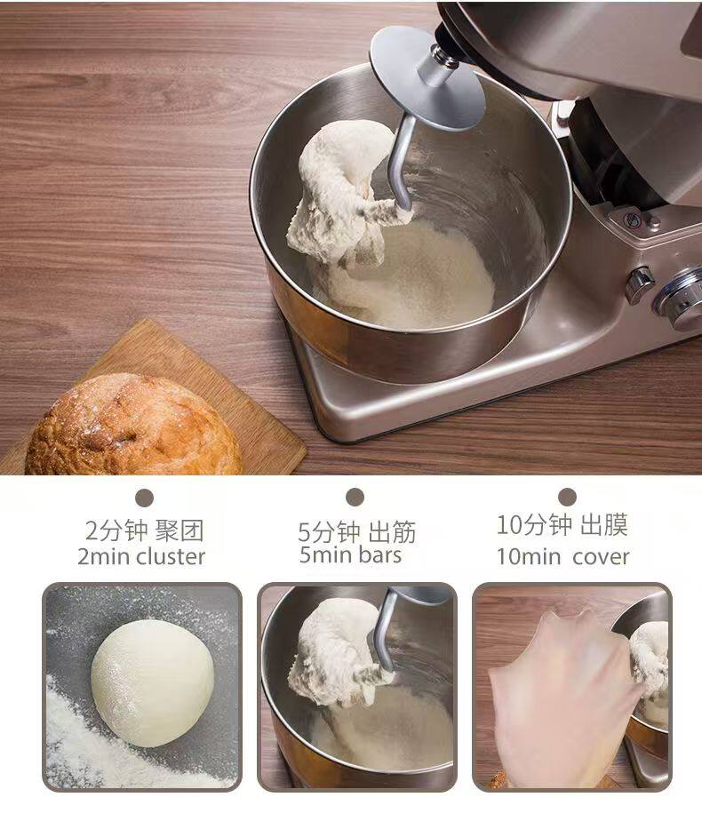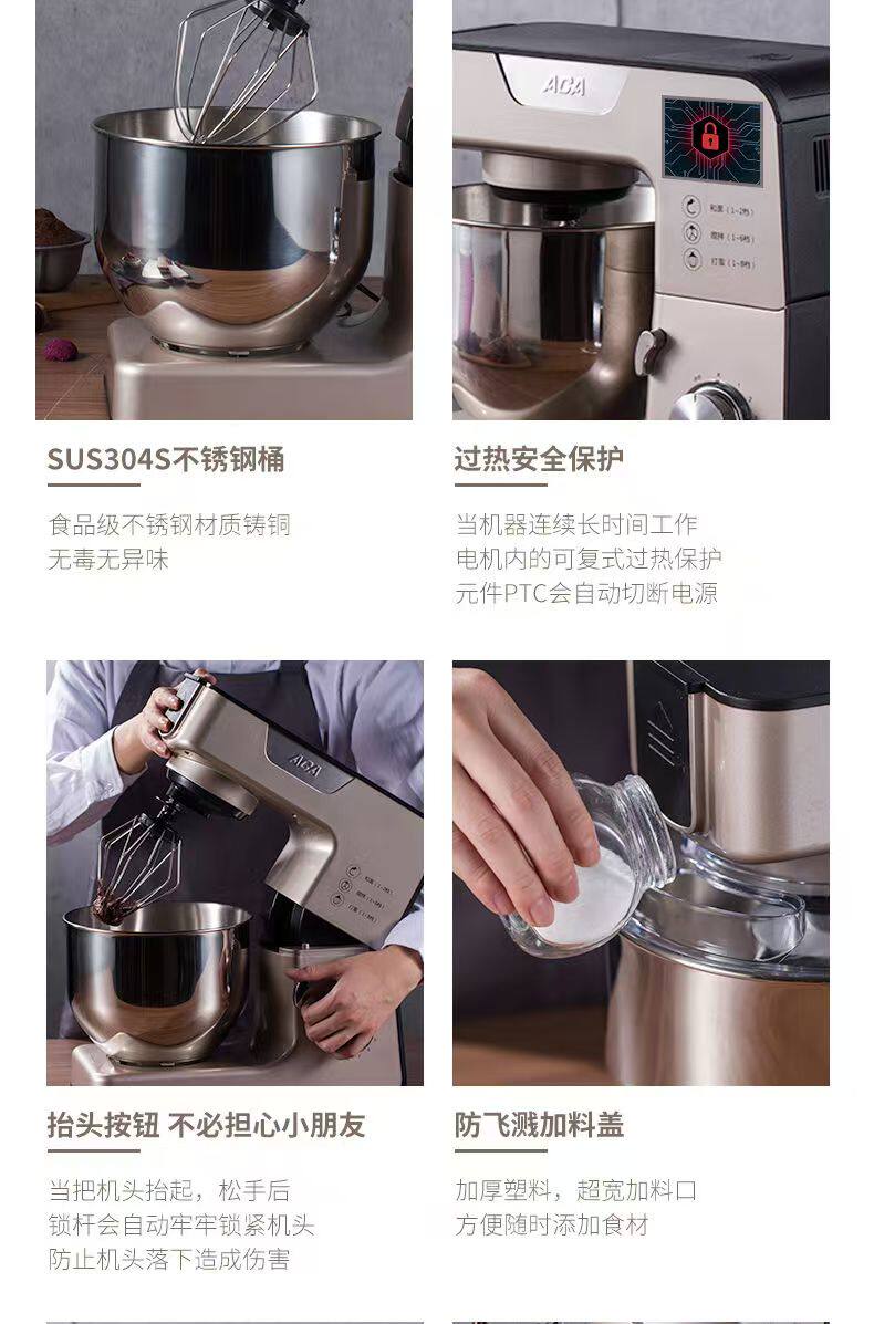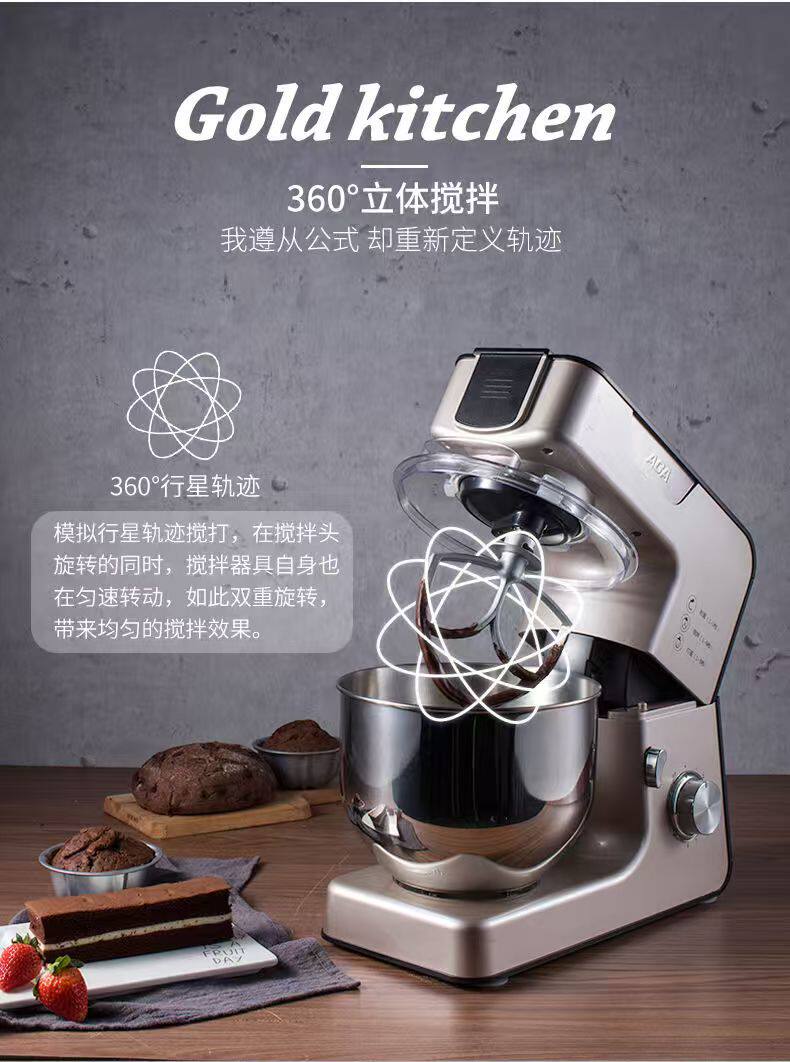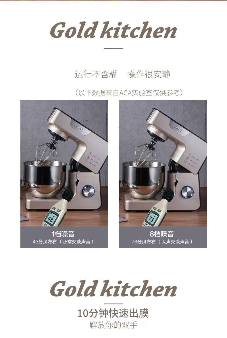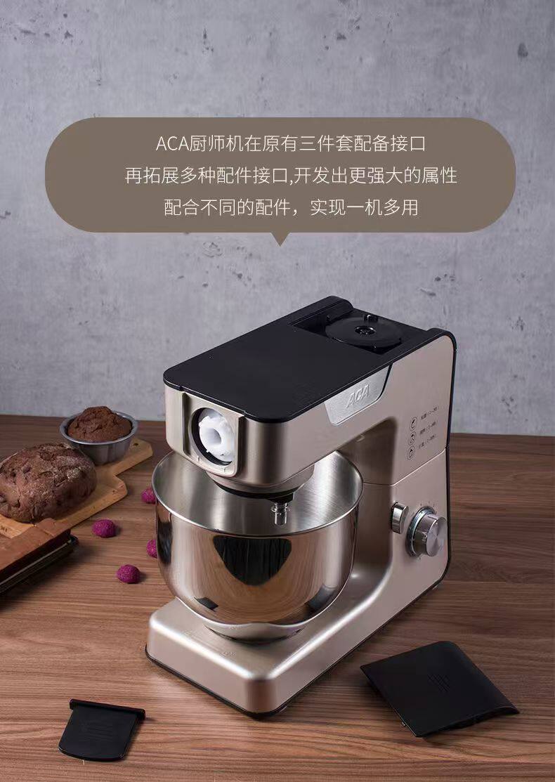 Aca North American Electric Chef Machine for Home Use, Multifunctional Small Dough Mixer and Kneader, Fully Automatic Cg108 Champagne Gold