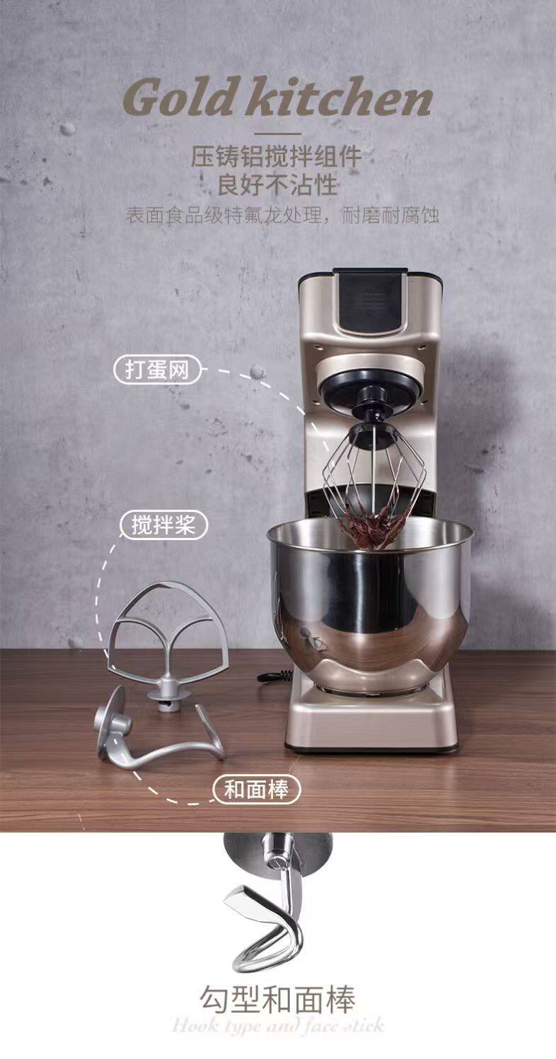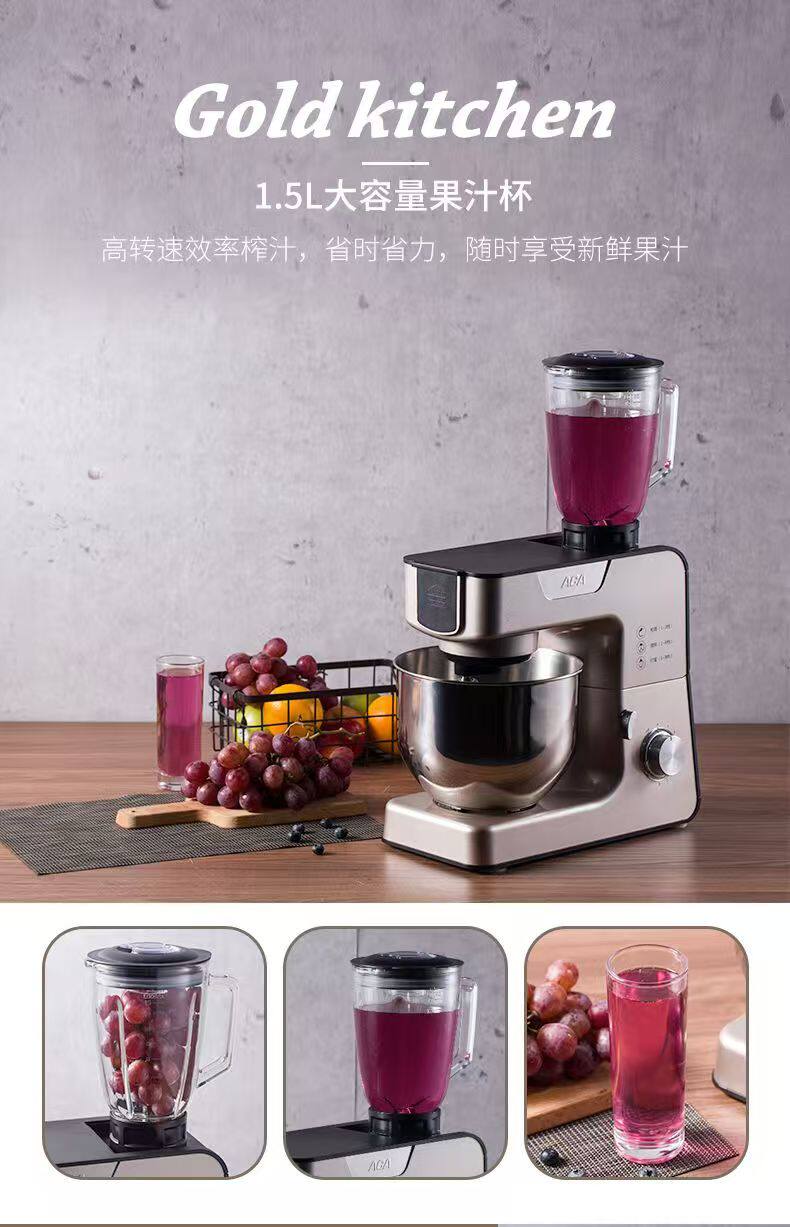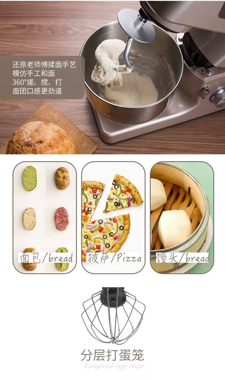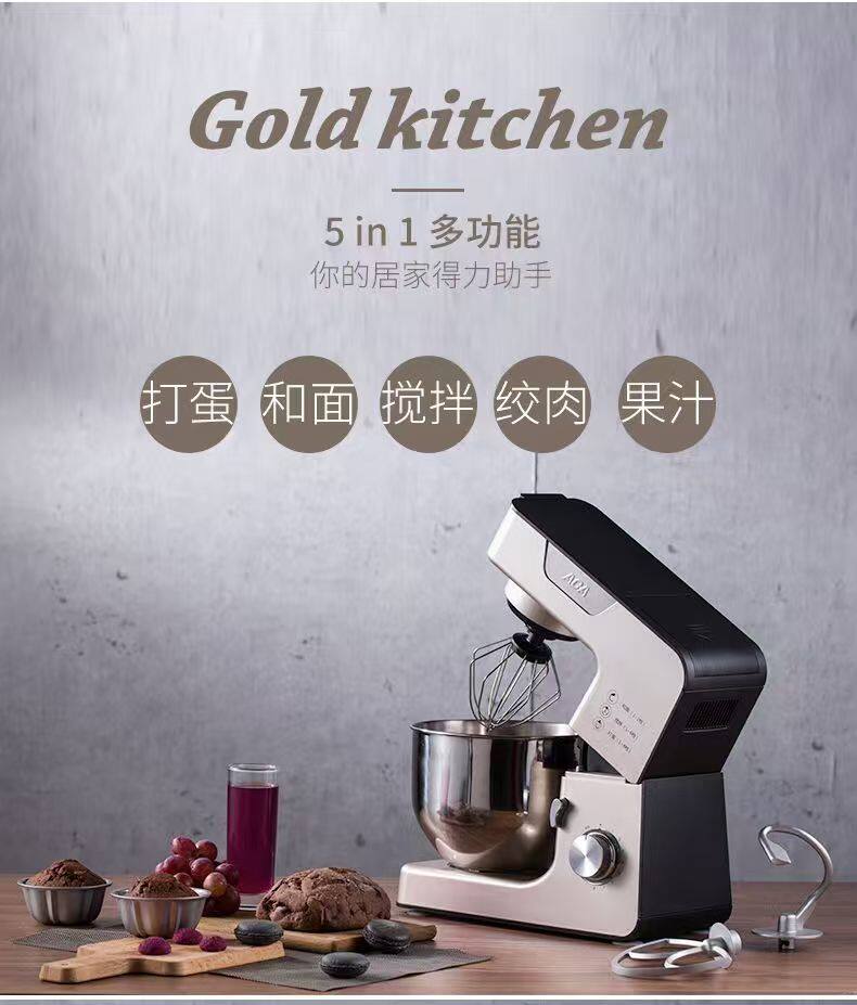 Aca North American Electric Chef Machine for Home Use, Multifunctional Small Dough Mixer and Kneader, Fully Automatic Cg108 Champagne Gold