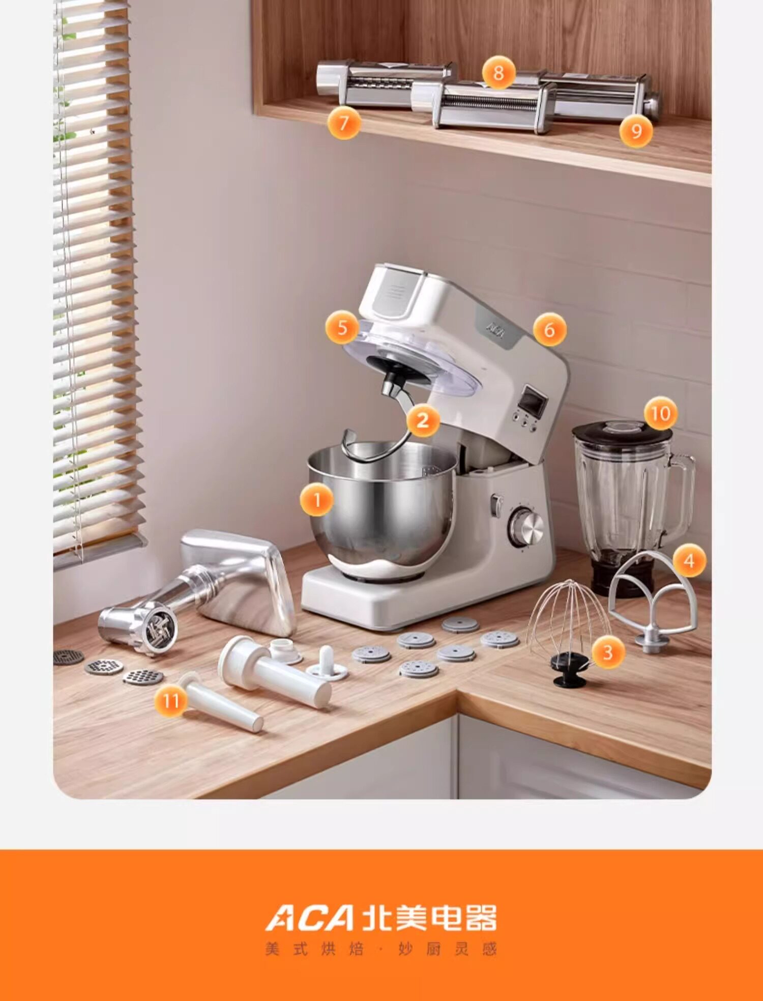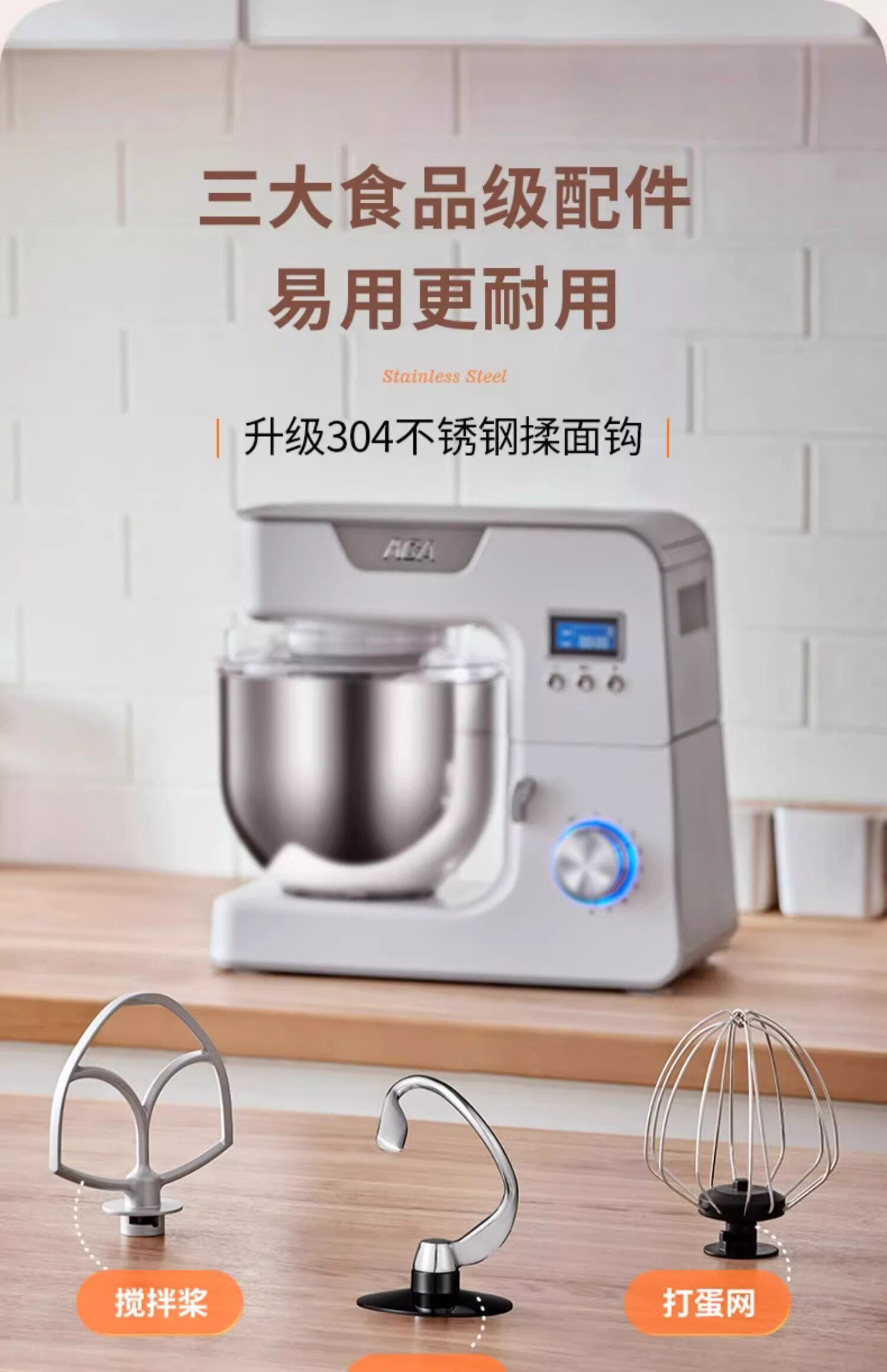 Aca North American Electric Chef Machine for Home Use, Multifunctional Small Dough Mixer, Automatic Dough Kneading and Mixing Machine